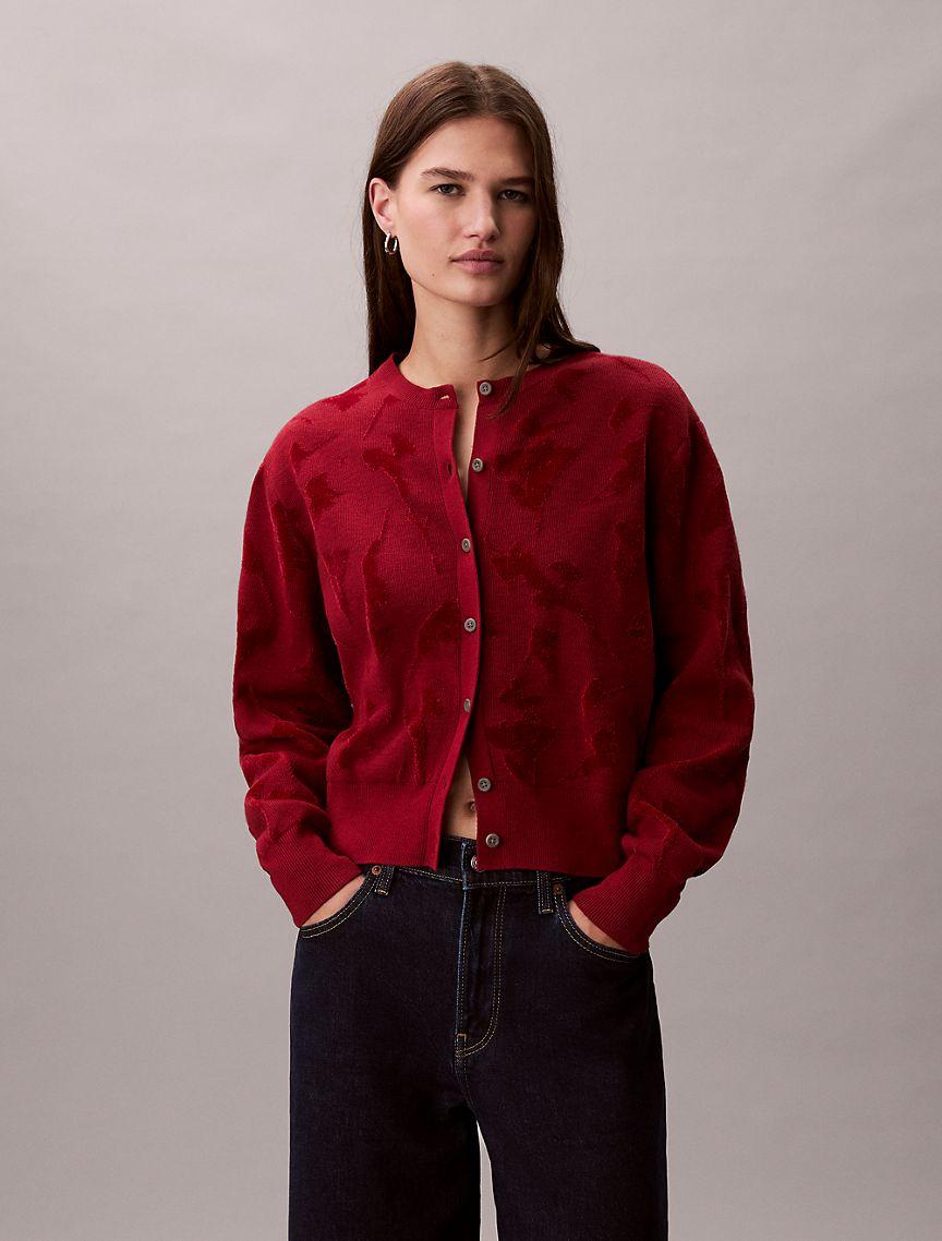 Womens Pointelle Jacquard Cardigan