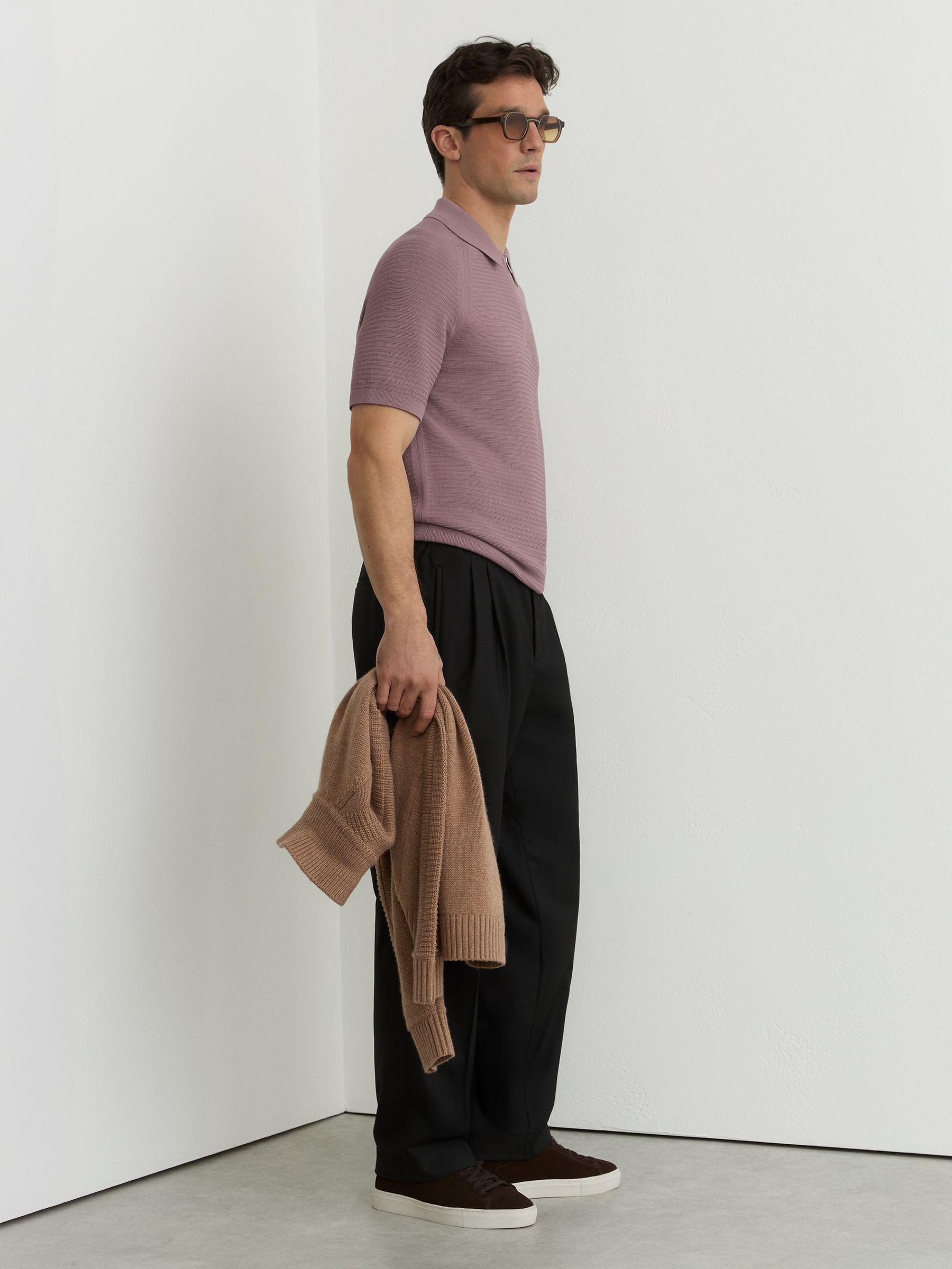 Shop for Reiss Textured-Knit Half-Zip Polo Shirt in Plum online at REISS USA