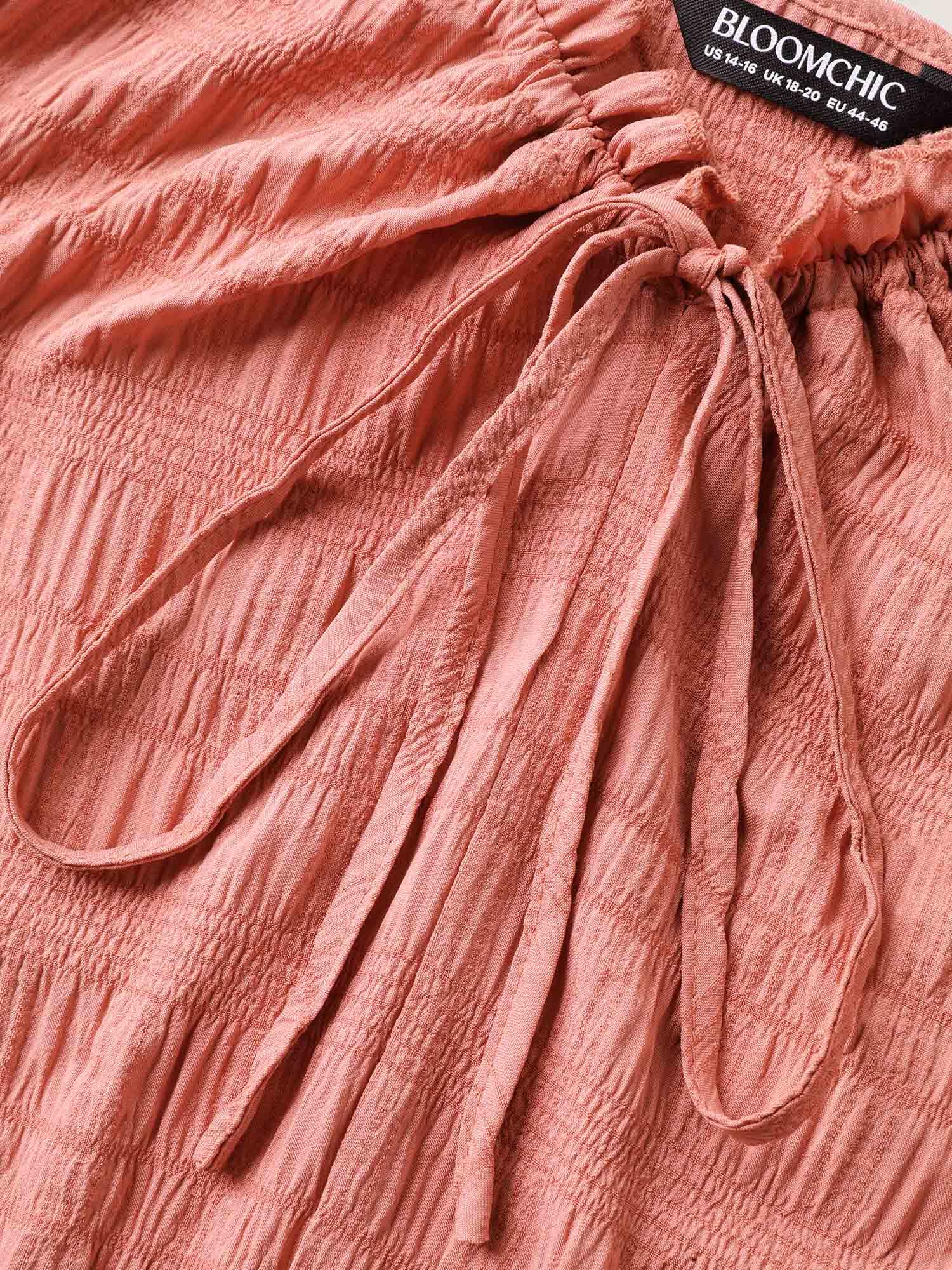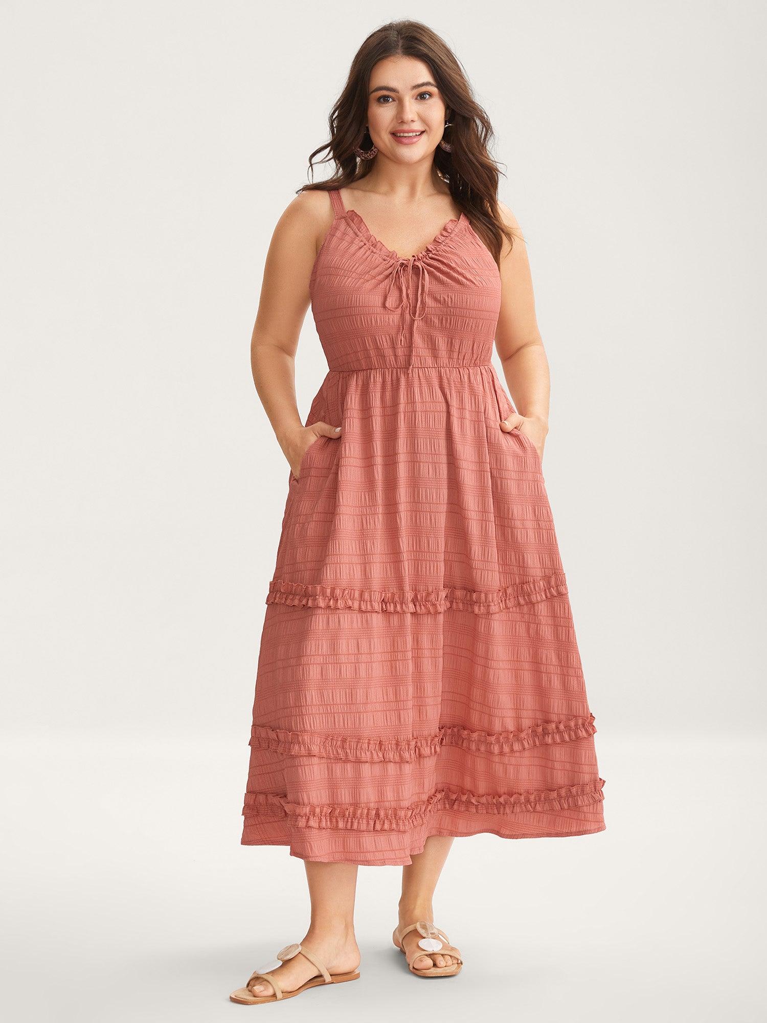 Shop Textured Neck-Tie Layered Pockets Midi Dress now and redefine your style with confidence at BloomChic. Tailored for mid and plus-size women. This trendy Dress, sizes 10-30. You can never go wrong with BloomChic Dresses. Color:Rust;Neckline:V-neck;Sleeve Type:Sleeveless;Prints:Synthetic texture;Pocket:Side seam pocket;Belt:No-belt;Closure Type:Non