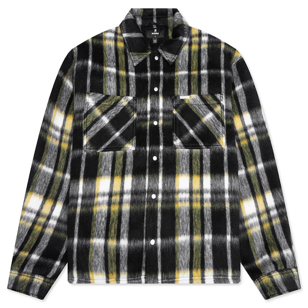 The Textured Overshirt from Represent balances utility with elevated everyday style. Constructed entirely from polyester, the fully lined interior adds structure and comfort, perfect for colder weather. Featuring a classic collar, dual chest pockets, and a full popper closure for easy wear. The signature Represent metal bar logo adds the final touch. Main: 100% Polyester Lining: 100% Polyester Classic collar Dual chest pockets Popper closure Metal Represent bar logo Style No: MLM100241-01 MLM100241 01