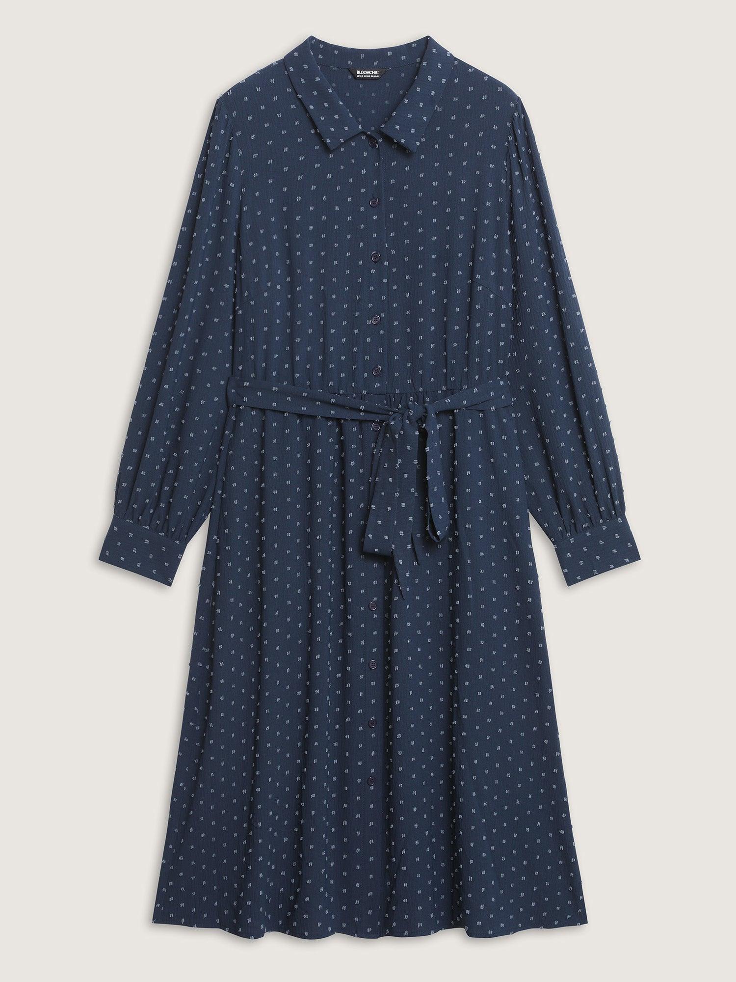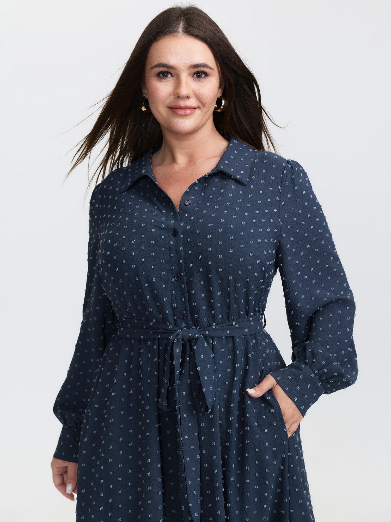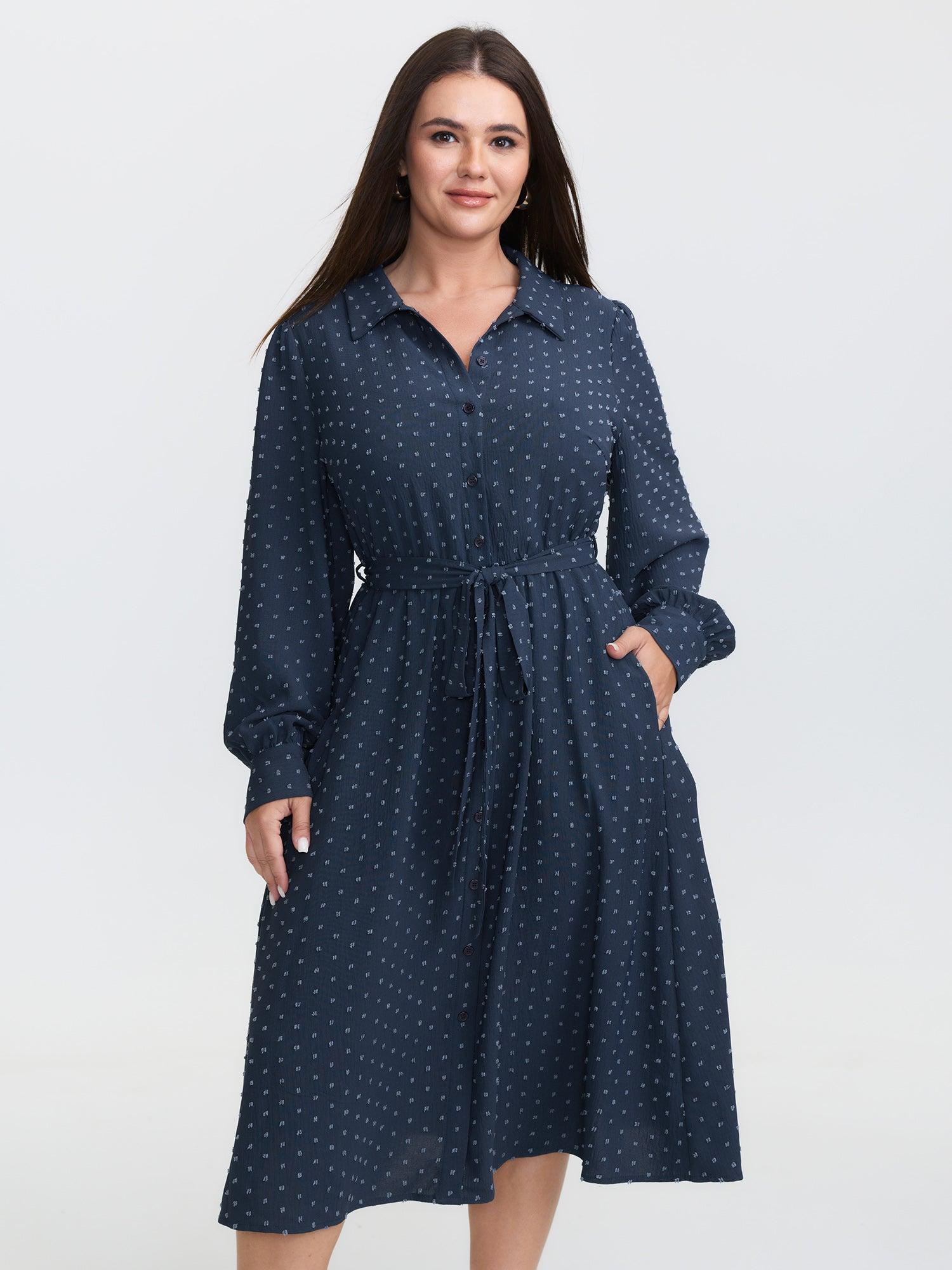 Shop Textured Polka Dots Waist-Tie Midi Dress now and redefine your style with confidence at BloomChic. Tailored for mid and plus-size women. This trendy Dress, sizes 10-30. You can never go wrong with BloomChic Dresses. Color:Dark Blue;Style:Office;Neckline:Shirt collar;Sleeve Type:Lantern Sleeve;Prints:Synthetic texture;Pocket:Side seam pocket;Belt:Belt;Closure Type:Non