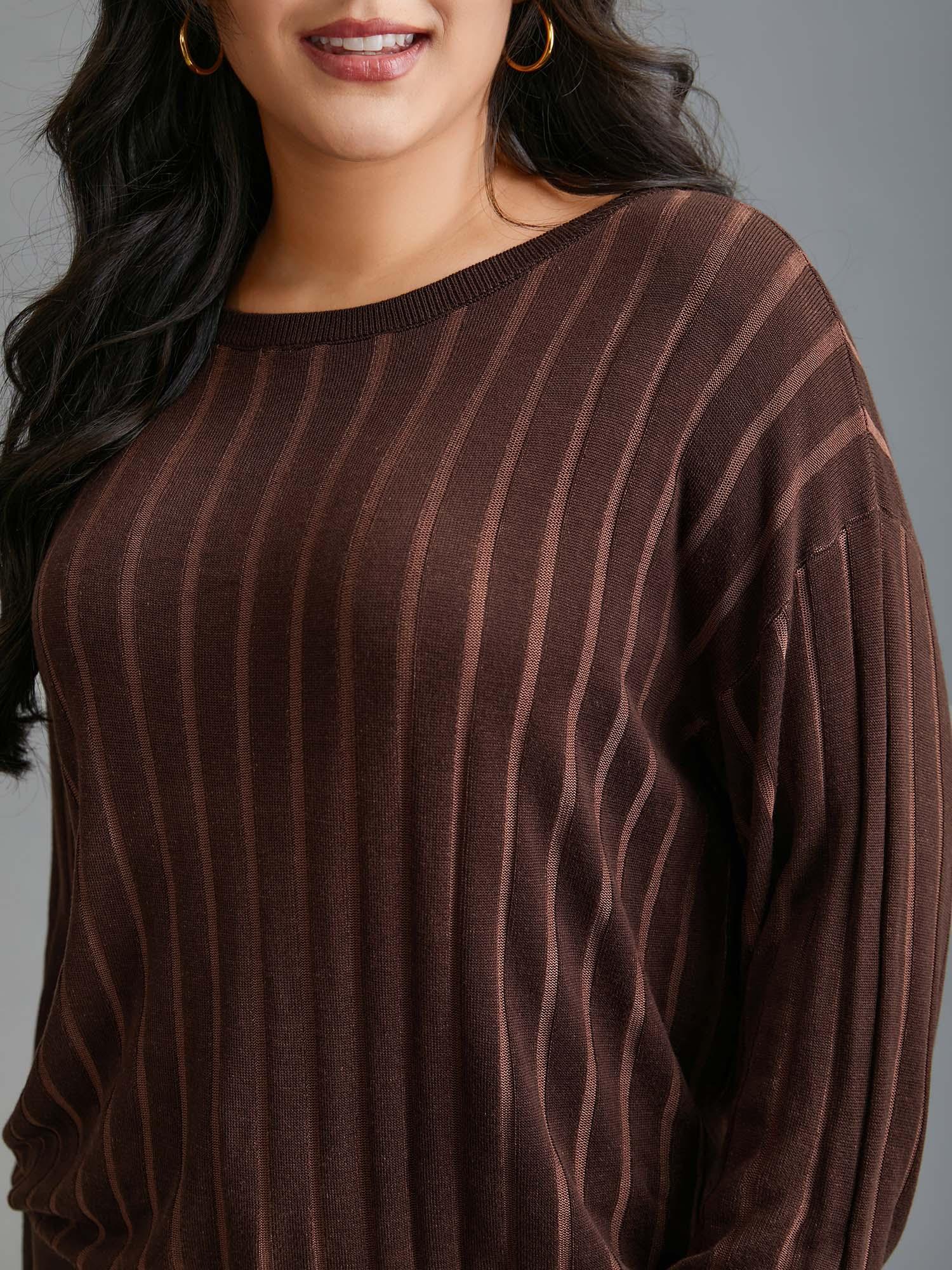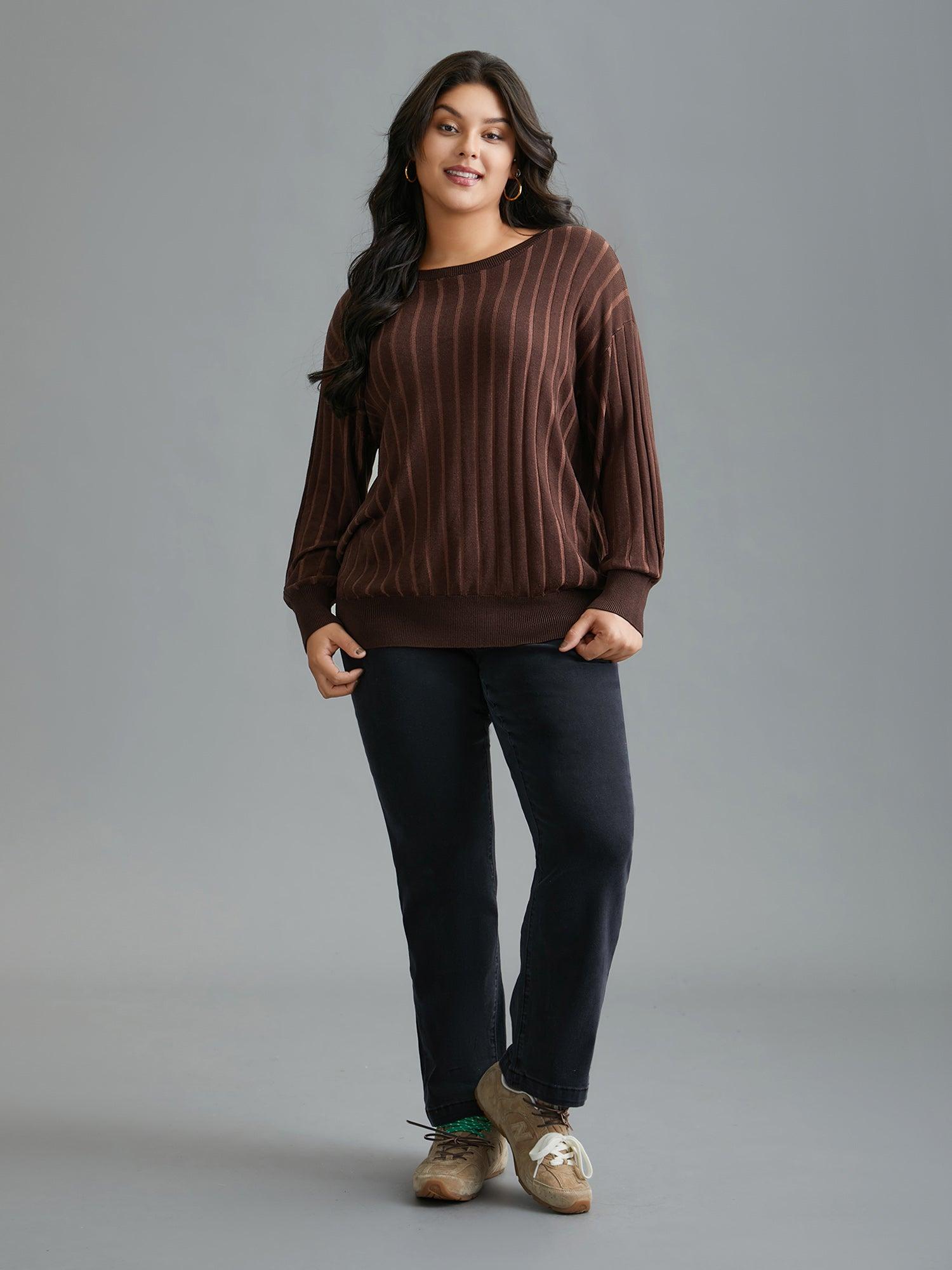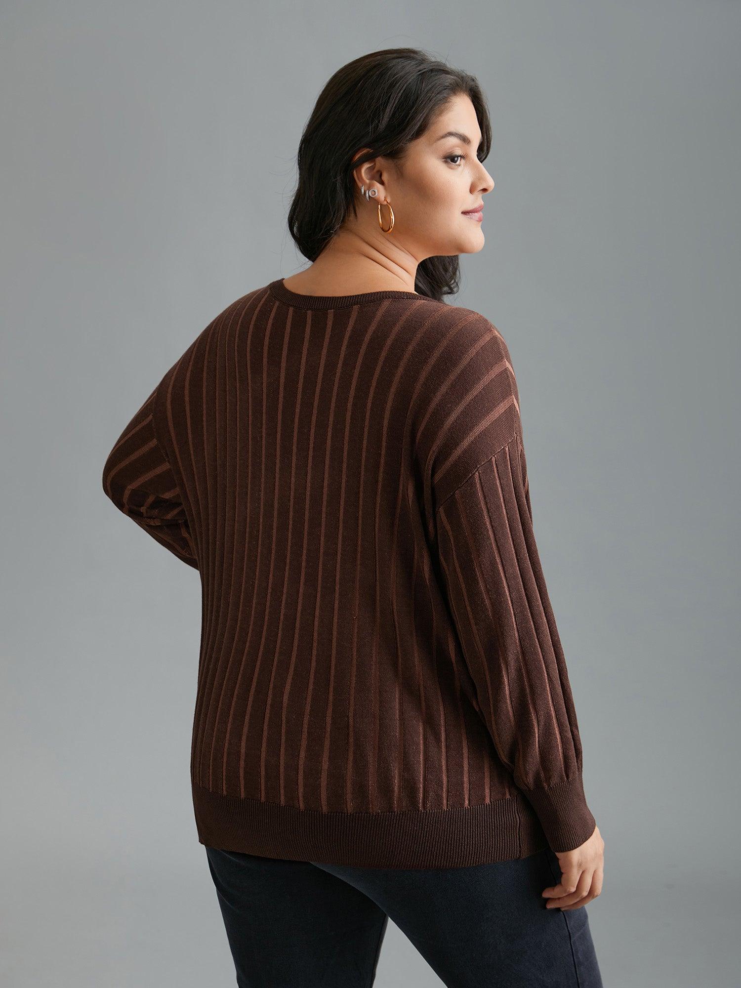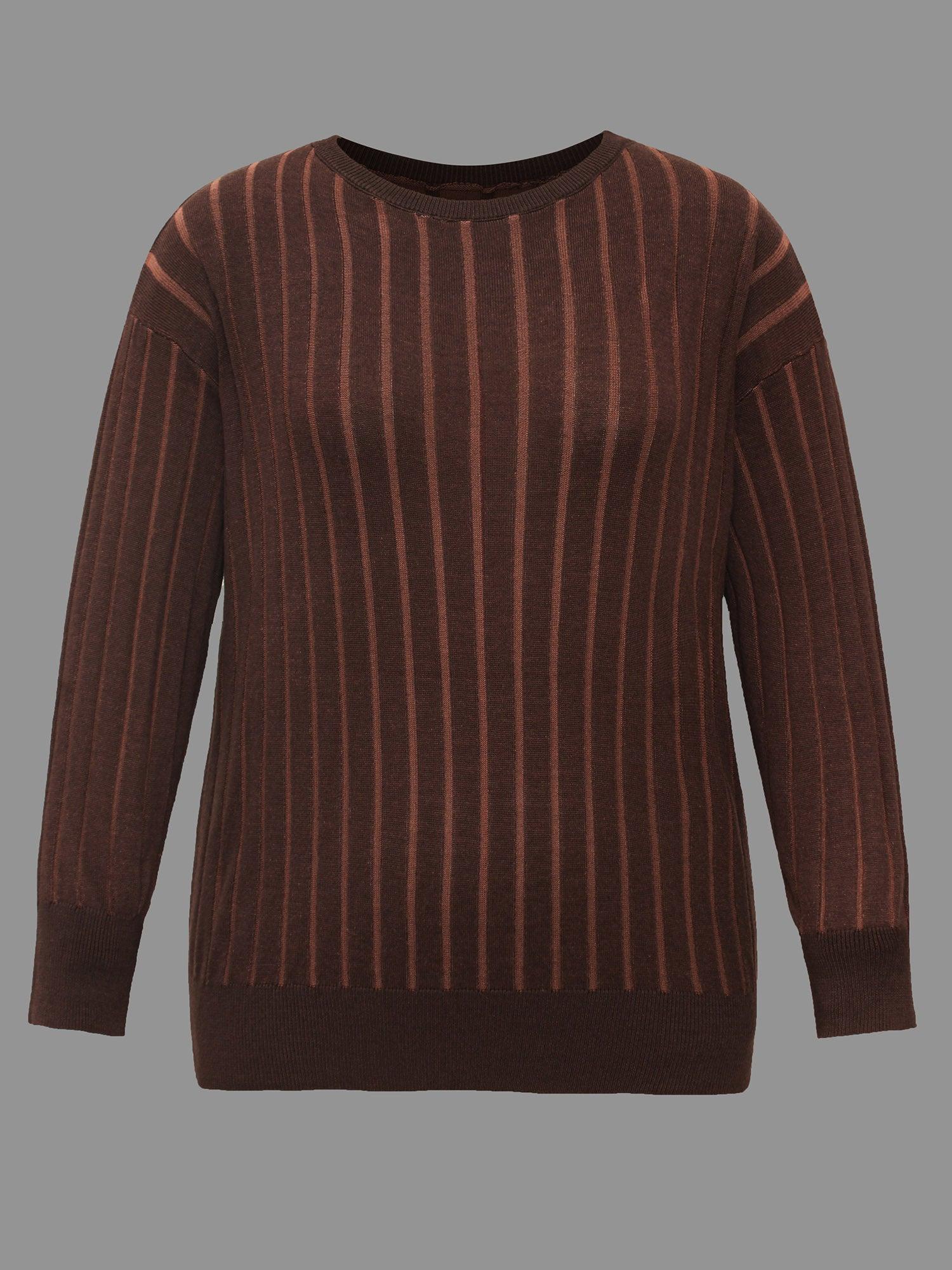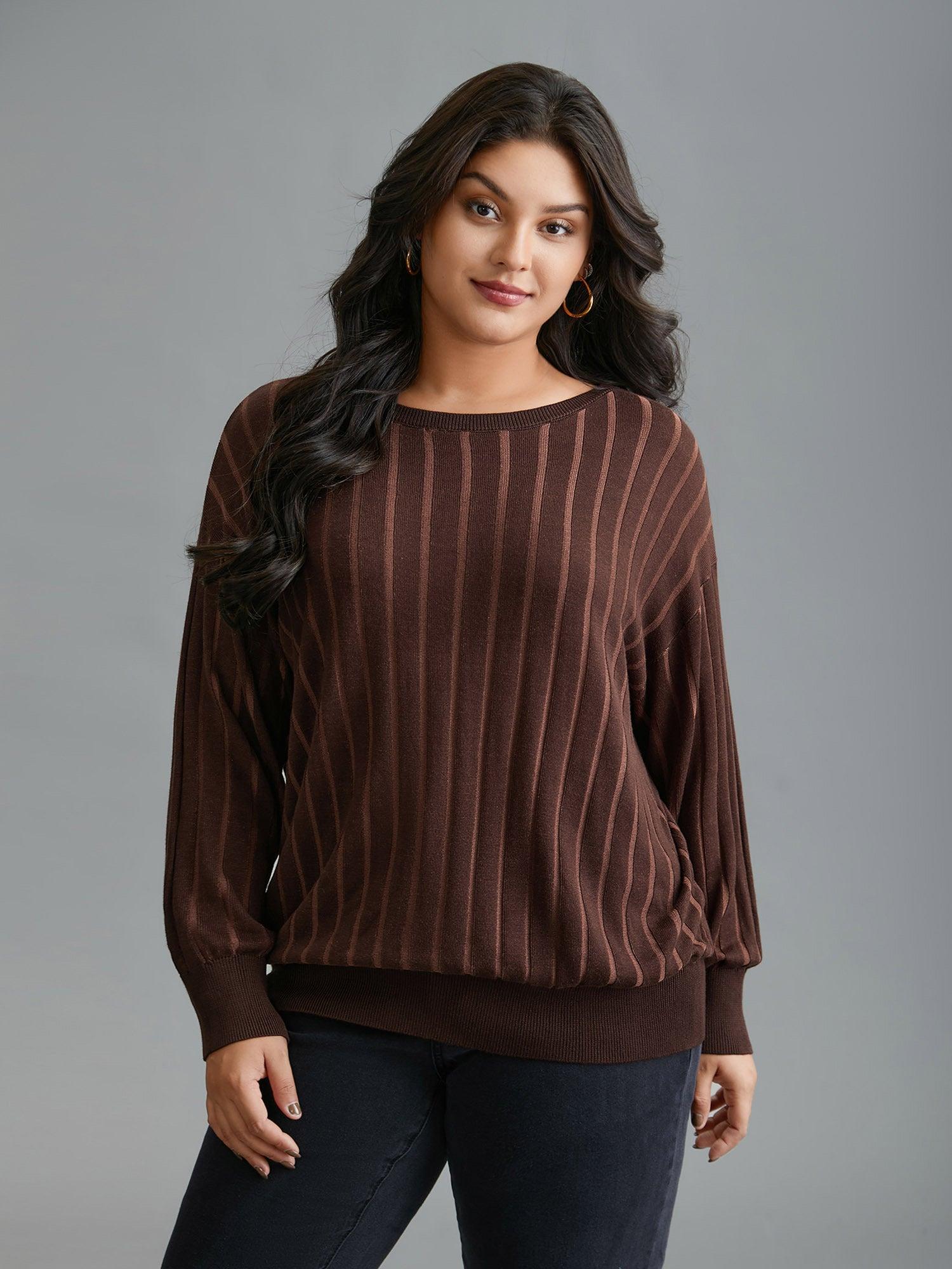Shop Textured Ribbed Hem Round Neck Pullover now and redefine your style with confidence at BloomChic. Tailored for mid and plus-size women. This trendy Sweaters Cardigans Women, sizes 10-30. Season:Winter;Color:Browncoffeecolor;Style:Casual;Neckline:Round Neck;Sleeve Type:Drop shoulder sleeve;Prints:Stripes;Details:Texture, Contrast;Pocket:No-pocket;Belt:No-belt;Closure Type:Non
