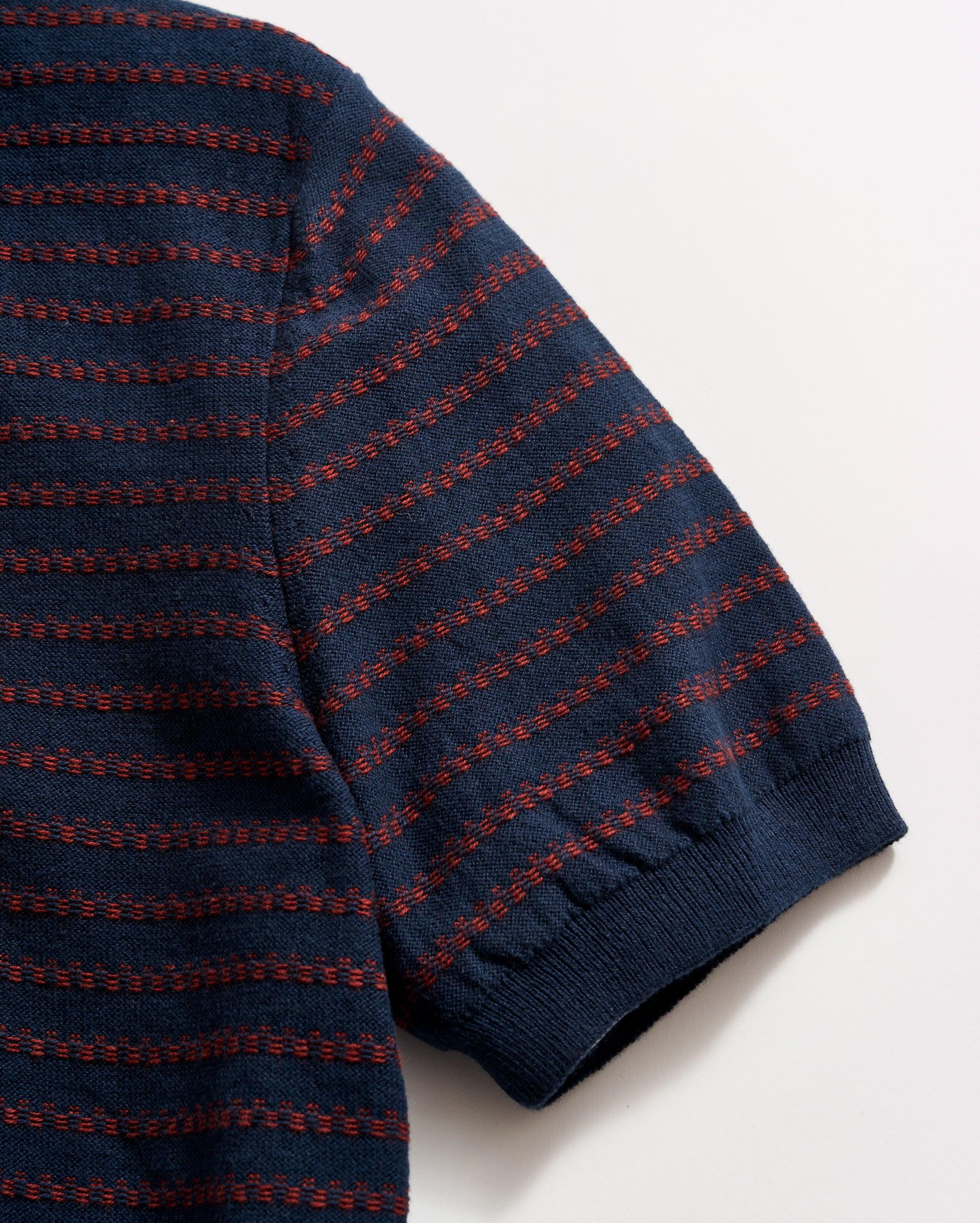 Blending the shape and ease of a polo with the luxurious construction of a sweater, this piece embodies timeless style. Crafted with soft cotton in a textured jacquard float stripe that adds loft to the sweater's texture, it's designed for a slim, tailored fit throughout the body and sleeves. An instant classic that dr