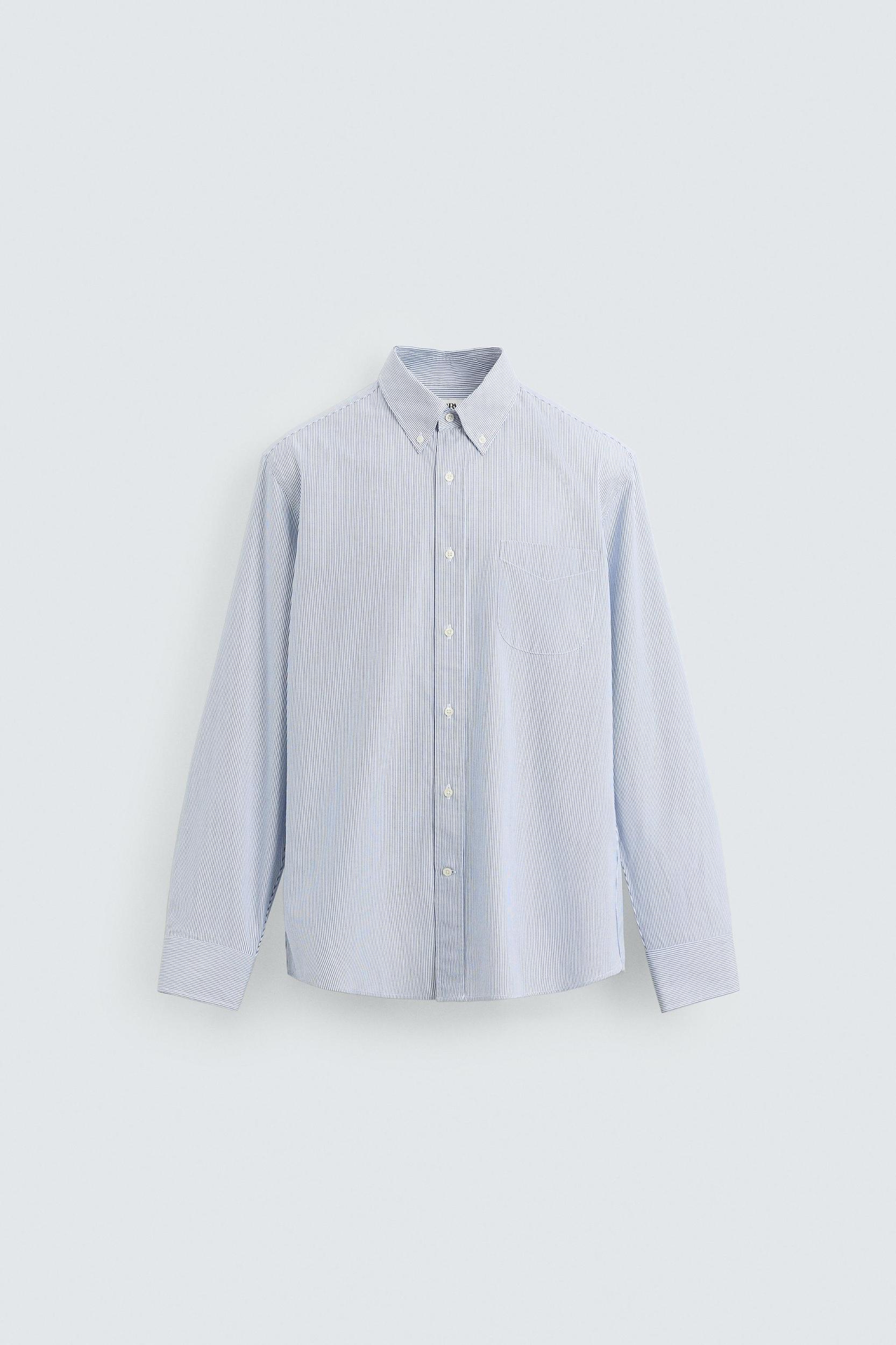 Regular fit shirt made of cotton fabric. Button-down collar and long sleeves with buttoned cuffs. Patch pocket on the chest. Front button closure.
