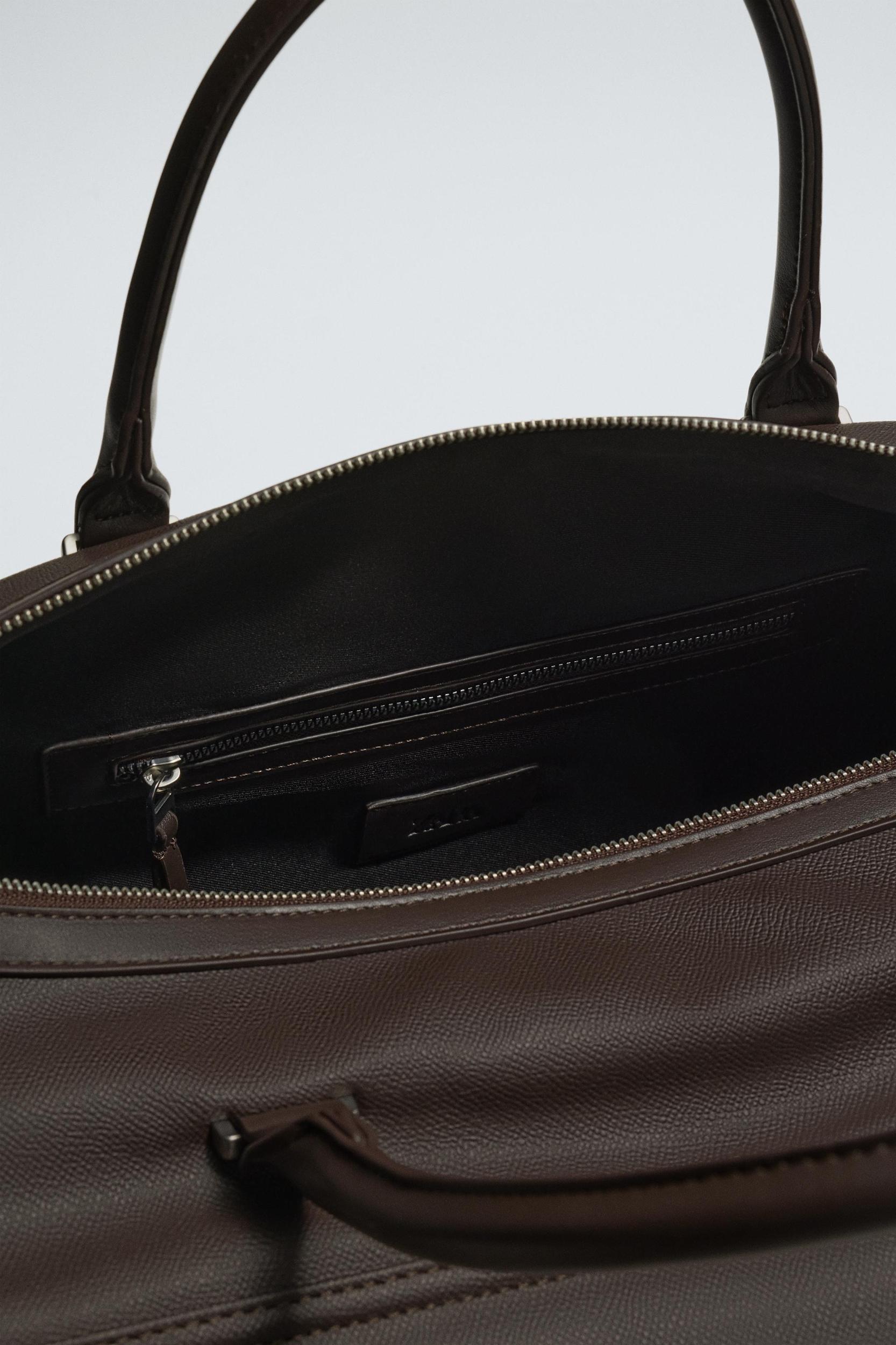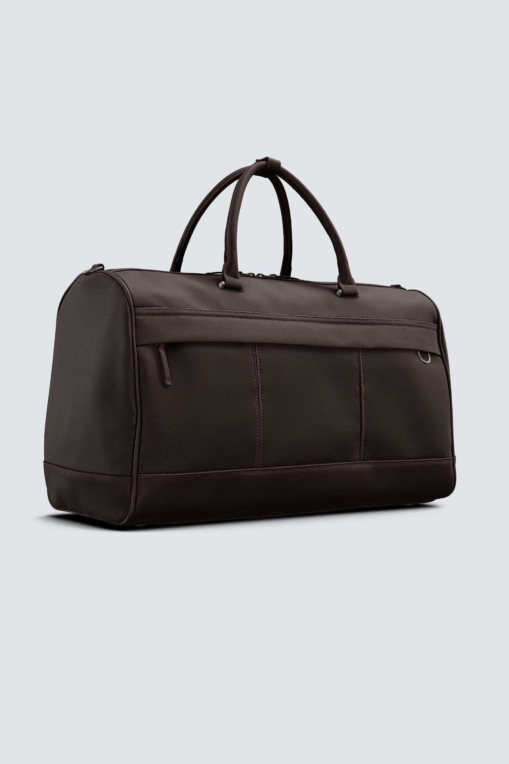 Travel bag with an embossed finish. Main compartment with zipper closure. The interior has a pocket with zipper closure. The front has a pocket with zipper closure. Two hand handles and an adjustable and removable shoulder strap.