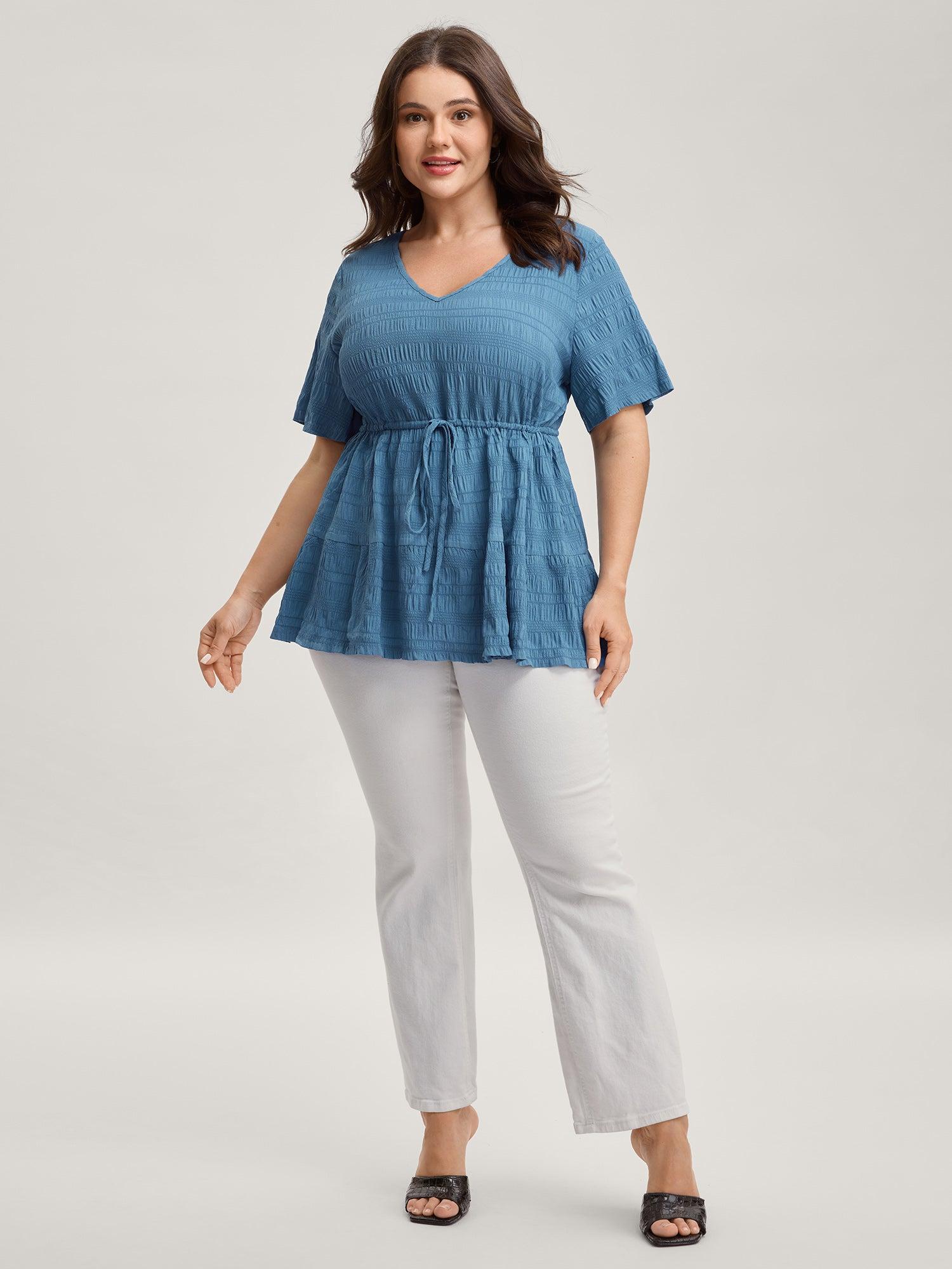 Textured Waist-Cinching Tiered Blouse Female