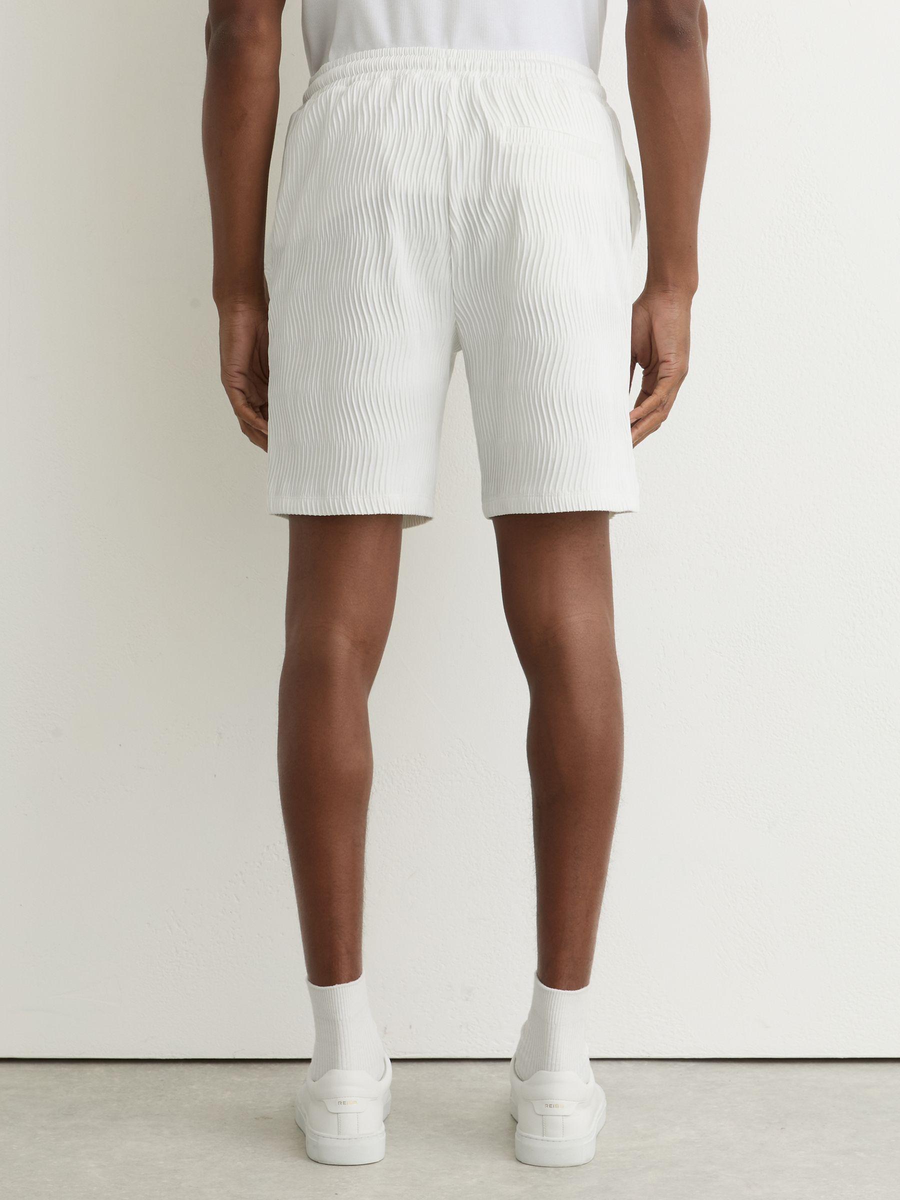 Textured-Wave Drawstring Shorts in White