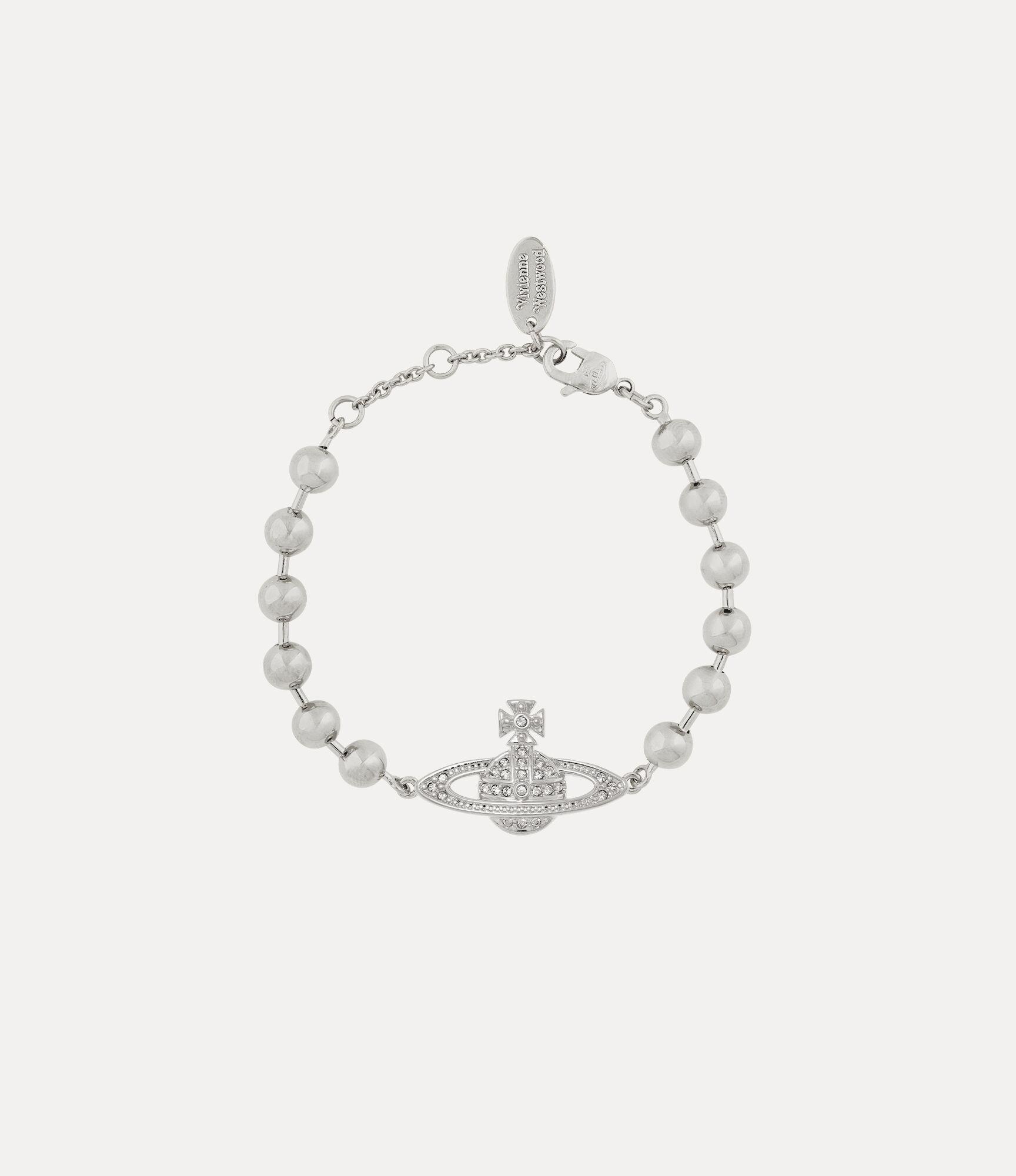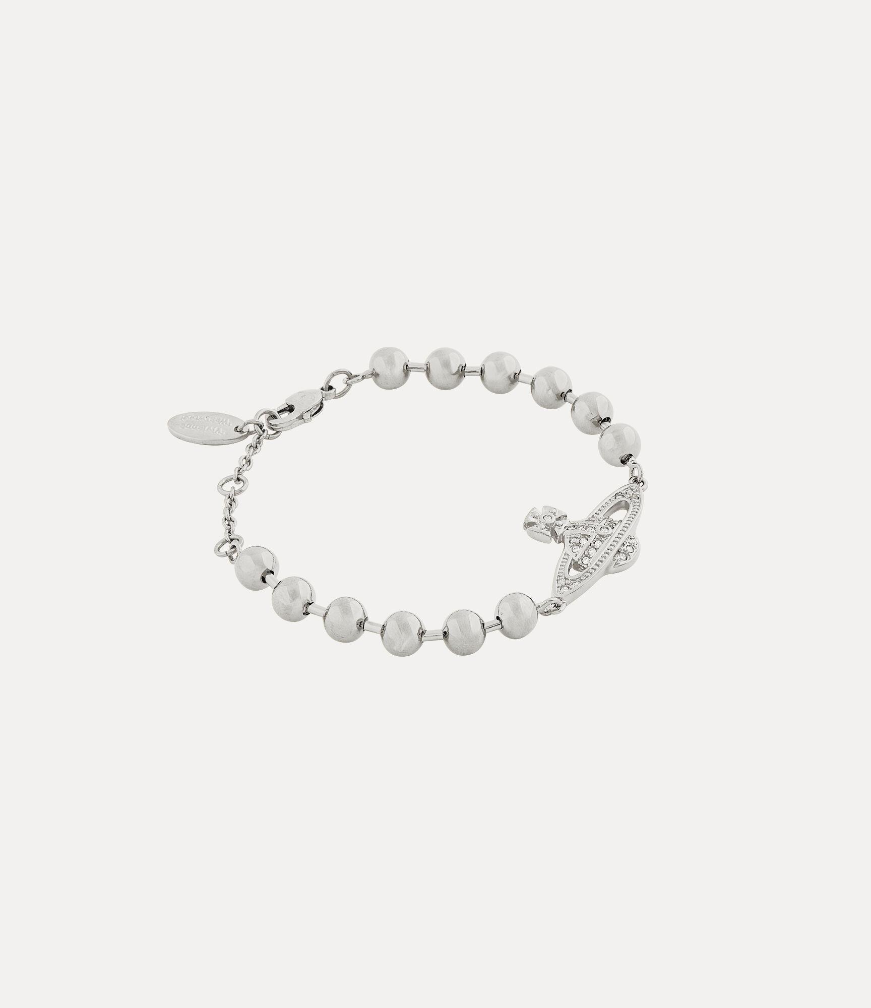 The Thames Mini Bas Relief bracelet features an elegant ball chain with a distinct two-dimensional 'Bas Relief' orb in the centre, inspired by our house's orb-shaped motif. Encrusted with glistening tonal crystals, the piece recalls Vivienne's vision of taking tradition into the future.