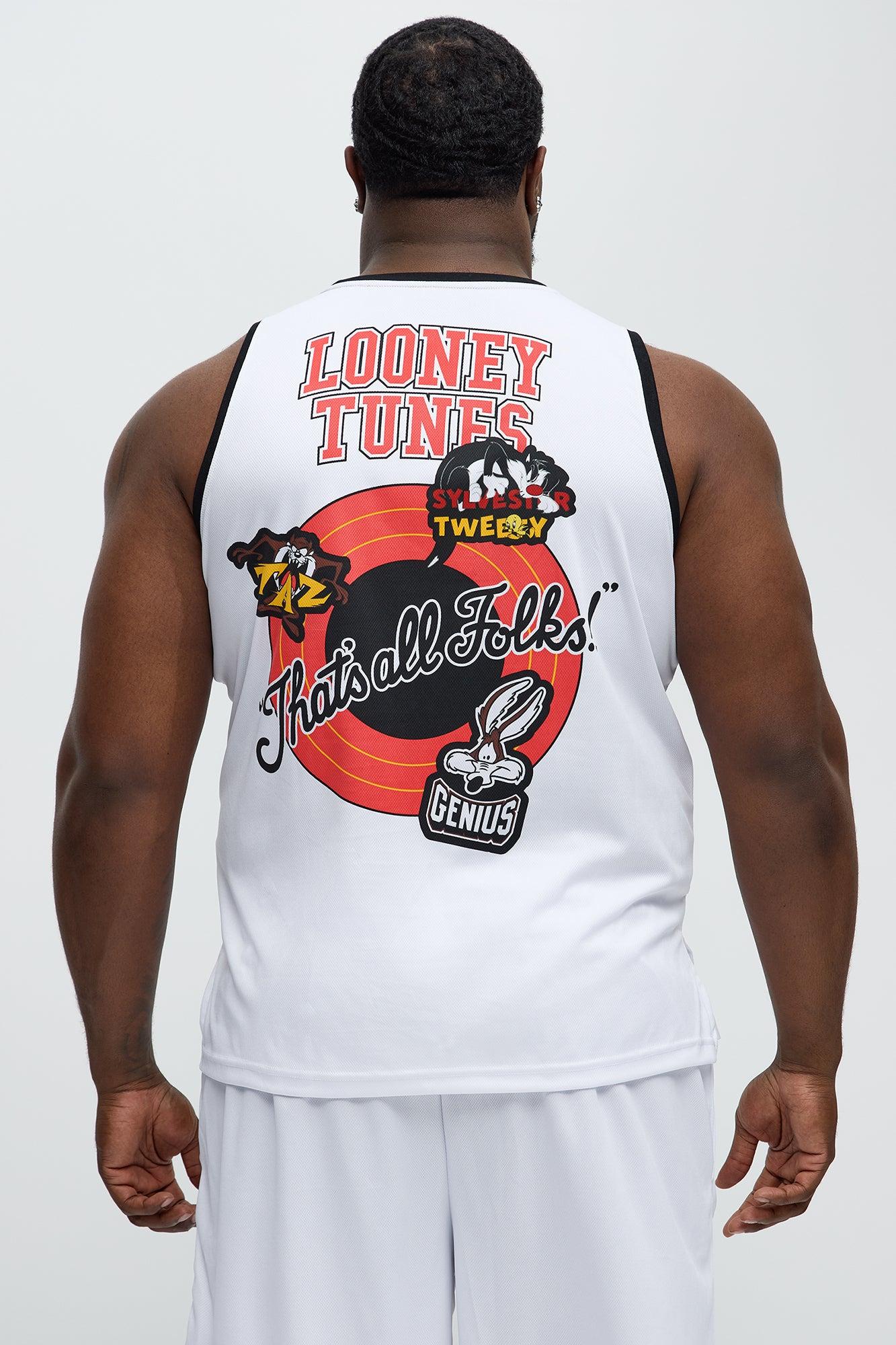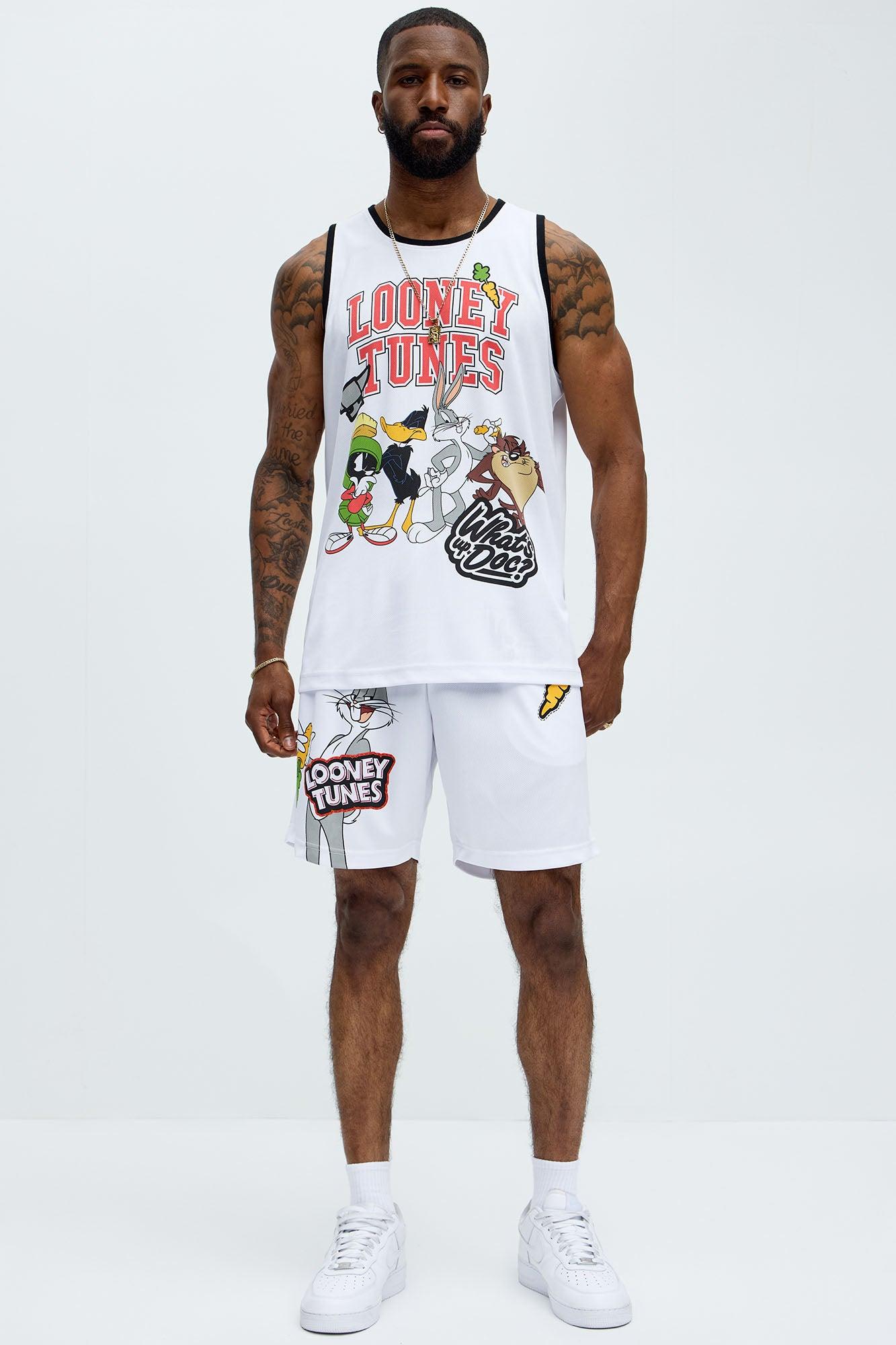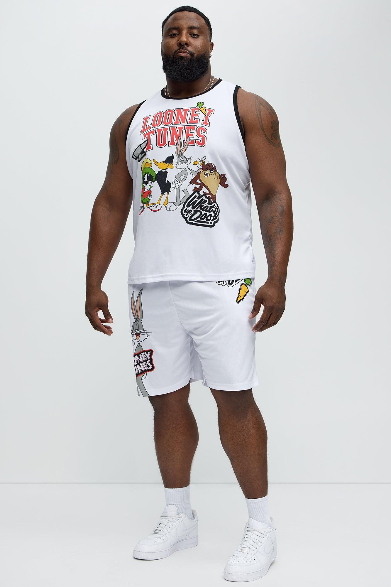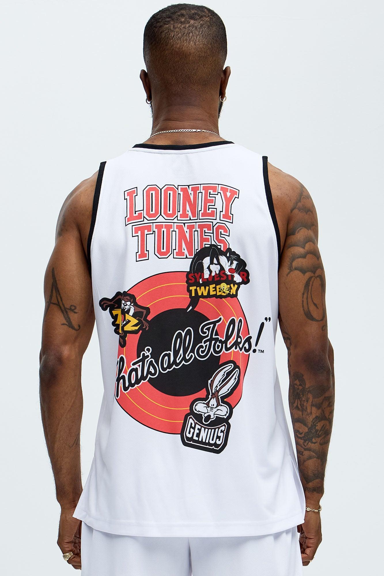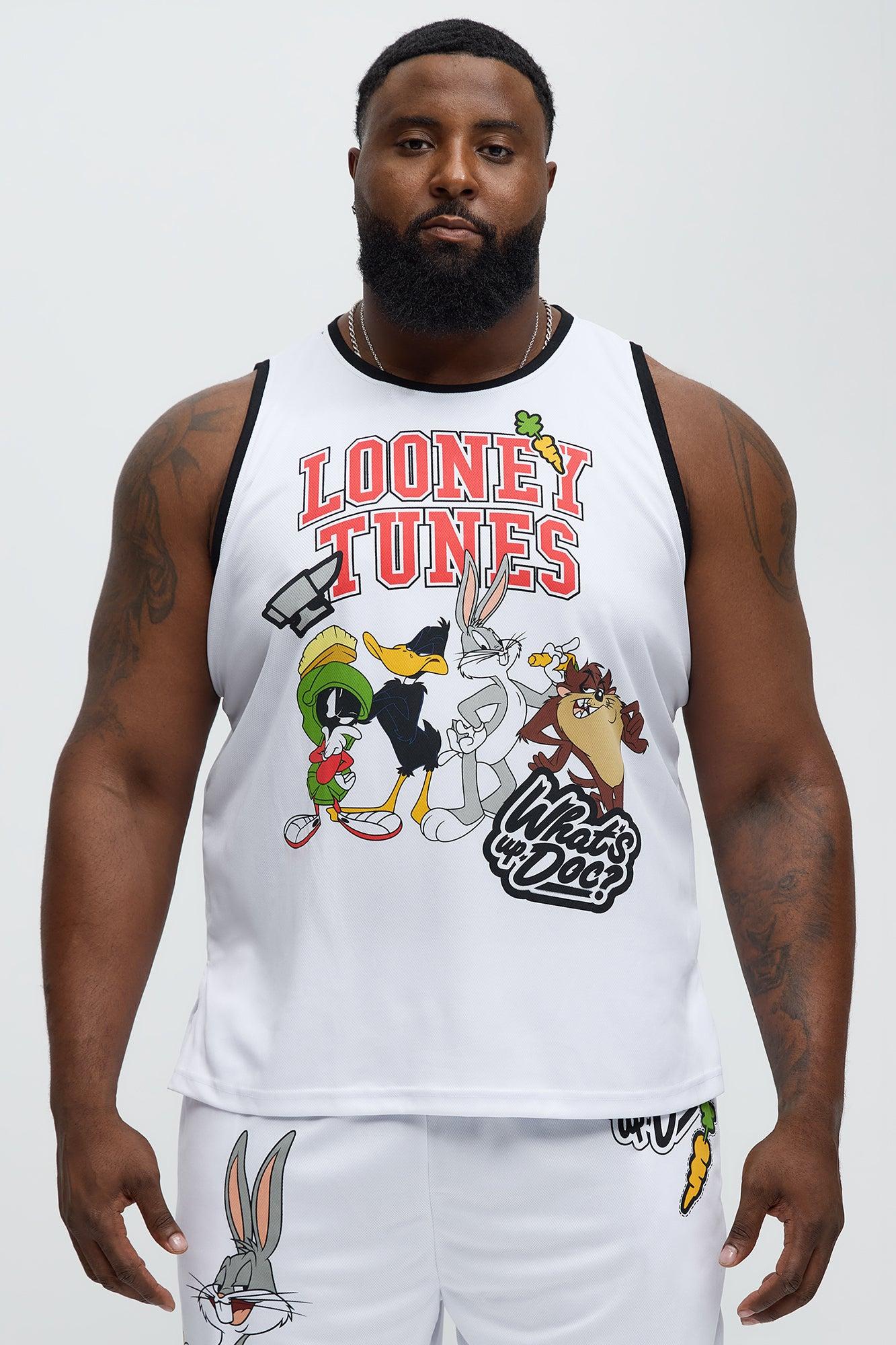 Available In White. Scoop Neck Sleeveless Screen Print 100% Polyester Pair With "What's Up Doc Mesh Shorts" Disclaimer: Due To The Printing Process A Difference In Saturation May Occur. Each Garment Is Unique. Print Placement Will Vary. Imported