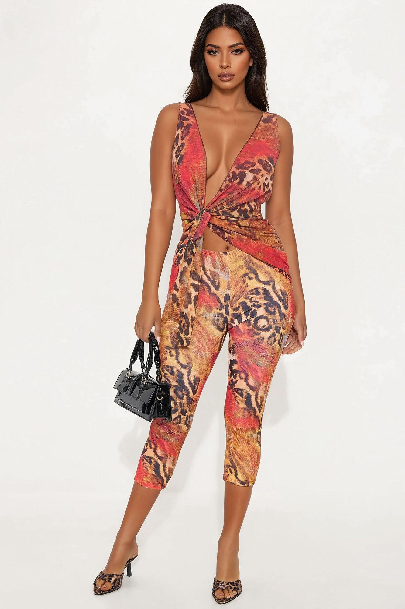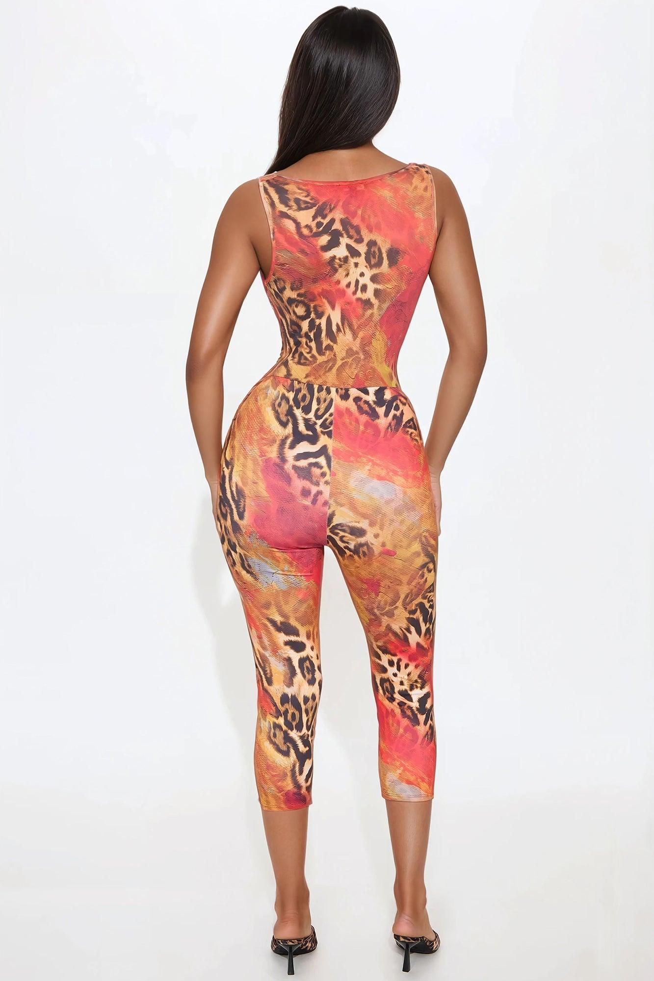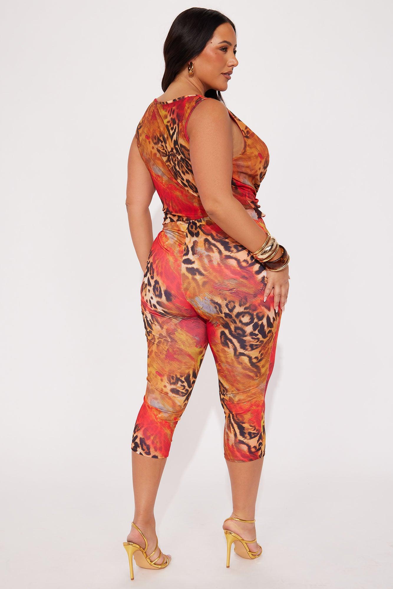 That's Hot Mesh Capri Jumpsuit - Red/combo