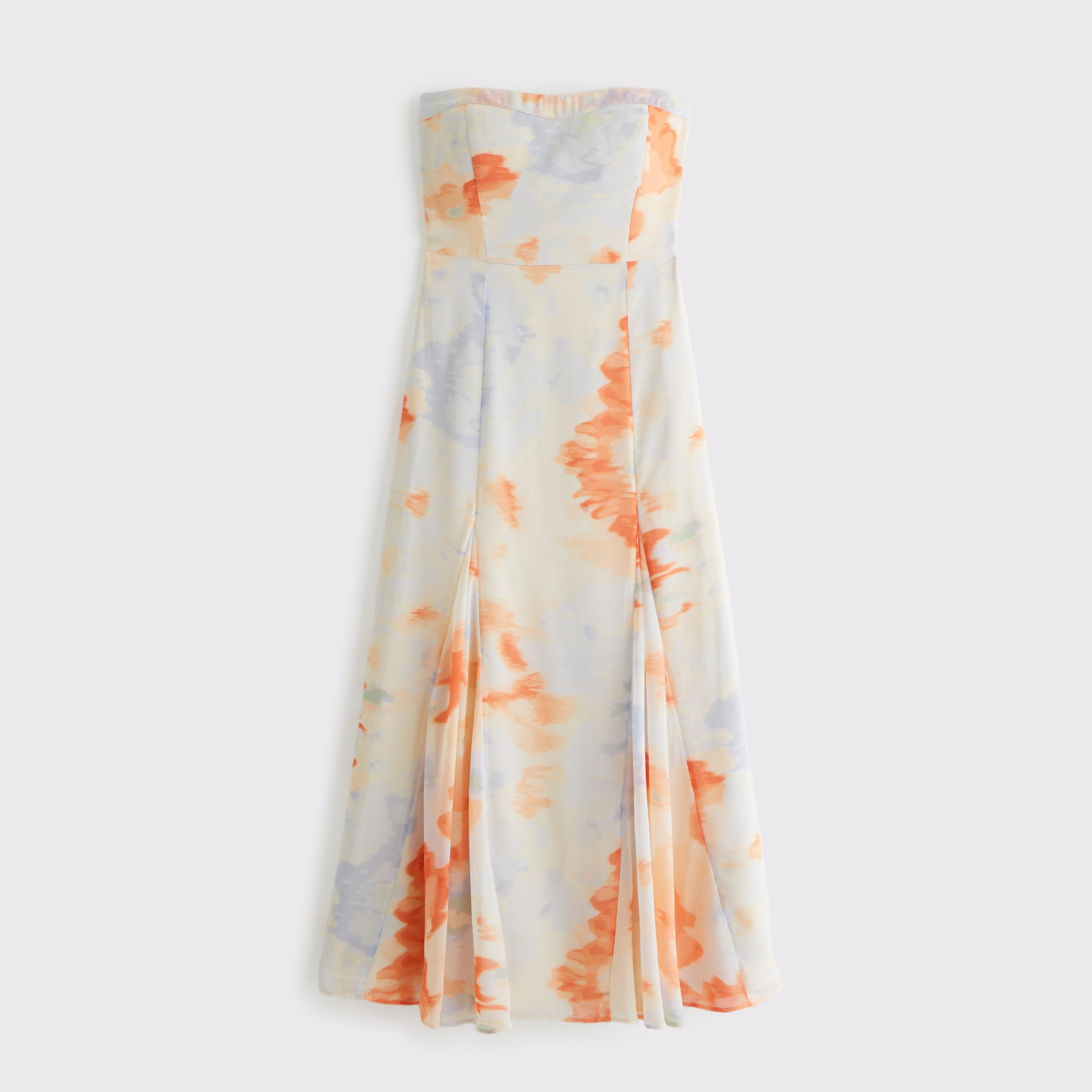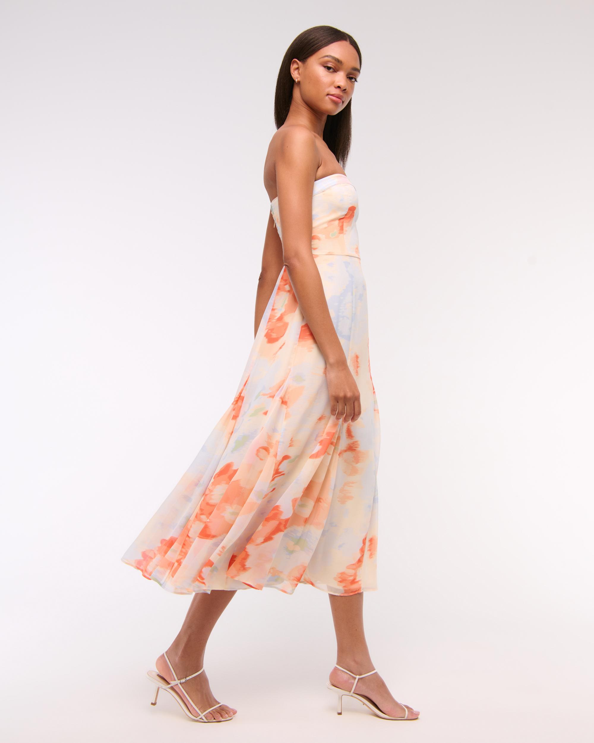 Flattering midi dress in our ultra sheer crepe fabric, featuring a sweetheart neckline, on-trend godet details and a flowy skirt.