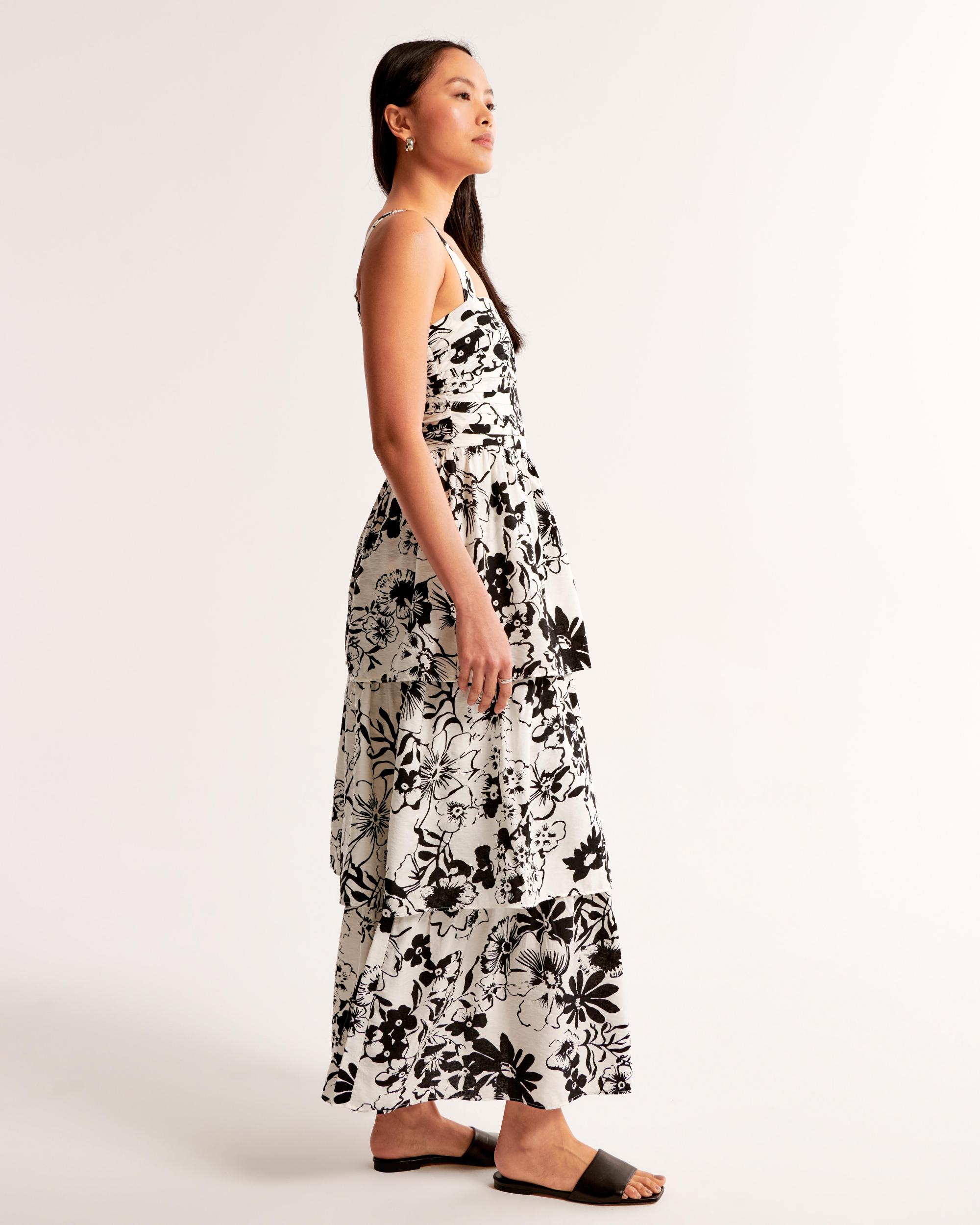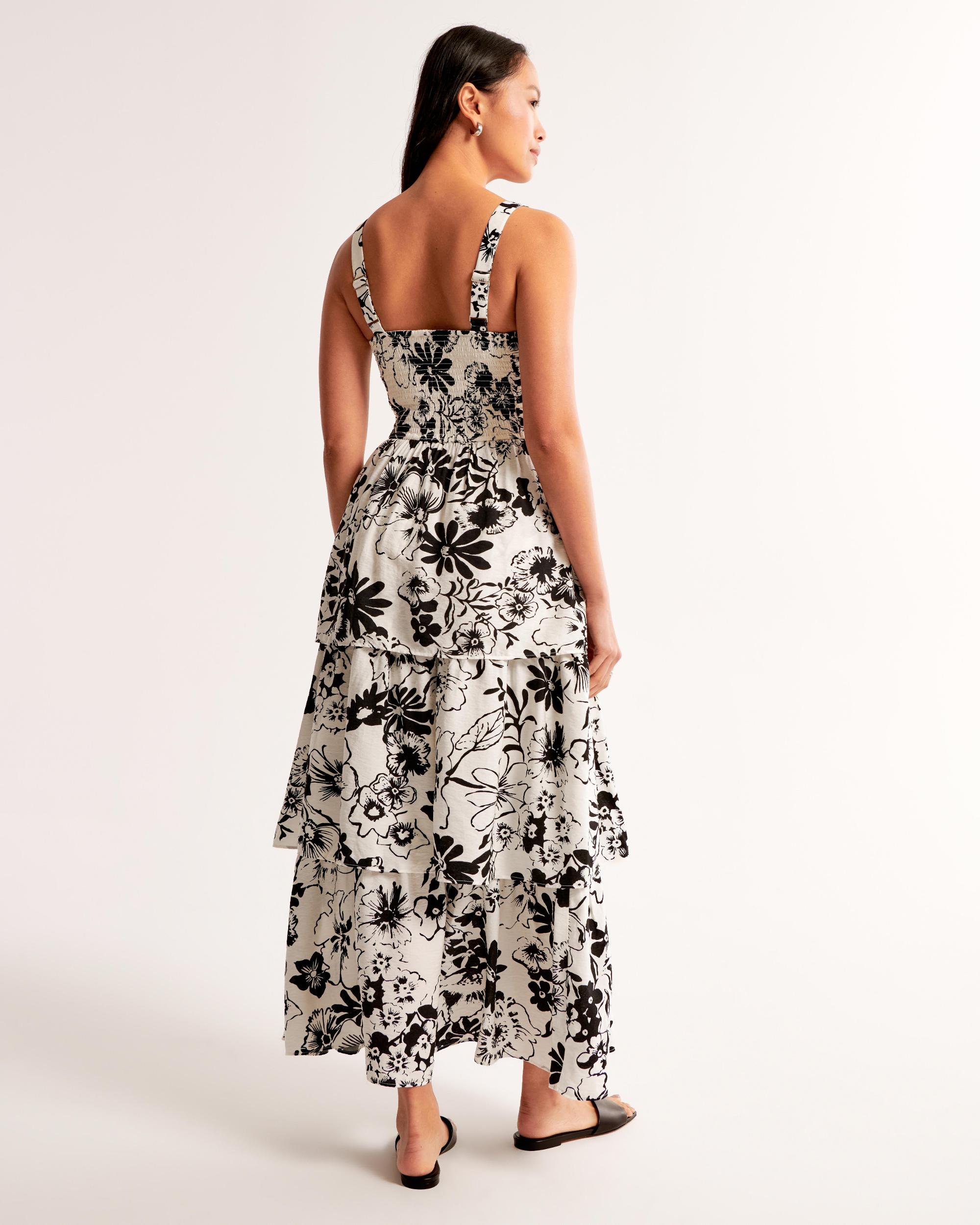 Flattering maxi dress in our textured drapey fabric, featuring ruching details along the bodice, adjustable wide straps, center-back smocking and a floaty skirt with tiering details.