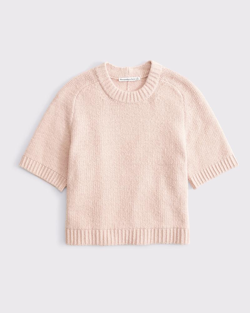 Easy-fitting short-sleeve tee in our soft sweater yarn fabric, with a crew neckline and rib trims along the neckline, cuffs and hem. Pairs perfect with your favorite pair of jeans!By choosing our cotton products, you’re supporting A&F Co.’s investment in Better Cotton’s mission: to help cotton communities survive and thrive, while protecting and restoring the environment. This product is sourced via a system of mass balance and therefore may not contain Better Cotton. This means Better Cotton is not physically traceable to final products. However, Better Cotton Farmers are trained on how to use water efficiently, care for soil health and natural habitats, reduce use of the most harmful chemicals and respect workers’ rights and wellbeing. Click to learn more about Better Cotton: https://corporate.abercrombie.com/sustainability/product-sustainability/materials/#cotton