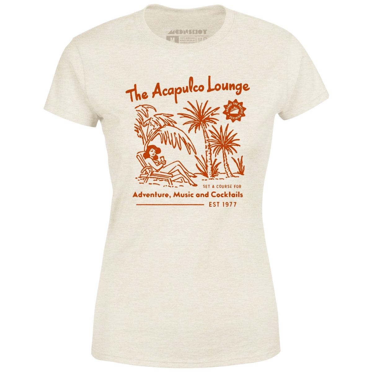 Welcome to the hottest spot on the high seas: The Acapulco Lounge, where the drinks were strong, the saxophone was smooth, and the romances were entirely avoidable (but never avoided). This design tips its captain’s hat to the ultimate floating cocktail lounge aboard The Love Boat, where Isaac poured doubles with a smile and every night felt like formal night. Whether you were there for the disco ball, the soft piano tunes, or just hoping Julie the Cruise Director would notice you, this one's for you. No passport required. Just vibes, velvet chairs, and possibly a guest appearance by Charo. Printed on our super soft 100% ringspun & combed cotton women's T-Shirt. Or upgrade to our Luxury 52/48 cotton/poly vintage heather edition for an even softer classic look. We print & ship all of our high quality graphic tees in the USA.
