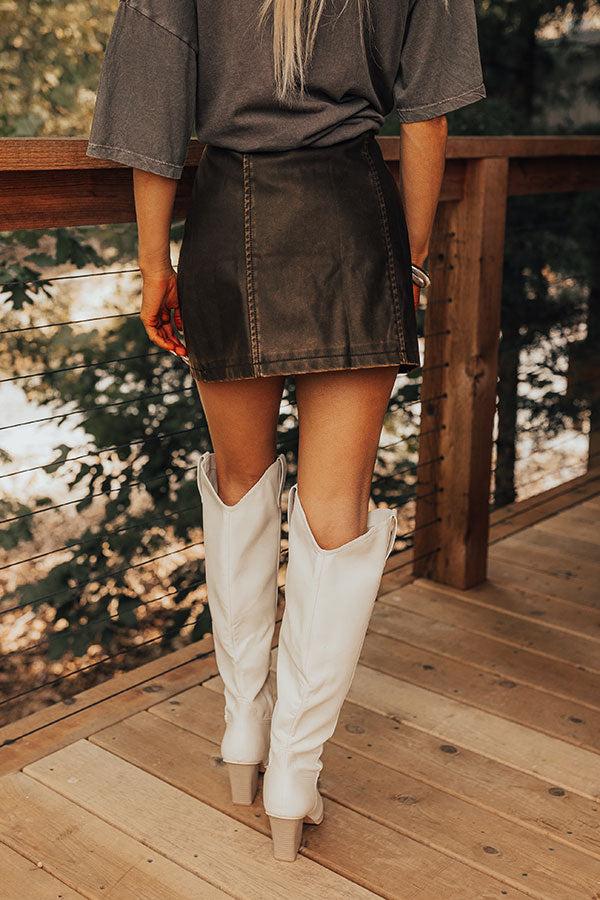 - Give your look a pop of personality with this trendy skirt! Pair it with your favorite graphic tee and cowboy boots for a touch of southern charm! - Fully lined vintage inspired faux leather material - A hidden zip fly and hook and eye closure - Faux pocket accent cuts - A flattering silhouette that ends in a straight, mini skirt length hemline