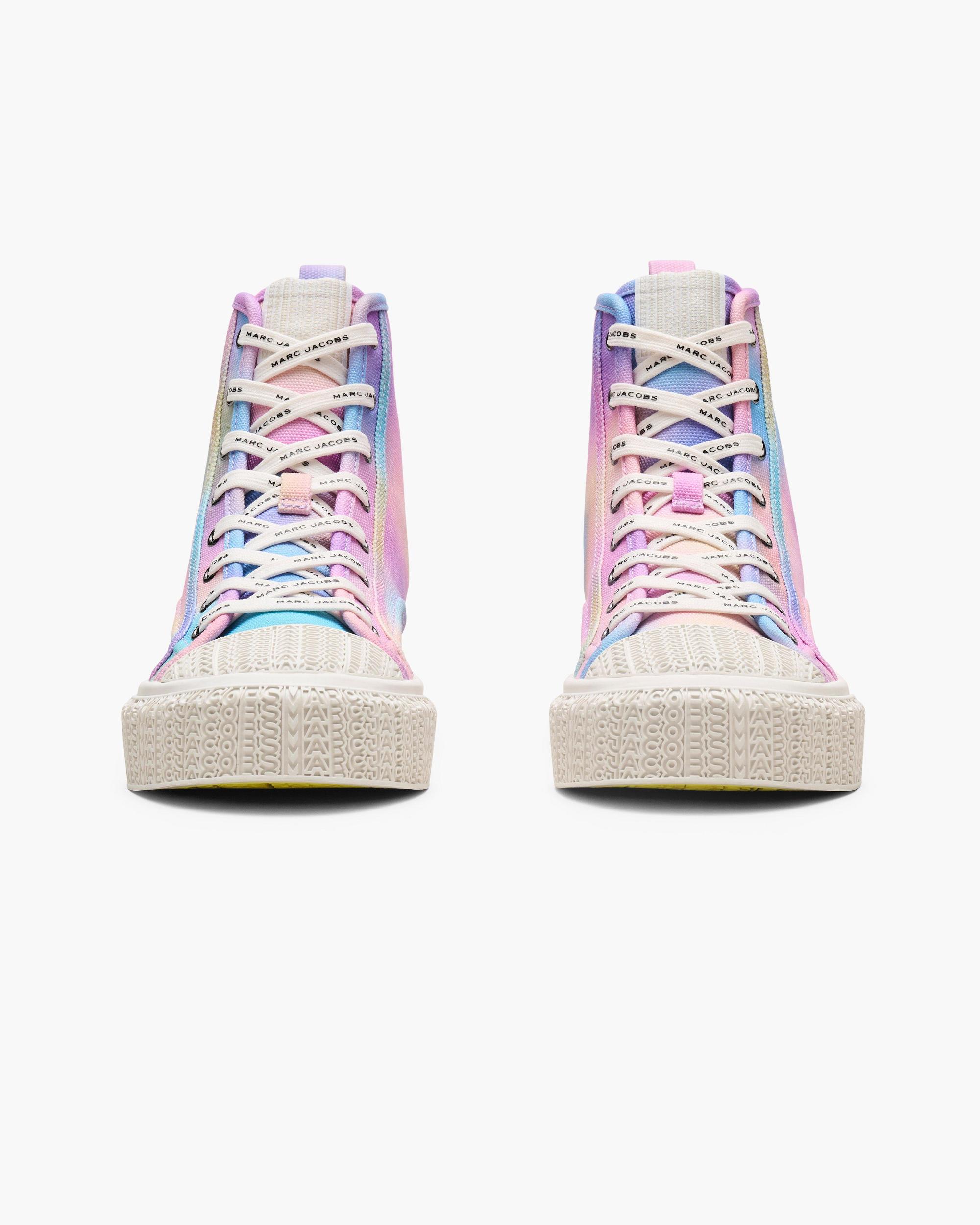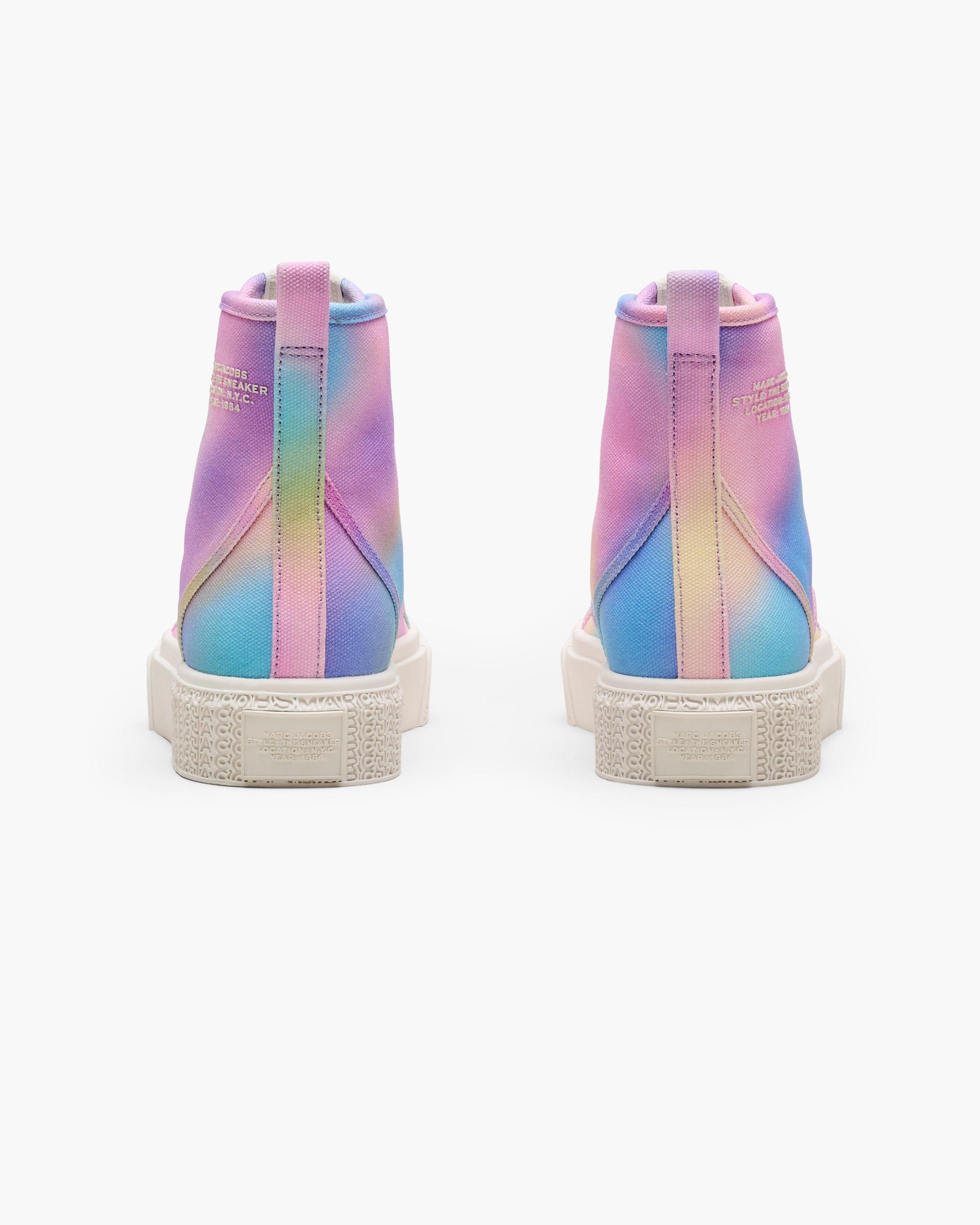 A timeless silhouette for everyday wear, these high-top sneakers are crafted in durable canvas, featuring our vibrant airbrush effect. With a textured monogram rubber outsole, dimensional namesake branding and a signature "Daisy Yellow" pop sole, they deliver bold style and effortless versatility. Shop Marc Jacobs The Airbrush Canvas Sneaker