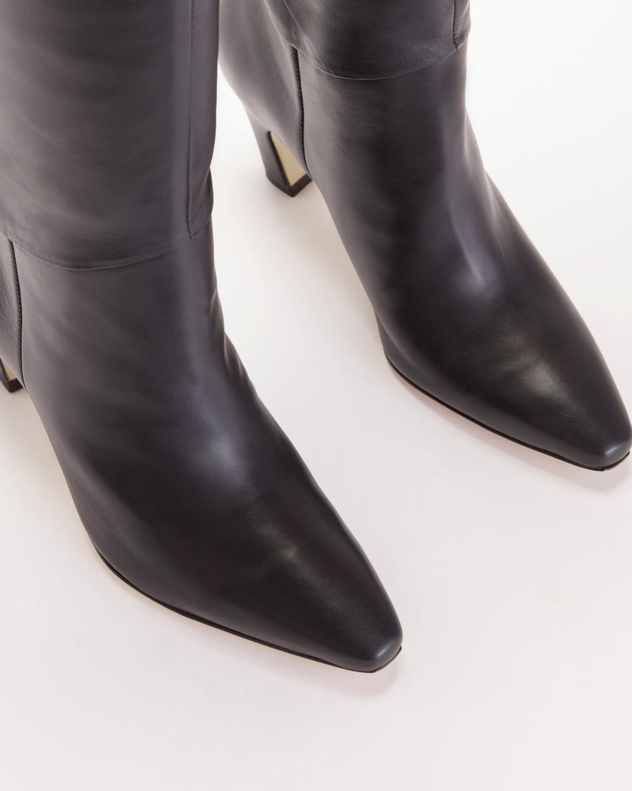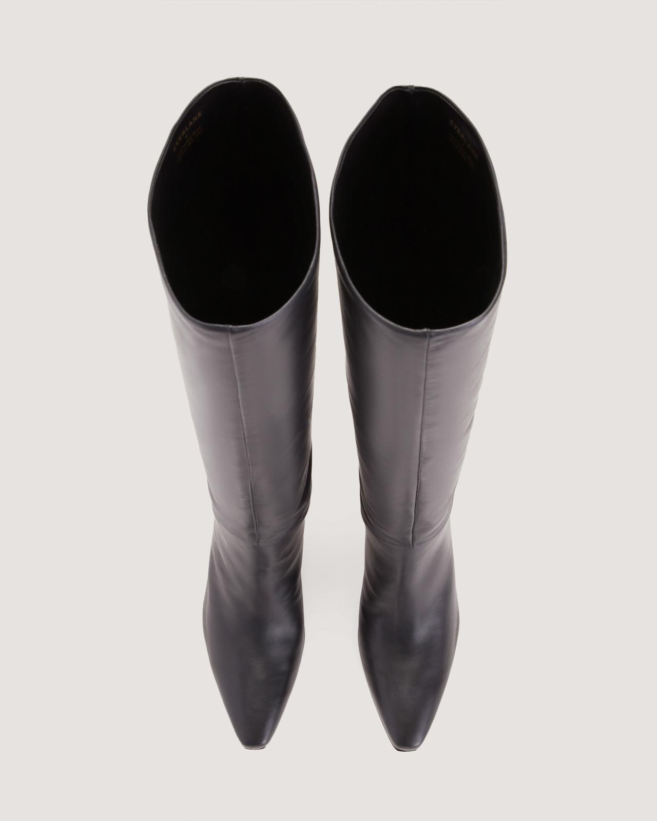Elevate your boot game. A knee-high boot that sets the curve. Designed using soft Nappa leather with swooping lines and a soft pointed toe for a sculptural look this well-heeled style will add a sophisticated touch to any outfit. We love it over denim or under a sweater dress. This boot uses leather sourced from a tannery rated Gold by the Leather Working Group (LWG)the highest rating a tannery can receive for demonstrating best practices in environmental compliance and performance capabilities. Knee-High Banana Heel Boot by Everlane in Black, Size 10