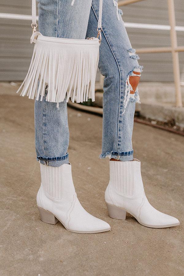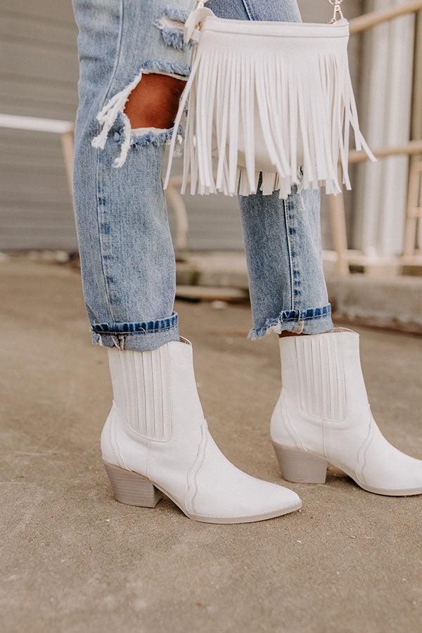 Our chicest fall boot yet, our clean white 'Banter' boot features faux leather material, a pointed closed toe, a short blog heel, and an above-the-ankle slip-o silhouette! This boot runs more true to size. Heel Height: 2 inches