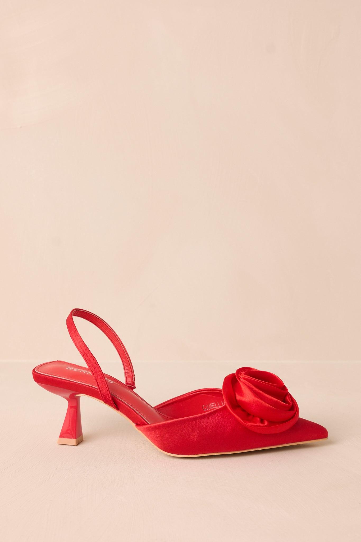 Unleash your inner fashionista with The Beats Of My Heart Red Slingback Kitten Heels! These stylish heels show a bold red color, rose detail and a comfortable slingback design. Perfect for adding a pop of color to any outfit. Elevate your wardrobe with these must-have heels! These red heels feature a slingback design, kitten heel, pointed toe, and fun rose toe accent. Heel measures 2.5" Man made materials Non-skid sole Imported True to Size