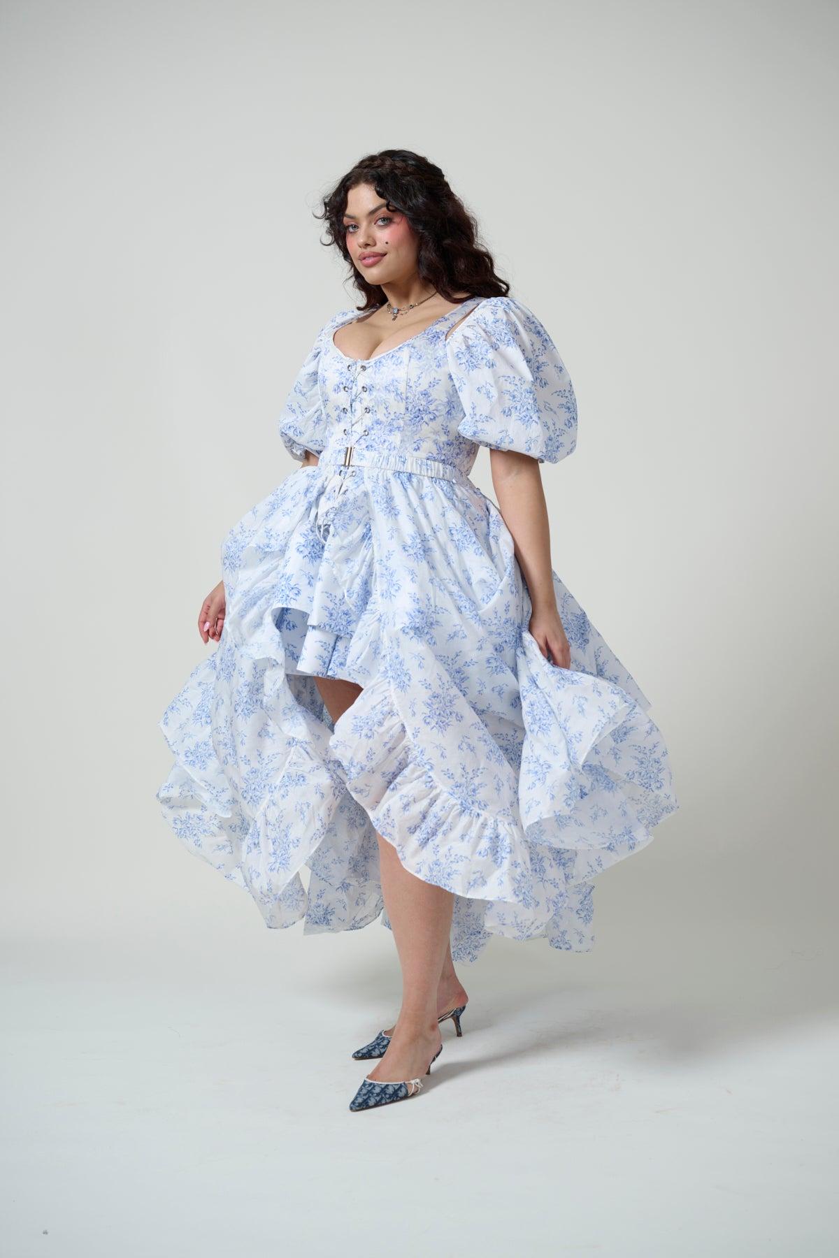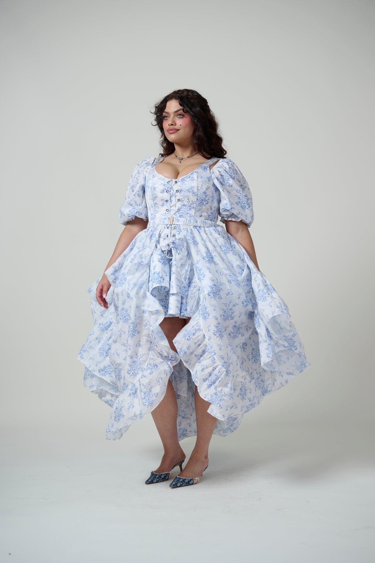 The Duchess Corset laces up in the center with two draw chords and is designed to make a stunning statement however you style it. Made from 100% silk and fully boned. Wake up and smell the coffee… at your favorite 18th century Bed & Breakfast. This elegant blue floral was inspired by a stay somewhere magical, where the drapes match the bedsheets, and the clucking hens outside your window supply the eggs served from 7-10am. Wear this to tend to the affairs of your estate, even if your “estate” is a studio apartment. Selkie's one-of-a-kind prints are uniquely placed, we're committed to sustainability and cut our fabric to prevent any excess waste. To ensure the best fit, measure your bust and high waist before ordering and steam for optimal beauty. Phoenix is 5’9” and wearing a size XXL in Selkie. Her measurements are 36” bust, 34” waist, 44.5” hip. For more specifics, please text our help line. Fabric: 100% Silk Satin boned corset with two draw chords Care: Dry clean only Designed and fit in LA, Made in partnership with our reputable and expert production team in Jianying, China. Our products are made with the utmost in quality by some of the best craftsman in the industry. Learn more about our team and see our facilities!