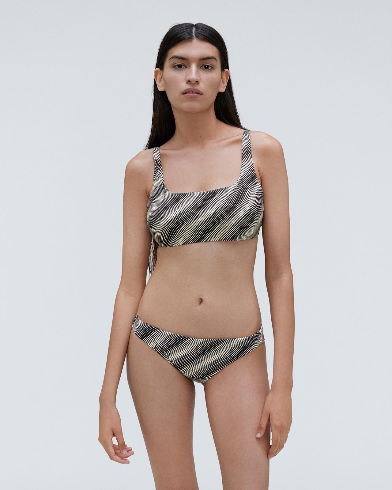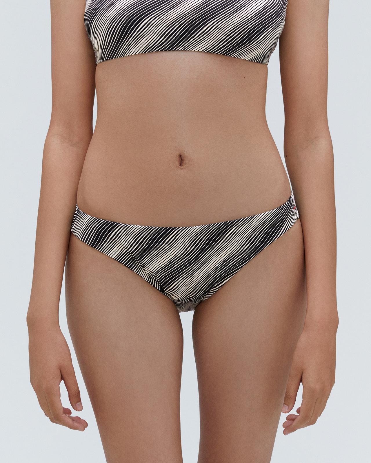 Designed for youand the planet. The Bikini Bottom features a classic bikini cut and moderate bum coverage. Plus its made of fully lined Italian fabric with technical quick-drying and fade-resistant properties which makes it versatile enough for every summer activity. Even better? This style was fit-tested on 112 different women to ensure that it feels comfortable looks flattering and stays putno matter how you move. Each suit in our Swim collection is made with 82% of ECONYL yarn a 100% regenerated nylon fiber made from nylon waste otherwise polluting the Earth like fishing nets fabric scraps carpet flooring and industrial plastic rescued from all over the world. Learn about our No New Plastic initiative here. Womens Bikini Swimsuit Bottom by Everlane in Black/Canvas, Size XL