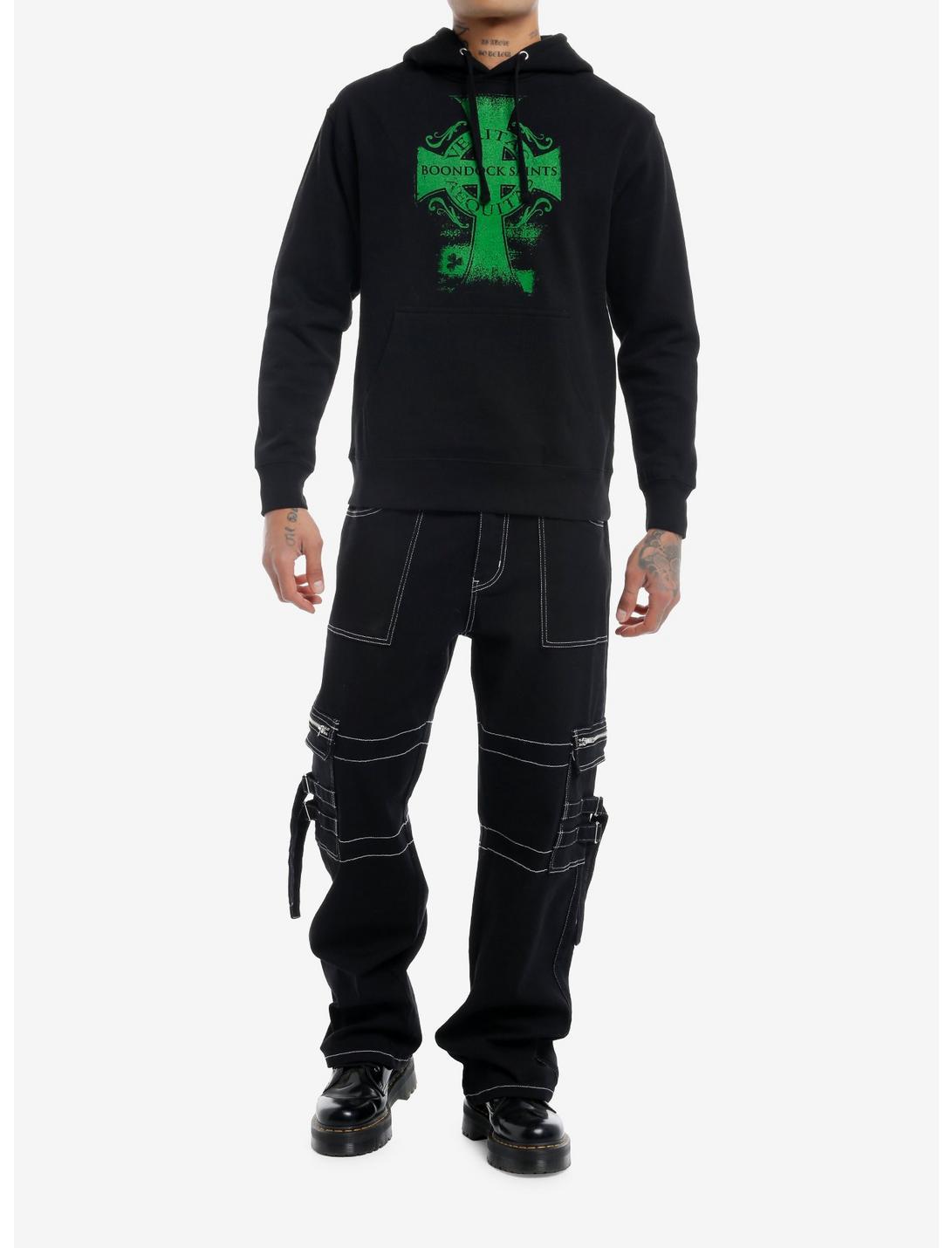 Channel your inner vigilante with this The Boondock Saints hoodie! Featuring a bold green Celtic cross design. Comes with a drawstring hood and kangaroo pocket.80% cotton; 20% polyesterWash cold; dry lowImportedListed in men's/unisex sizesModel is 6'1''Model wears size Medium