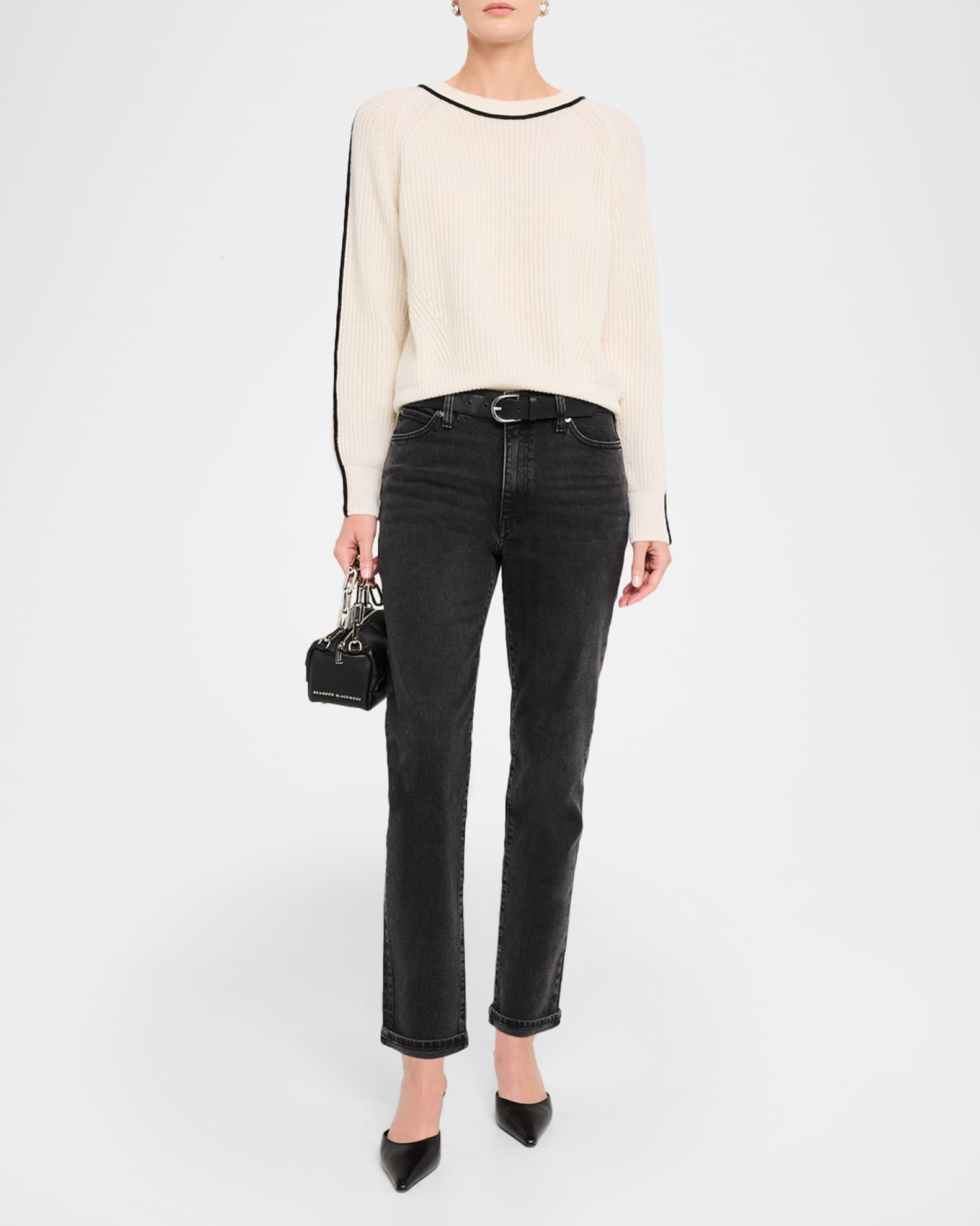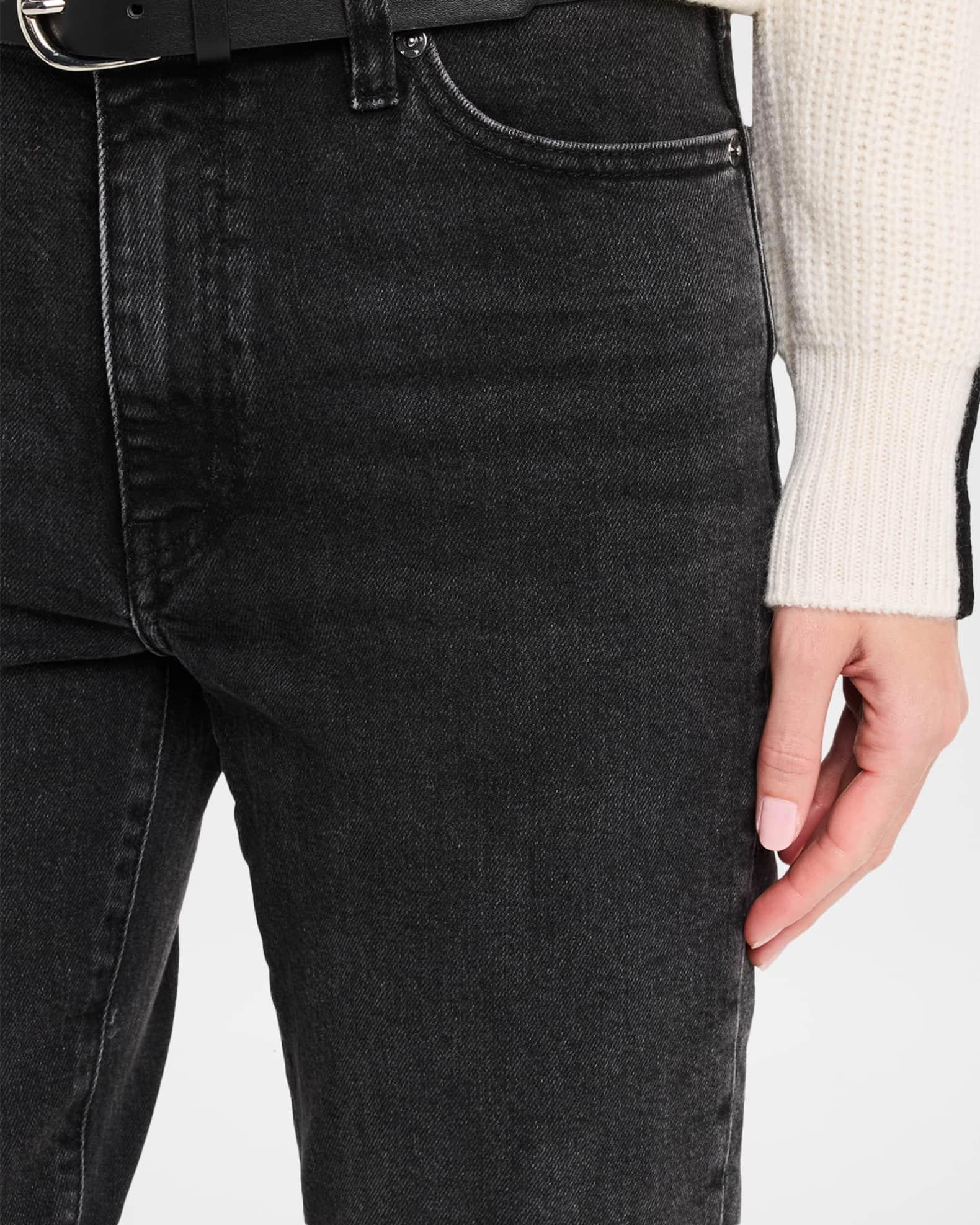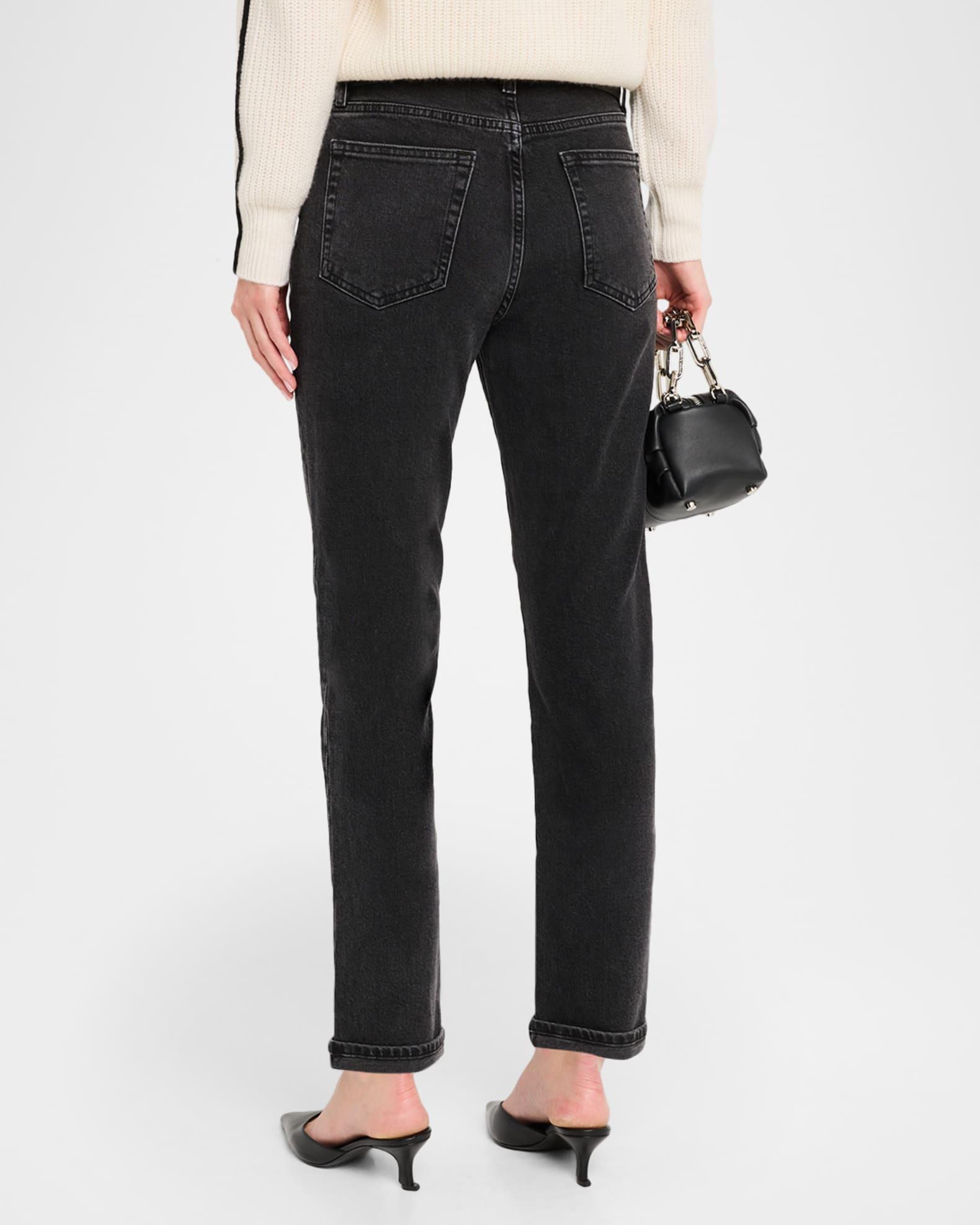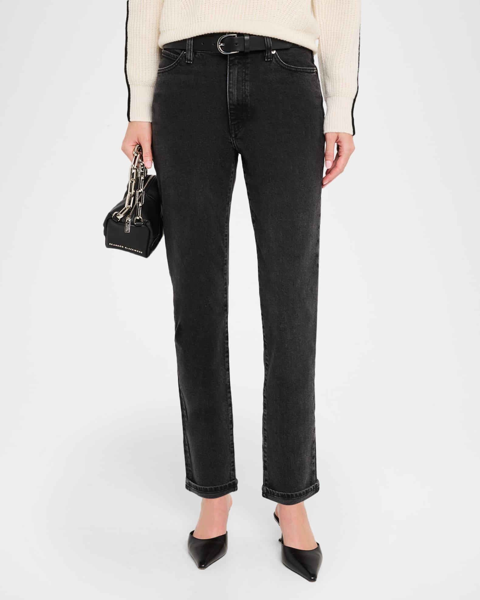 FRAME "The Borrowed" jeans finished with a cuffed hem in black stretch-denim Approx. 10.3" rise; 27.5" inseam Mid-rise; sits high on the hip Five-pocket style Straight legs Ankle length Button/zip fly; belt loops Cotton/elastane Machine wash inside out Imported