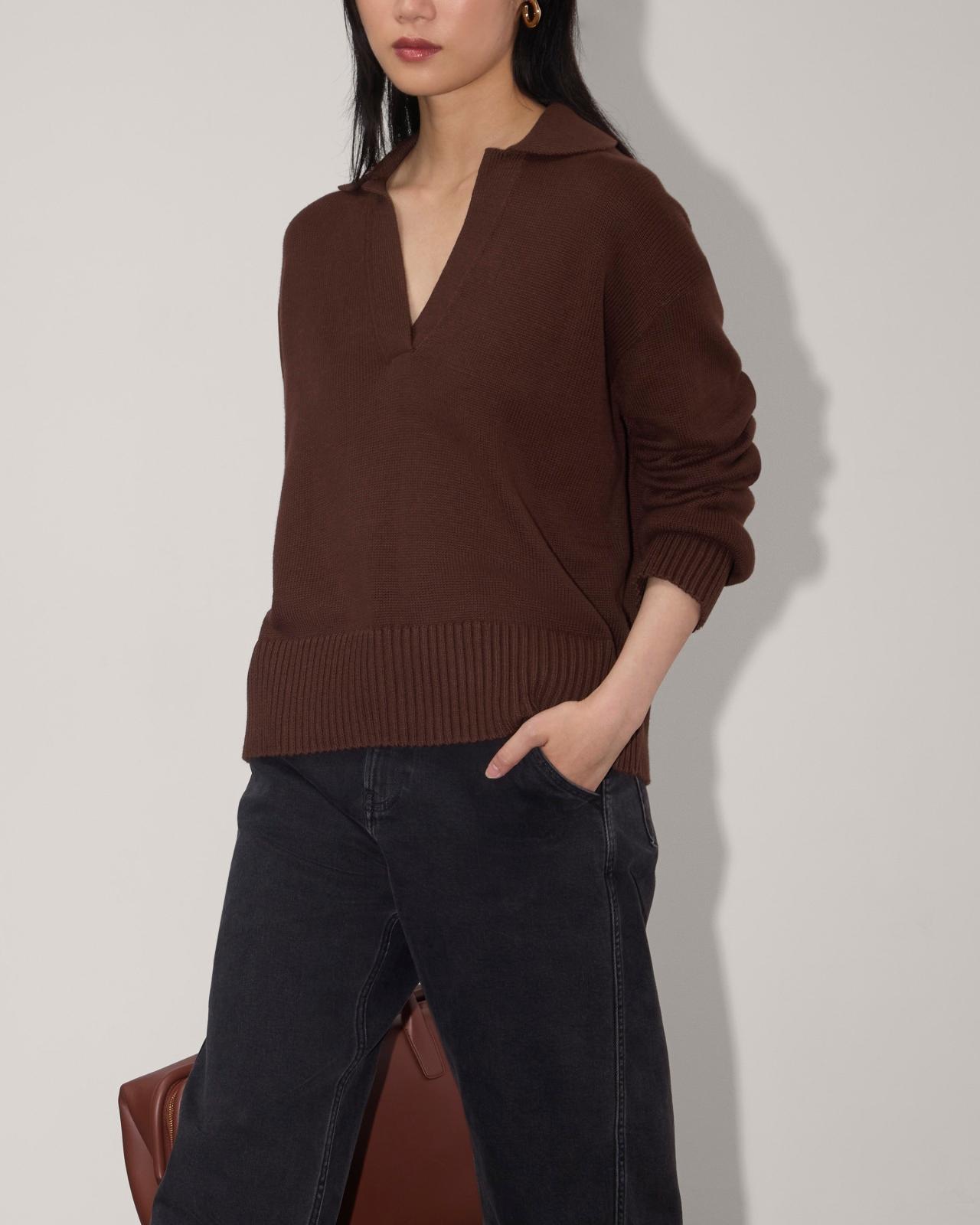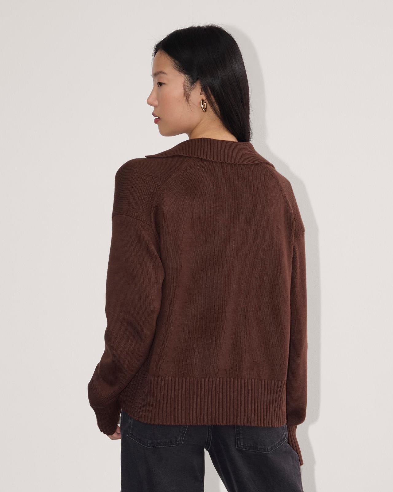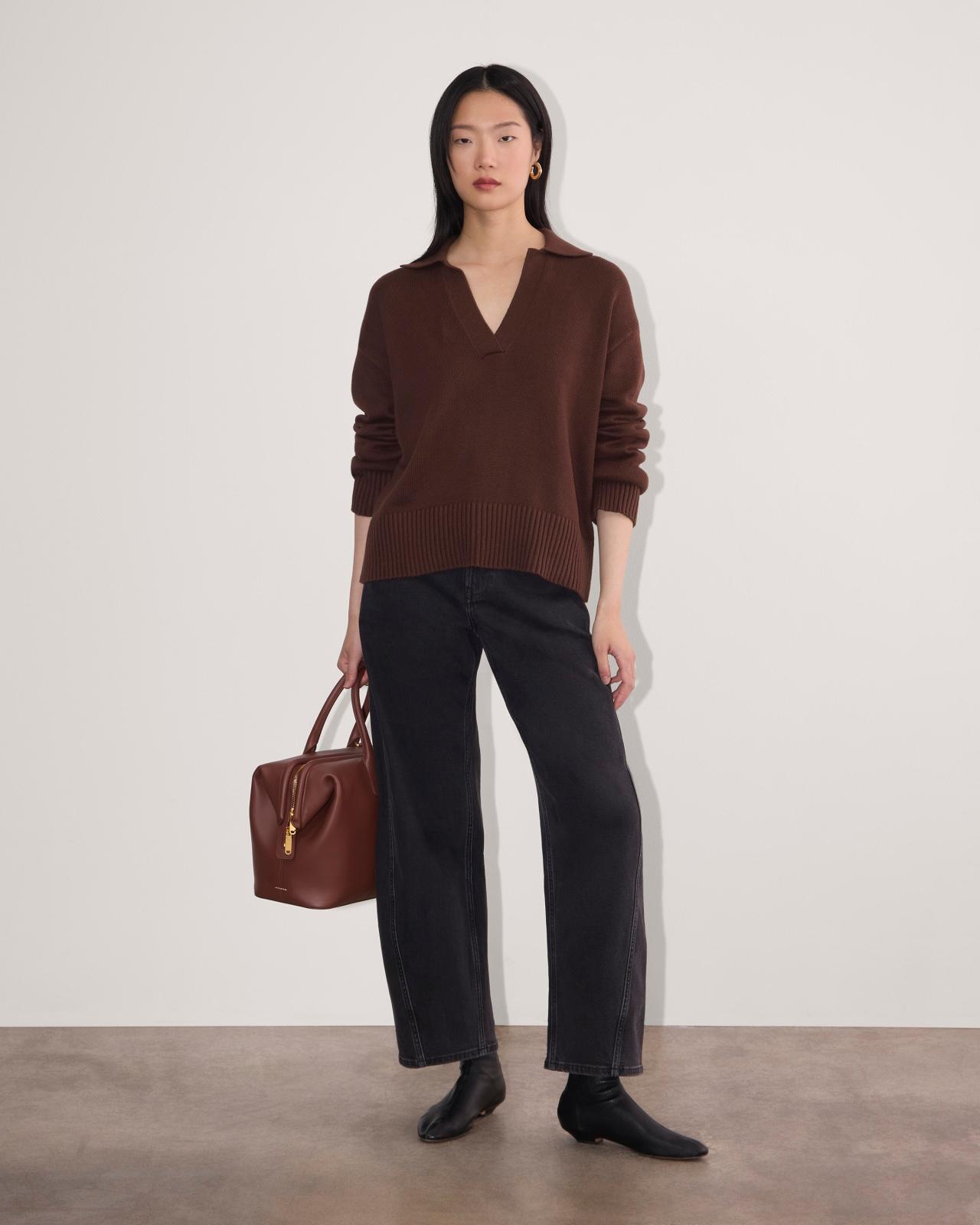 About This Style. This piece features a classic polo neck, a boxy, relaxed fit, and wide straight sleeves with a chunky rib hem.