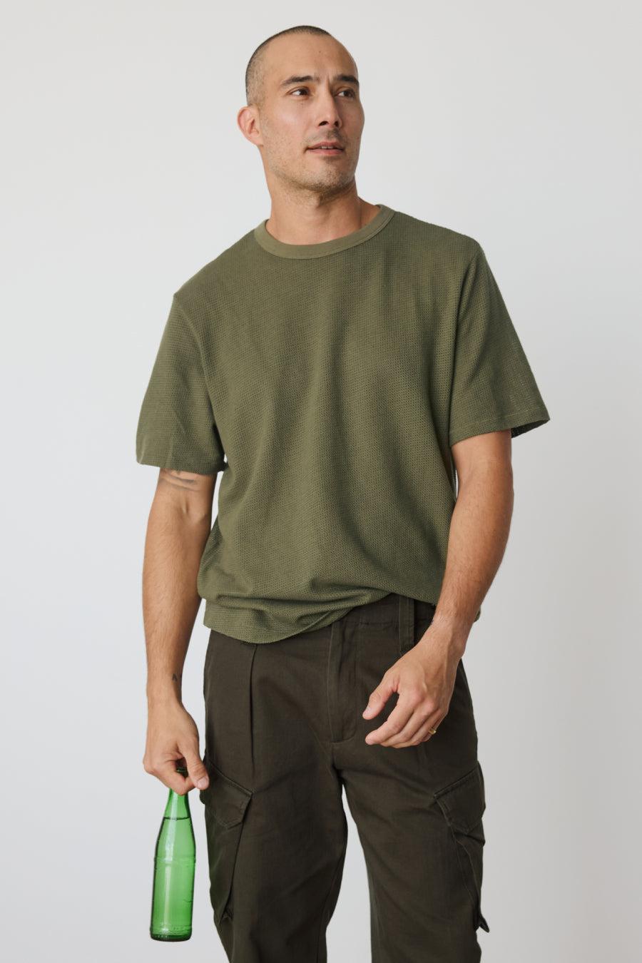 Us: Hi, yes, 911? Summer is too hot and too long.911: *Hangs up* This tee is our answer to the three-month-long swamp fest that is summer. Relaxed fit in an aerated knit construction to let that breeeeeeze in. The ultimate layering T.