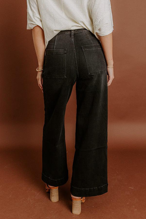 - These trendy jeans are your laid-back essential! Clean, cool, and ready for anything. - Unlined stretchy denim material - Belt loops - A hidden zip fly and button closure - Accent seams down the front - Functional front and back pockets - A wide leg silhouette that ends in straight hemlines