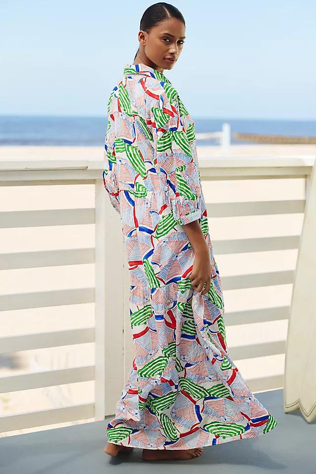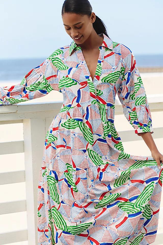 The Carolita Printed Tiered Shirt Dress by Celandine