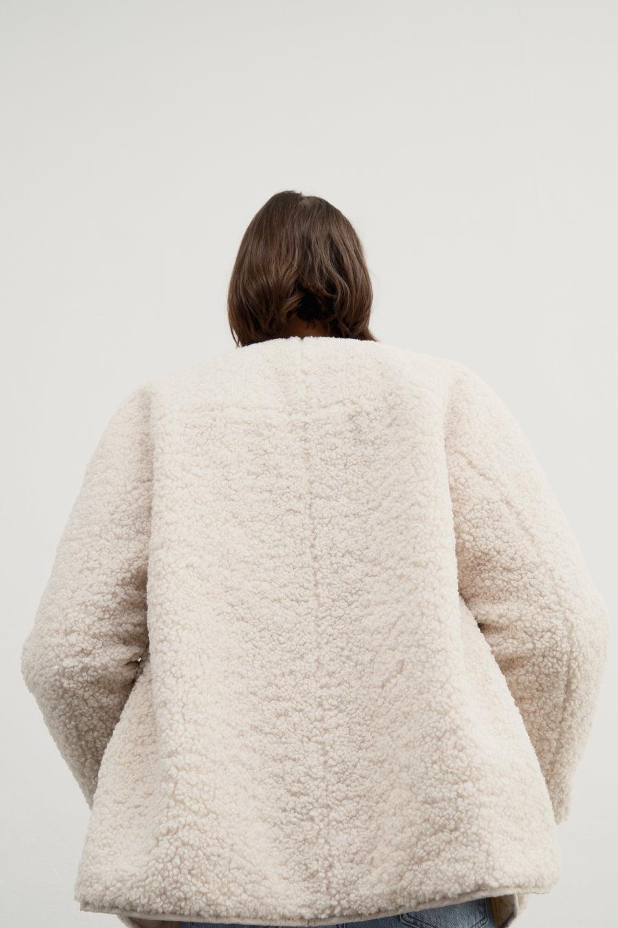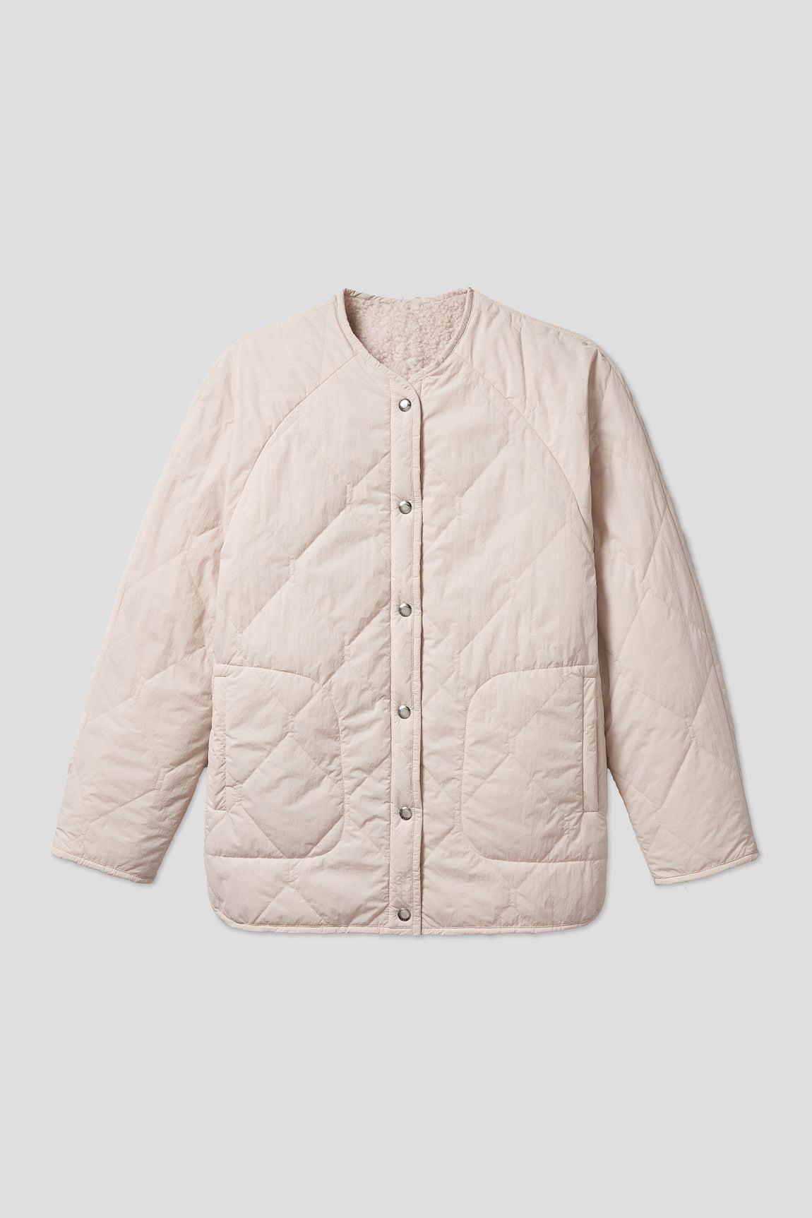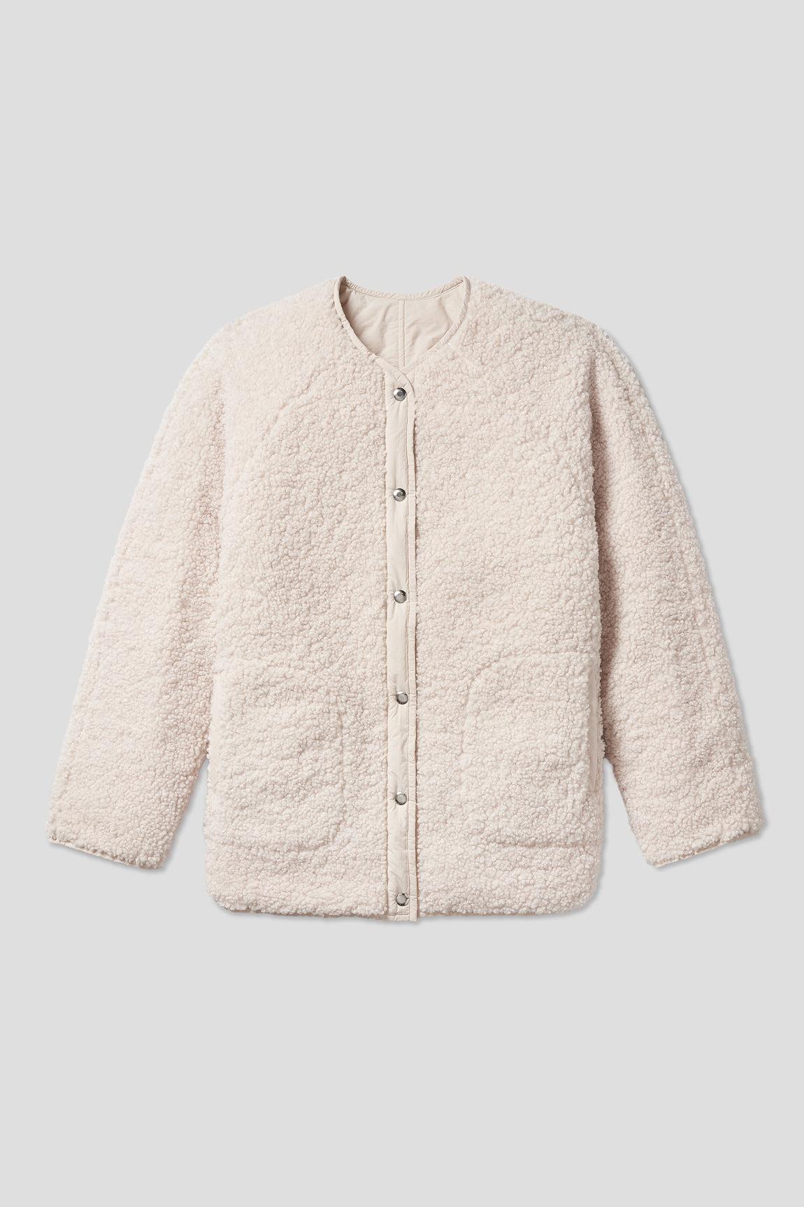 This is one of those pieces that, once you own it, will make you forget how you ever lived without it. A reversible fleece car coat with a chic collarless neckline. Snap closures, batted quilting, pockets on both sides.