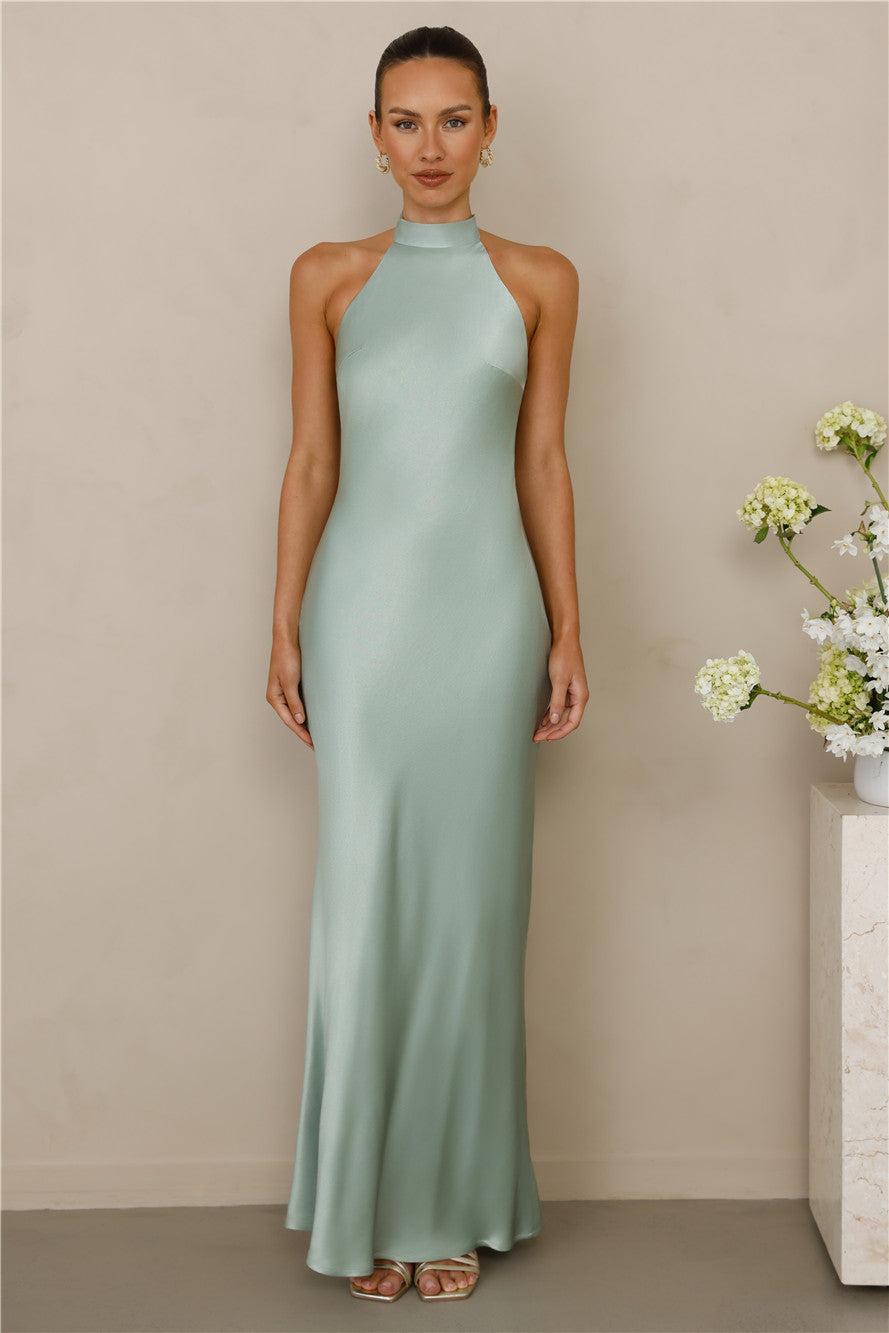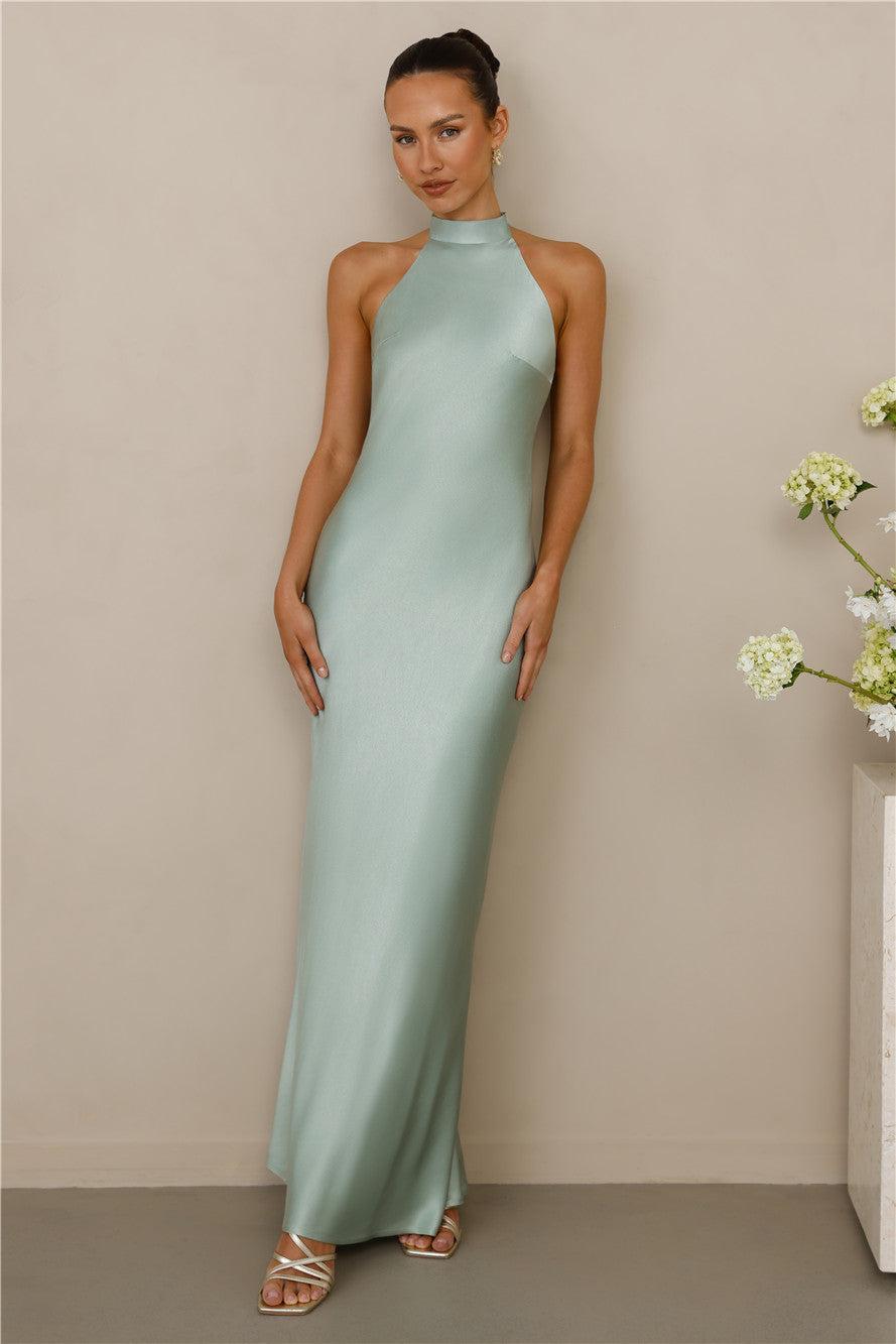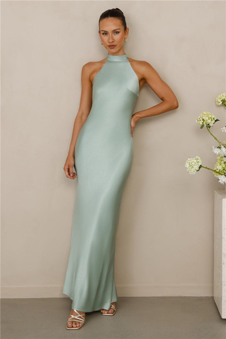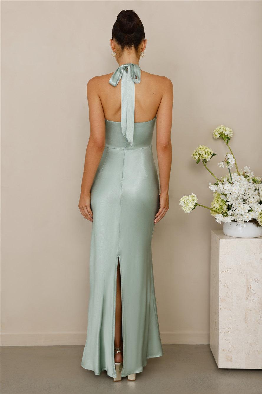 The Cleo Halter Satin Maxi Dress Sage