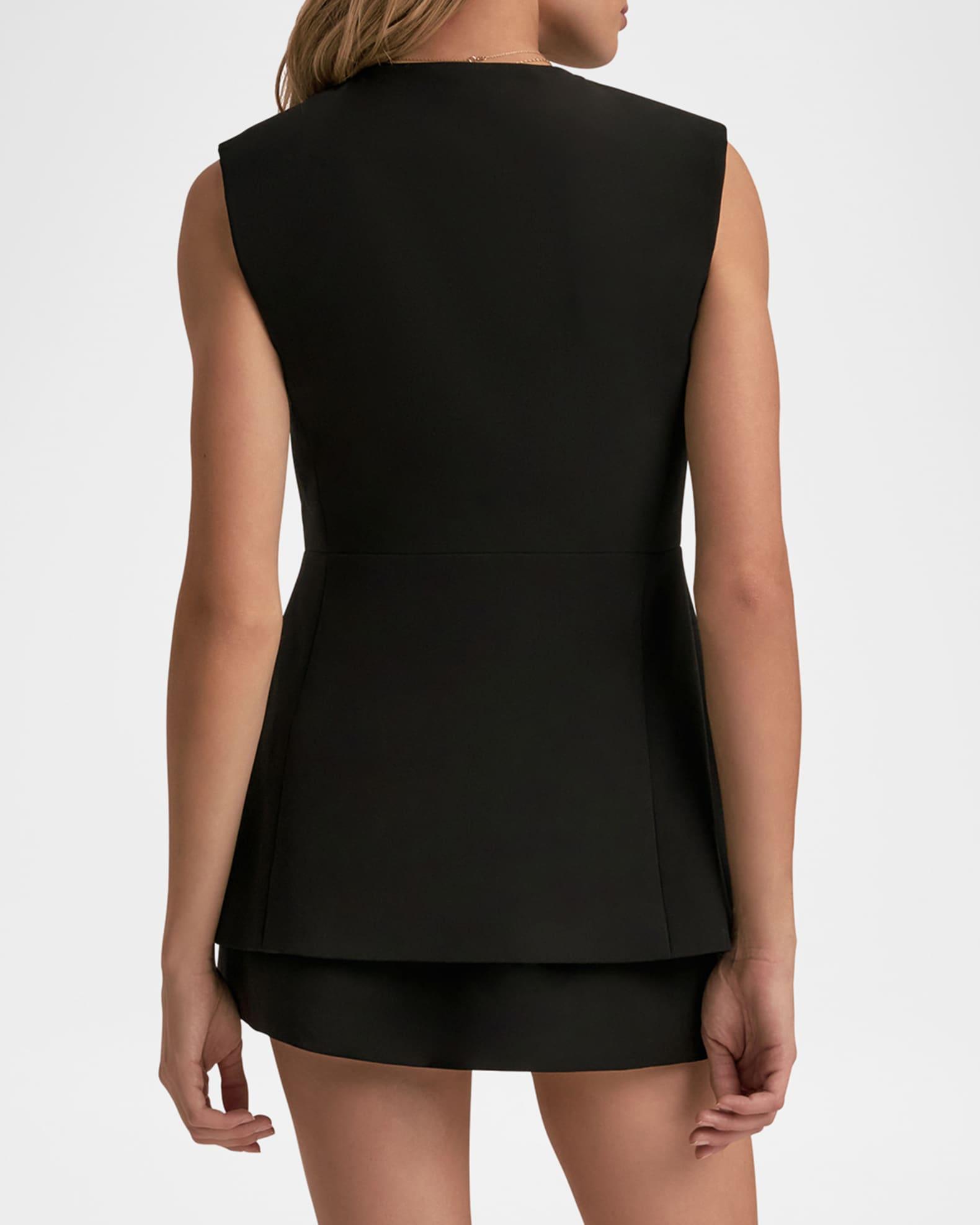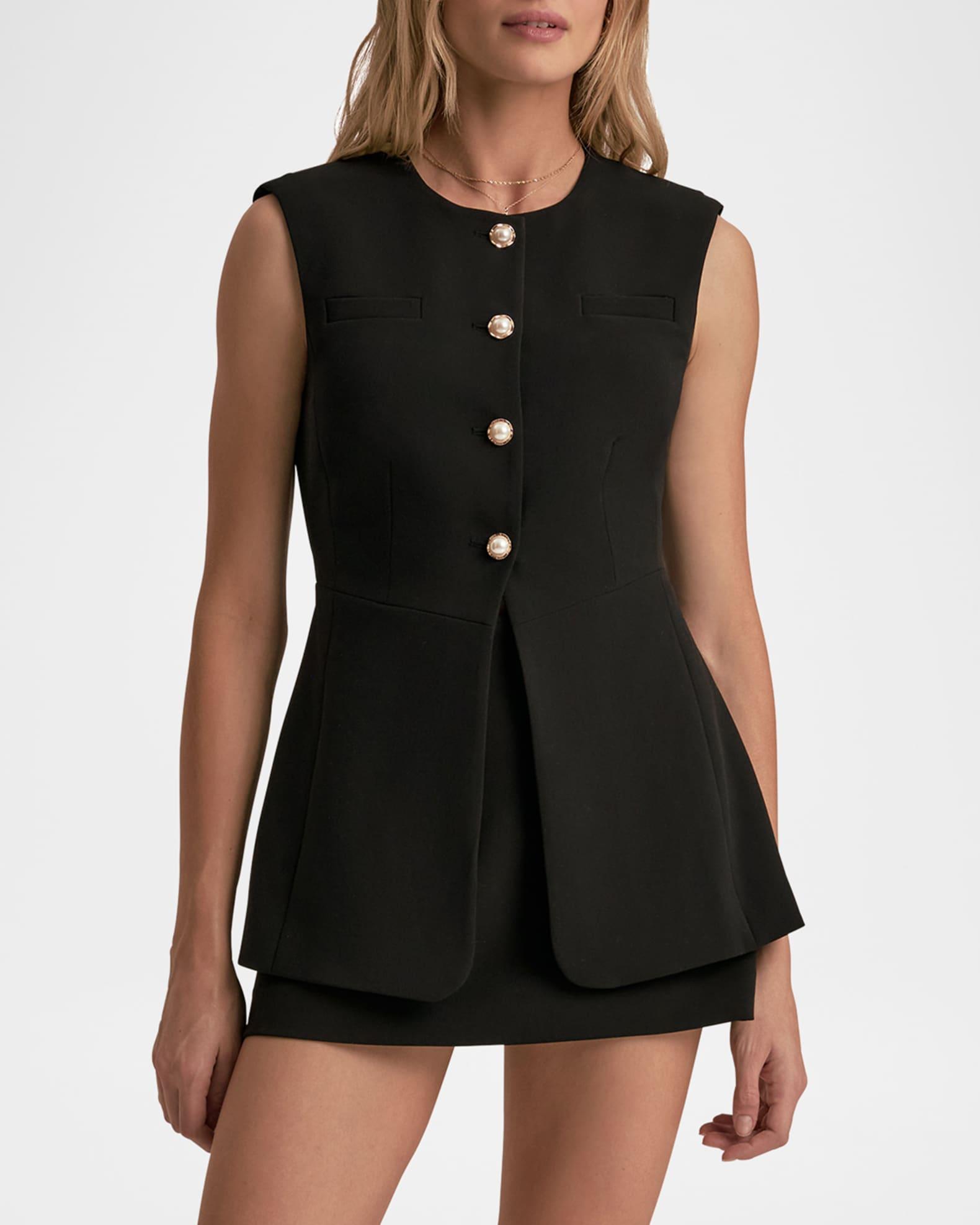 Favorite Daughter suiting vest finished with pearly buttons Round neckline Sleeveless Dual chest welt pockets Tailored fit Cut-away hem Button-front Polyester/Promodal® rayon/elastane Imported