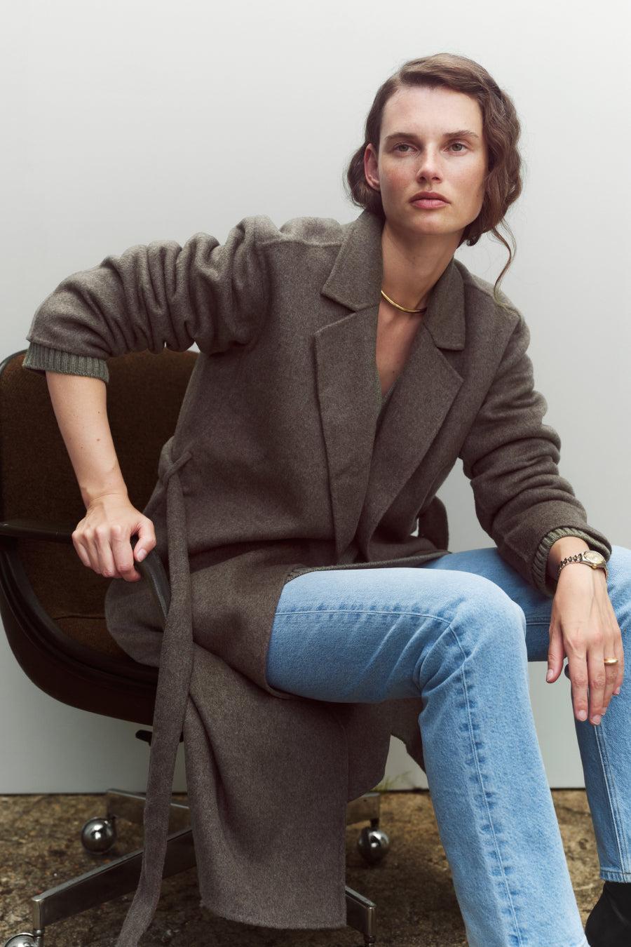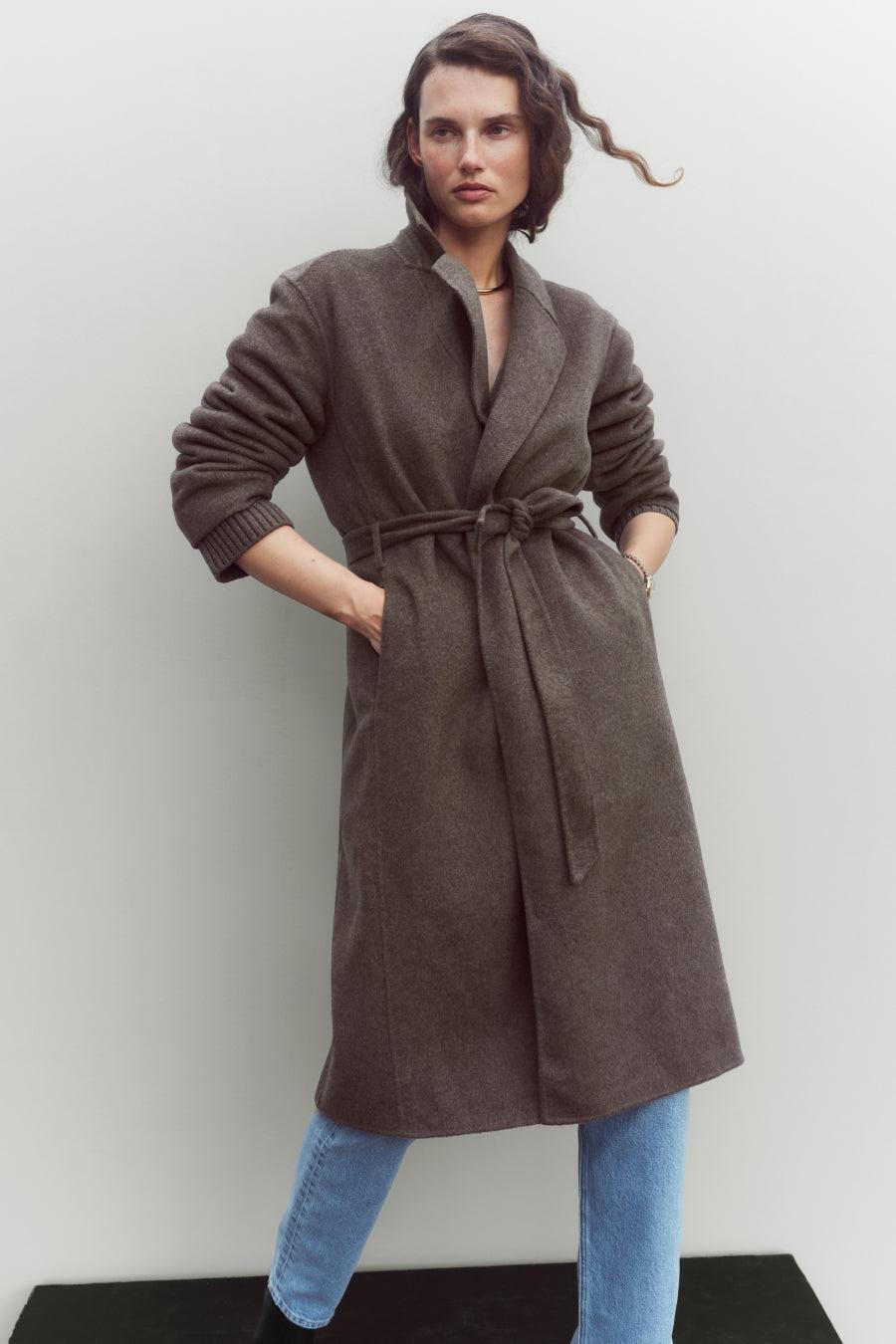 A worthy indulgence. Decadent, double-faced Italian wool. Unlined, so it feels more like a blanket than a coat. Cut to for an easy, robe-like silhouette, but if you like your coats to fit a bit more tailored, we recommend sizing down. Removable belt for versatile styling.