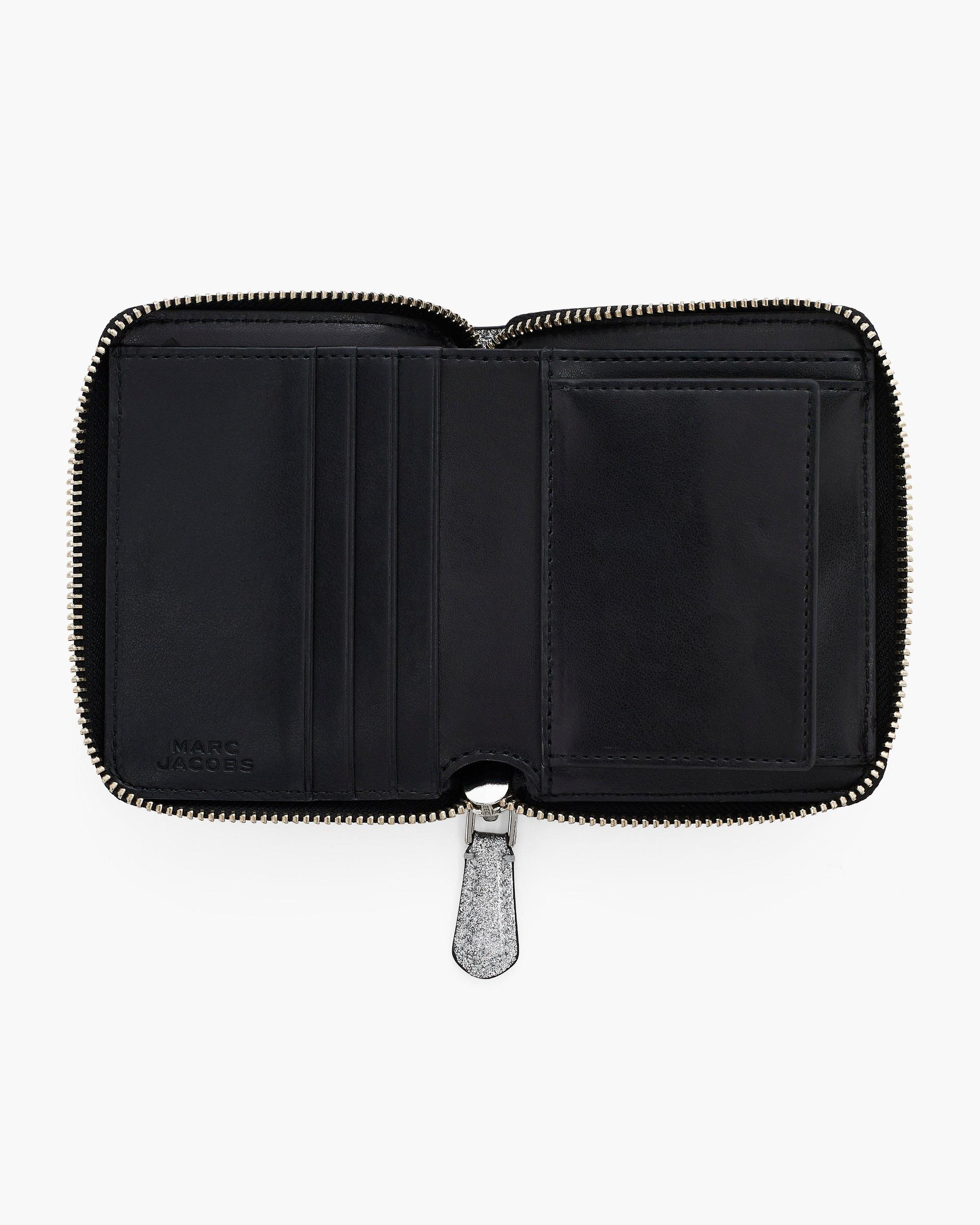 This slim wallet shimmers in a glitter-coated finish - featuring 4 card slots, a bill sleeve, an interior snap coin pouch and an external zip pocket. Lightweight, functional and easy to carry - it’s everyday utility with a shine-worthy twist. Shop Marc Jacobs The Coated Glitter Everyday Slim Compact Wallet