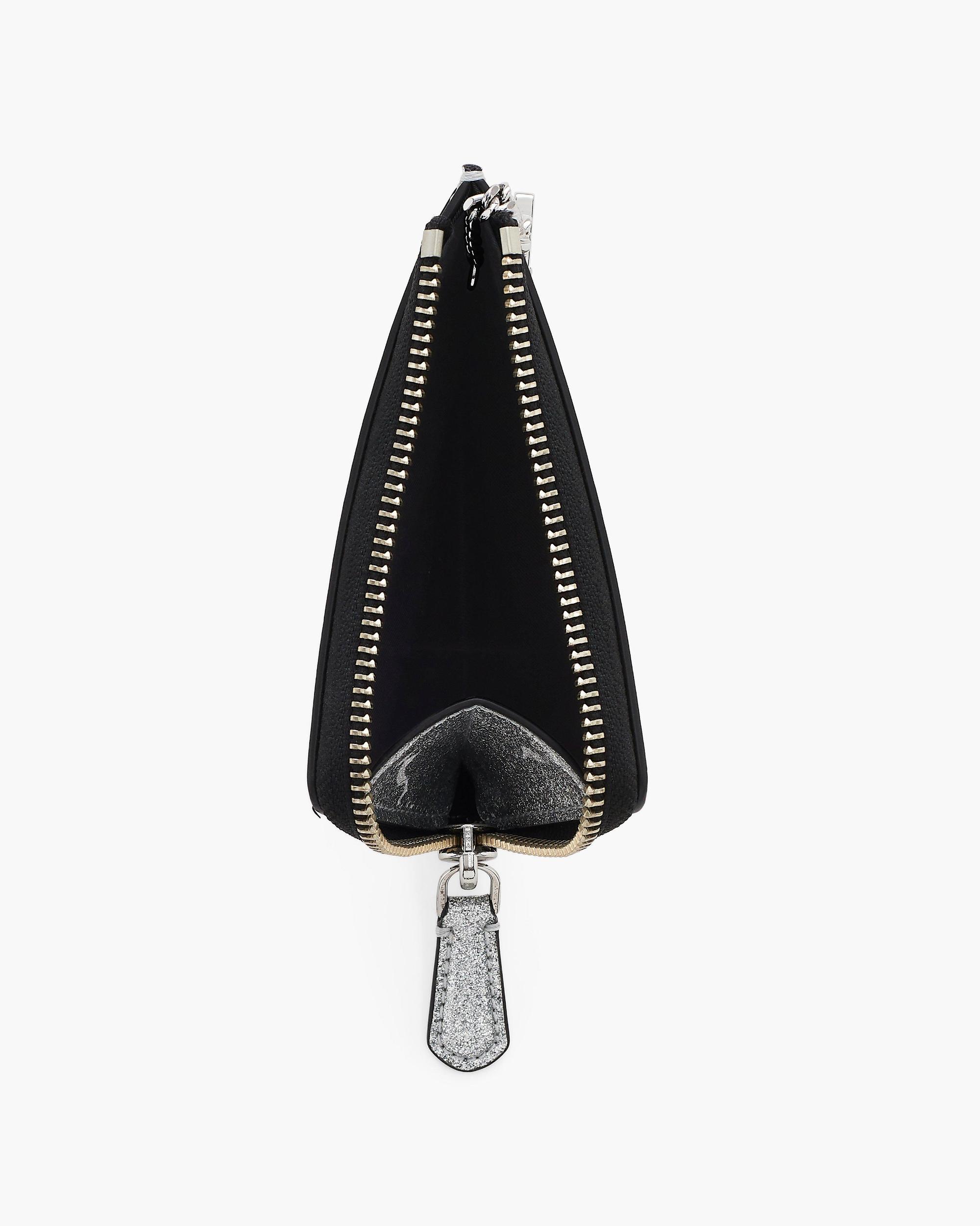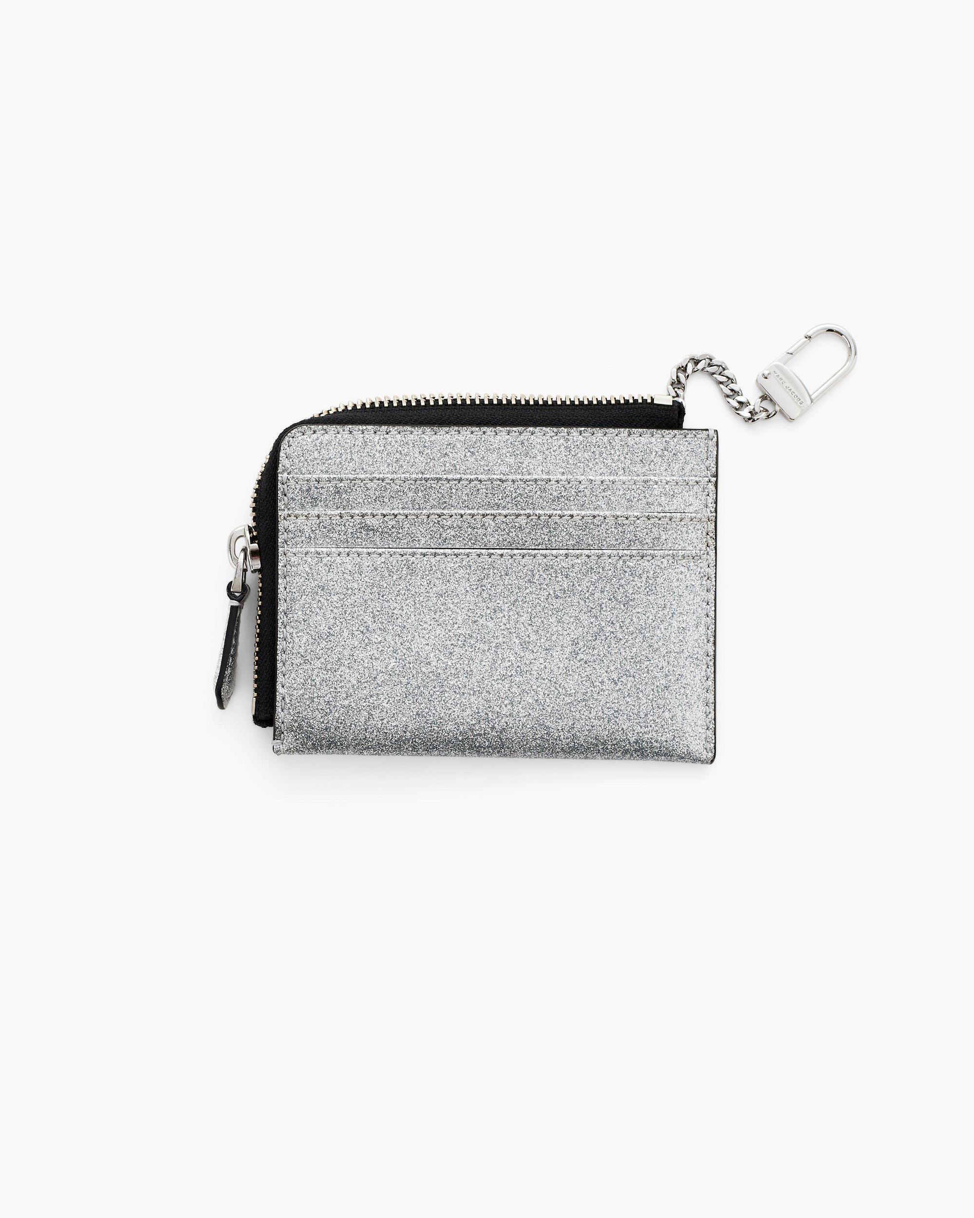 Coated in playful glitter, this compact wallet is designed for everyday ease. It features three card slots, a slip pocket and a secure zip closure to keep your essentials organized. A built-in dog clip lets you attach your keys or clip it to your bag - so everything stays right where you need it. Small, functional and made to shine. Shop Marc Jacobs The Coated Glitter Everyday Top Zip Wallet
