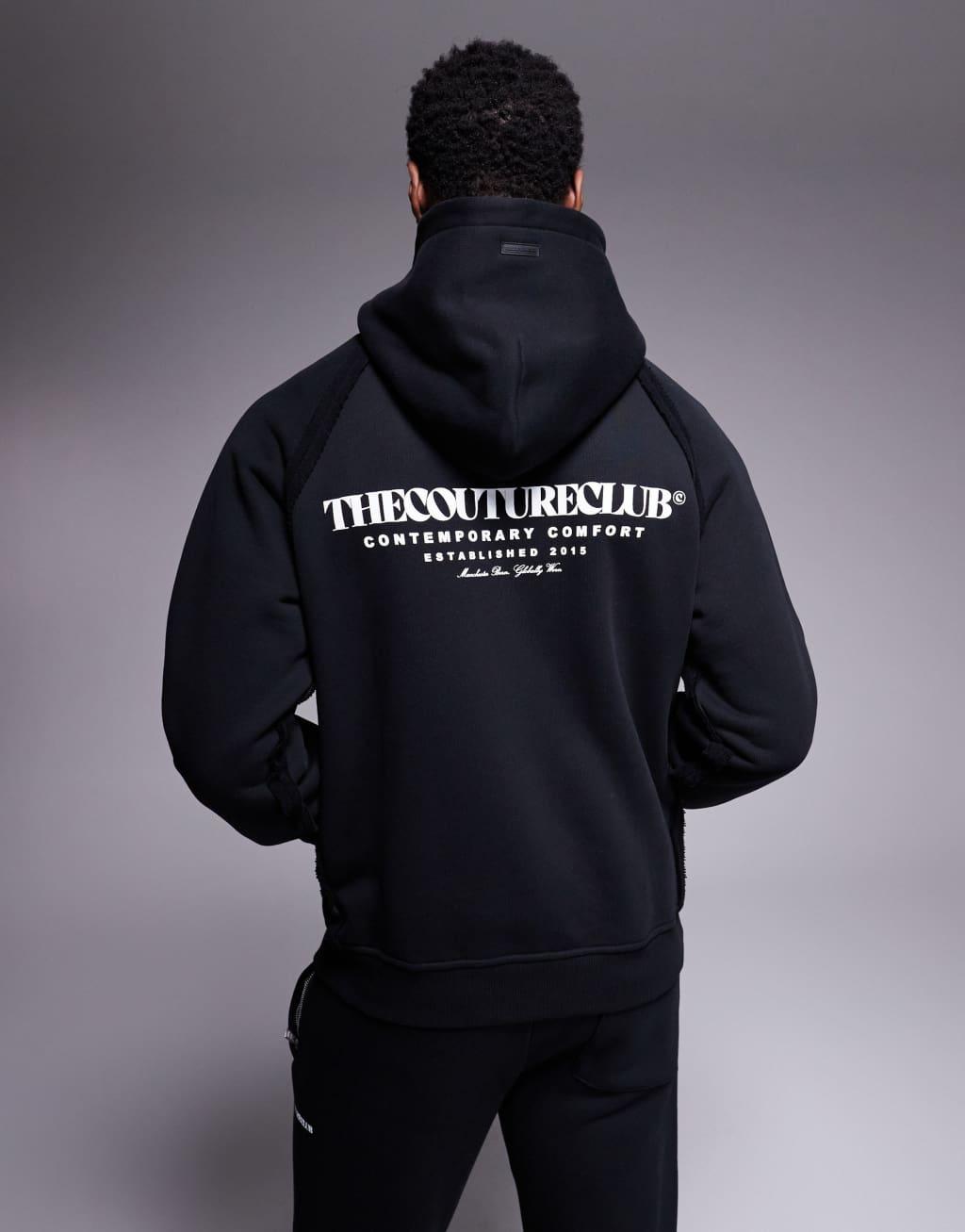 The Couture Club raw seam logo hoodie in black - part of a set