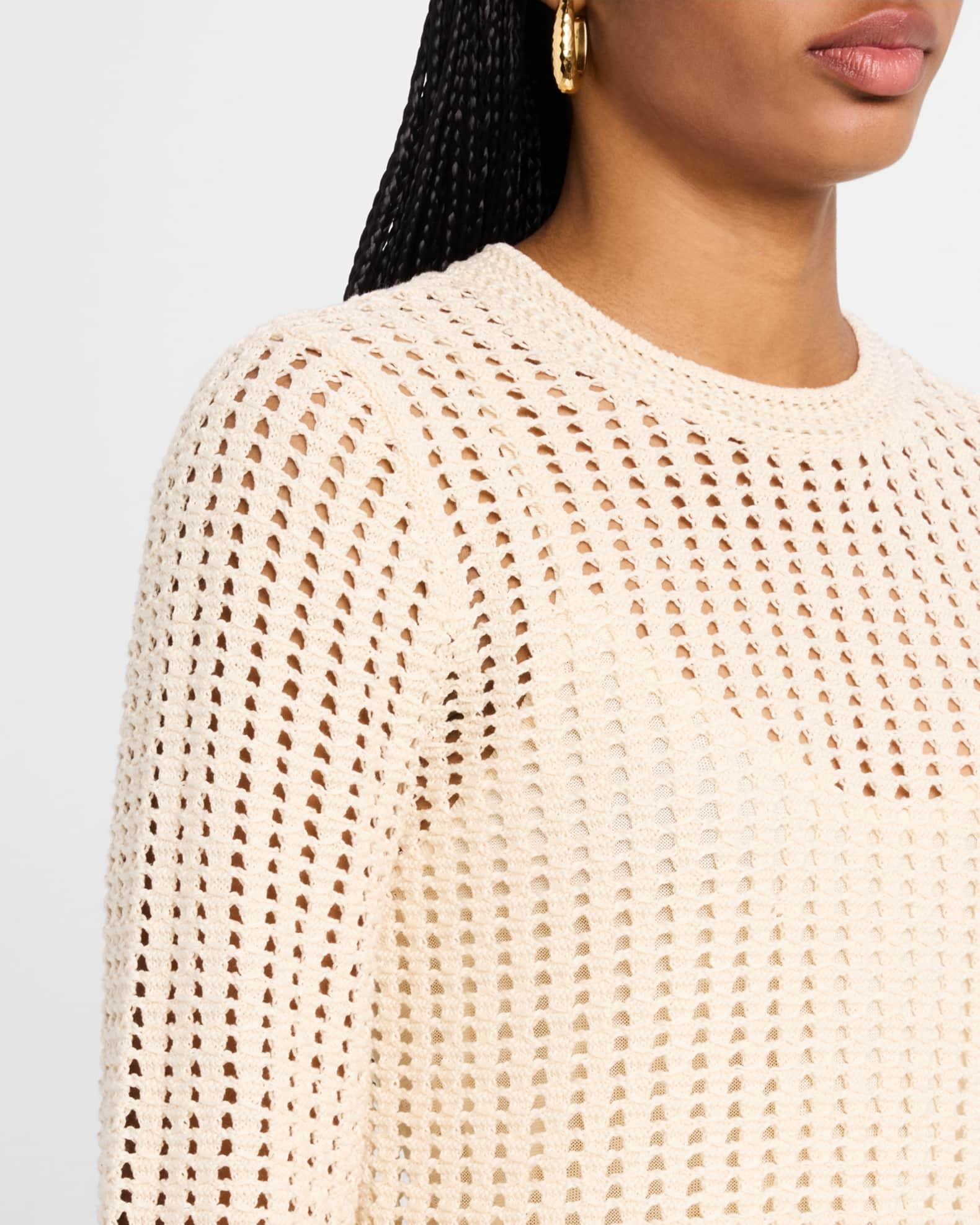 Exclusively ours. FRAME cotton crochet sweater dress Crew neckline Long bell sleeves Shift silhouette Hem falls above the knee Back keyhole closure Cotton Dry clean Imported