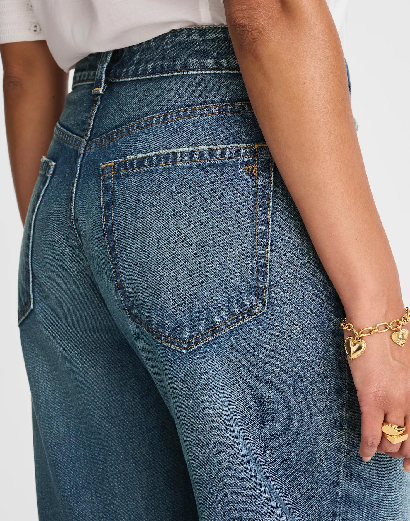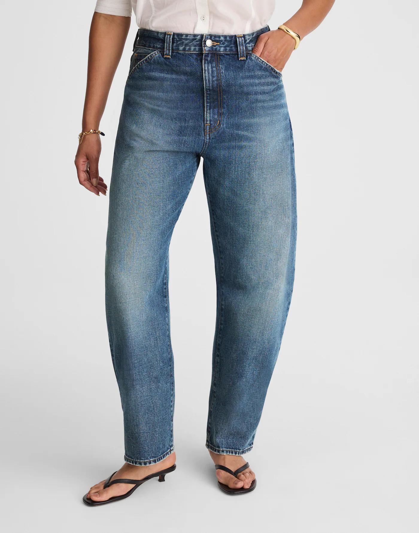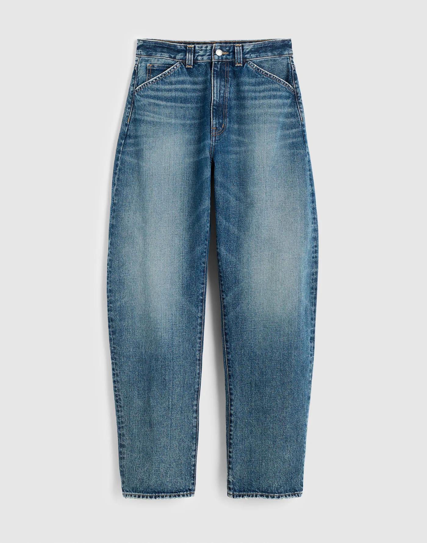 The cut: easy through the hip and thigh with a full-length inseam, these on-trend jeans feature a high rise, slant pockets and exaggerated barrel-leg shape. This pair is designed for an hourglass shape (see: narrower waist with a contoured band, a longer rise and a little extra room at the hips and thighs).