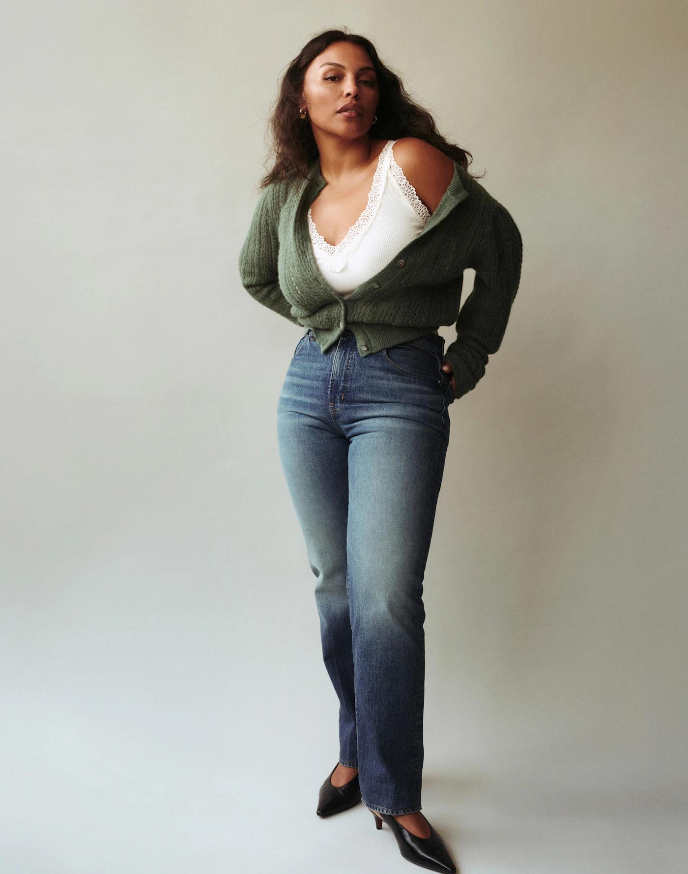 The cut: anchored at the waist and fitted through the hips and thighs, these jeans have an easy, straight leg and full-length inseam. Designed for an hourglass shape (see: narrower waist with a contoured band, a longer rise and a little extra room at the hips and thighs). Plus, our signature Magic Pockets™ add a supportive, holds-you-in feel in front.
