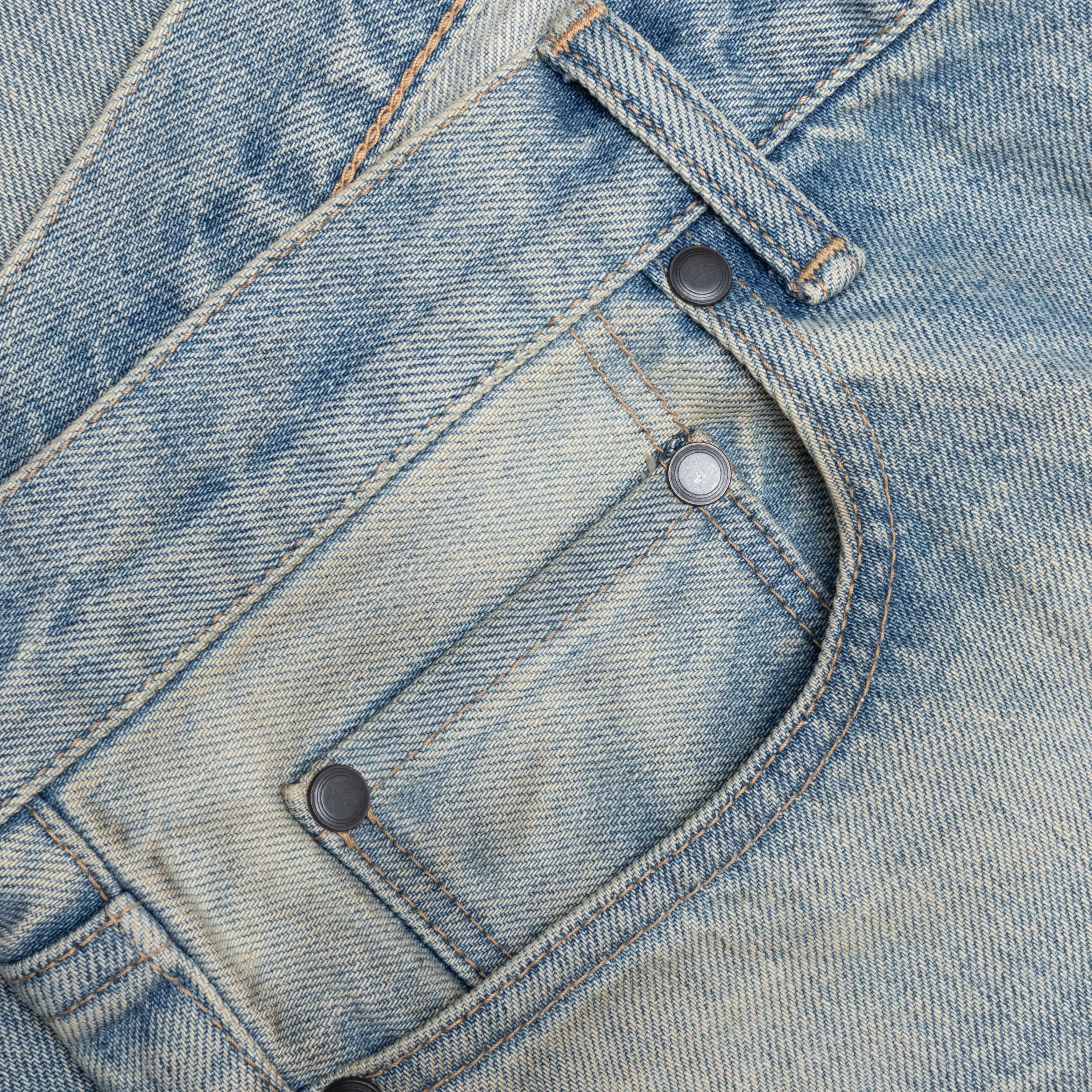 The John Elliott The Daze Pants make an impression on any denim collection. The silhouette features a cotton construction and is made for a straight leg fit with a medium rise. The five pocket design comes with a button fly and hidden rivets at the back pockets. Classic contrast stitching solidifies the rest of the design. 100% cotton Straight leg fit Medium rise Button fly Hidden rivets Five pocket design Contrast stitching Style No: G371E87100L