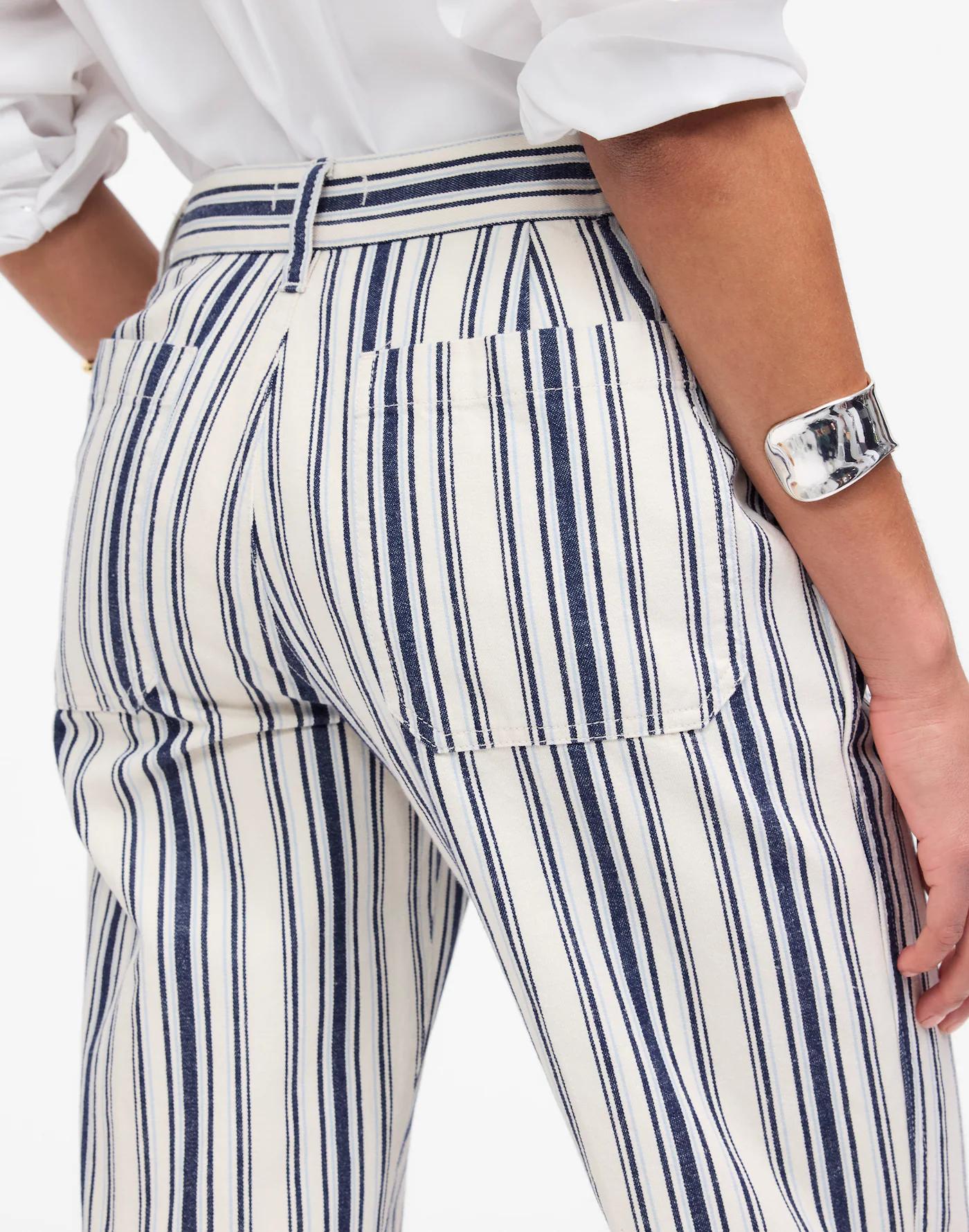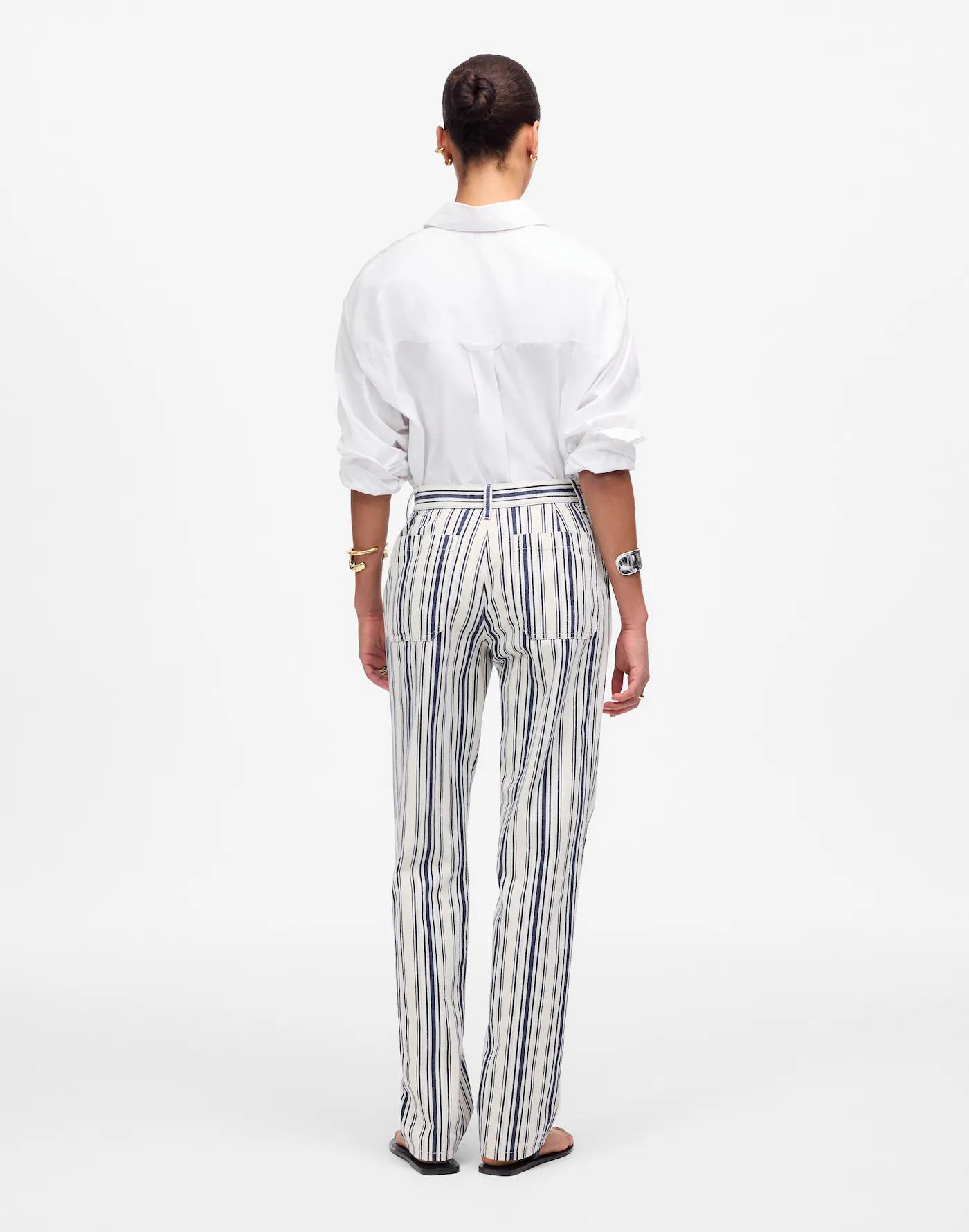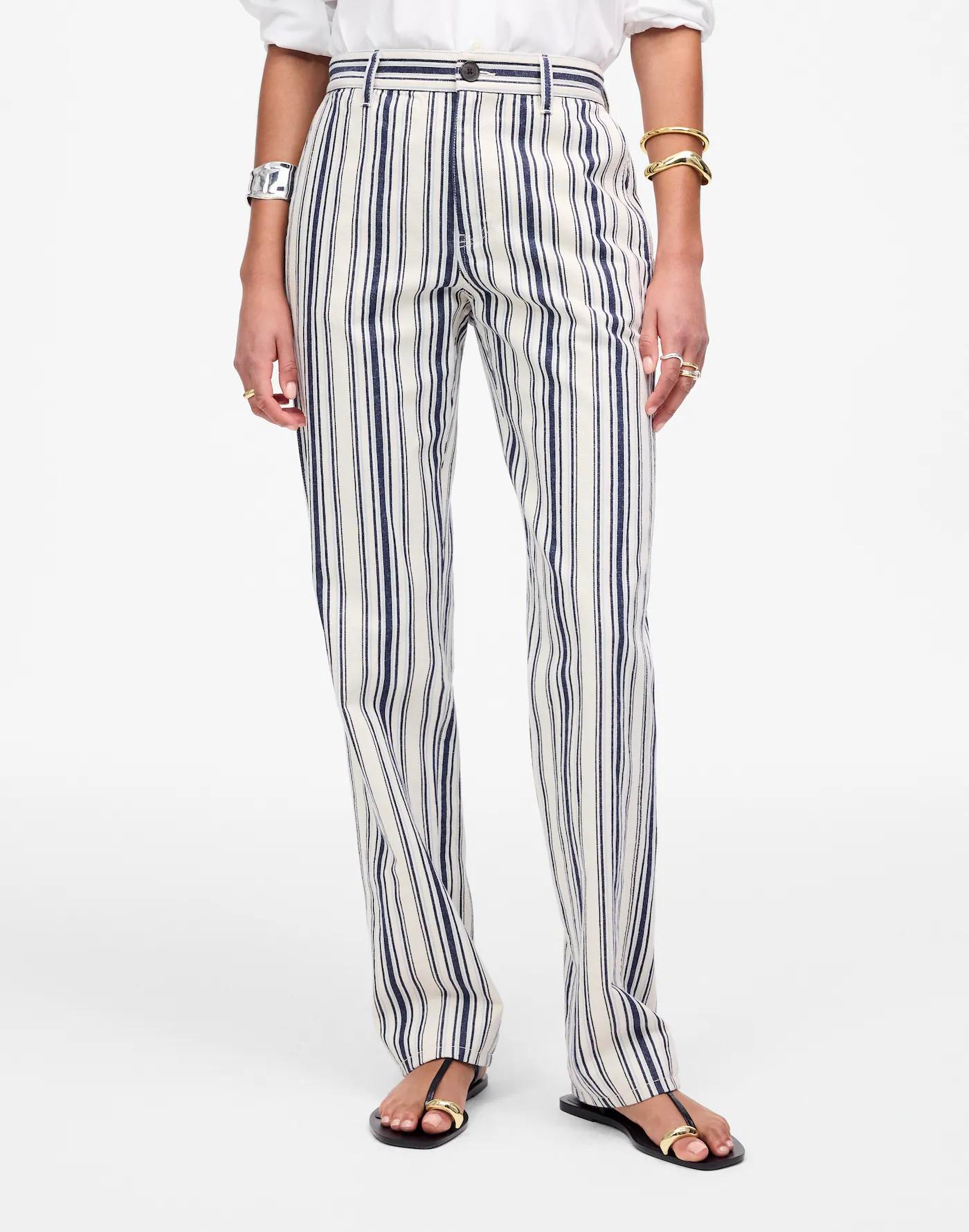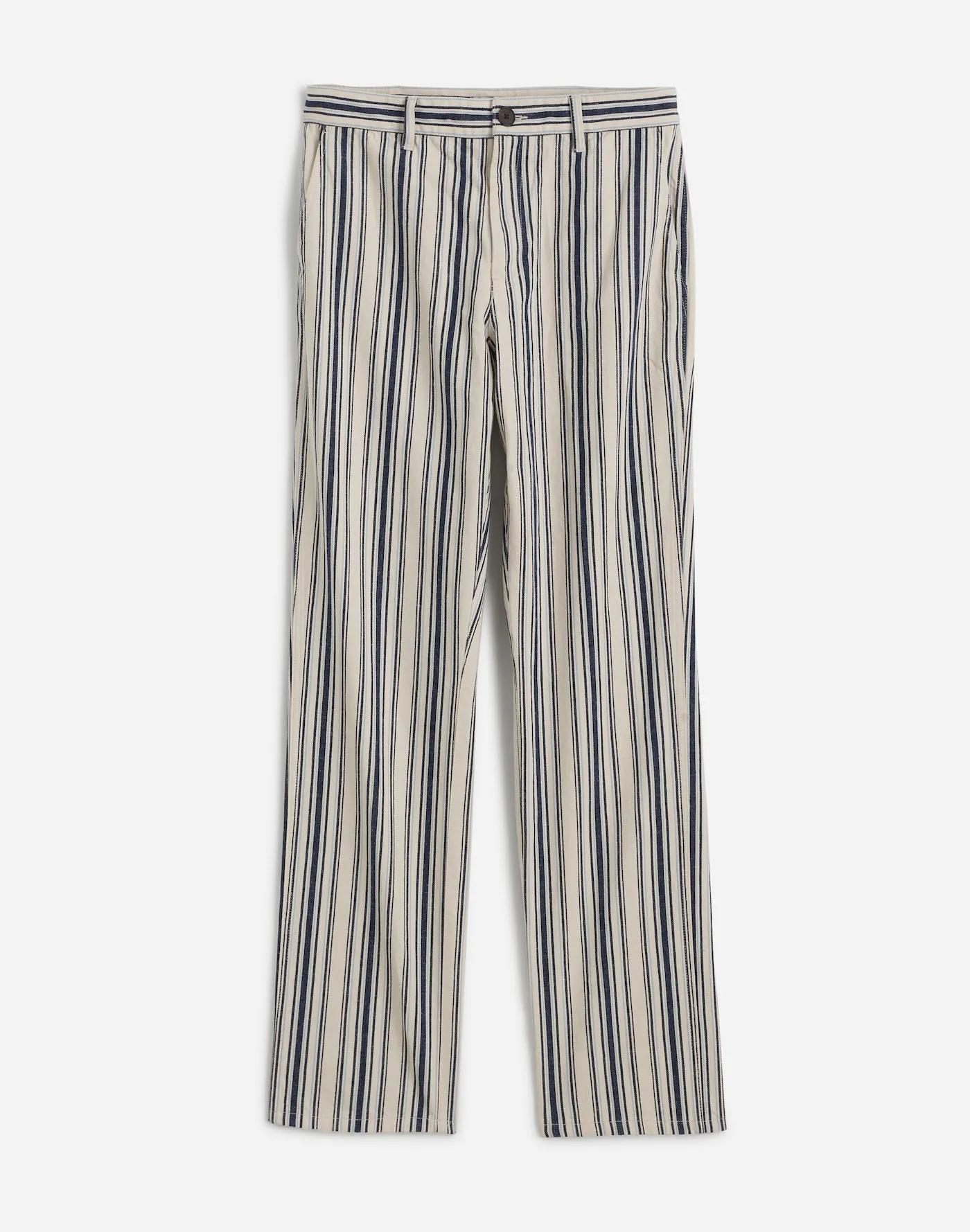 The denim fit you love, updated in an easy summer pant. Designed to sit low on the hips with slant pockets, a relaxed straight leg and full-length inseam. Crafted from a cotton-linen blend with yarn-dyed stripes and garment dyed for added softness.