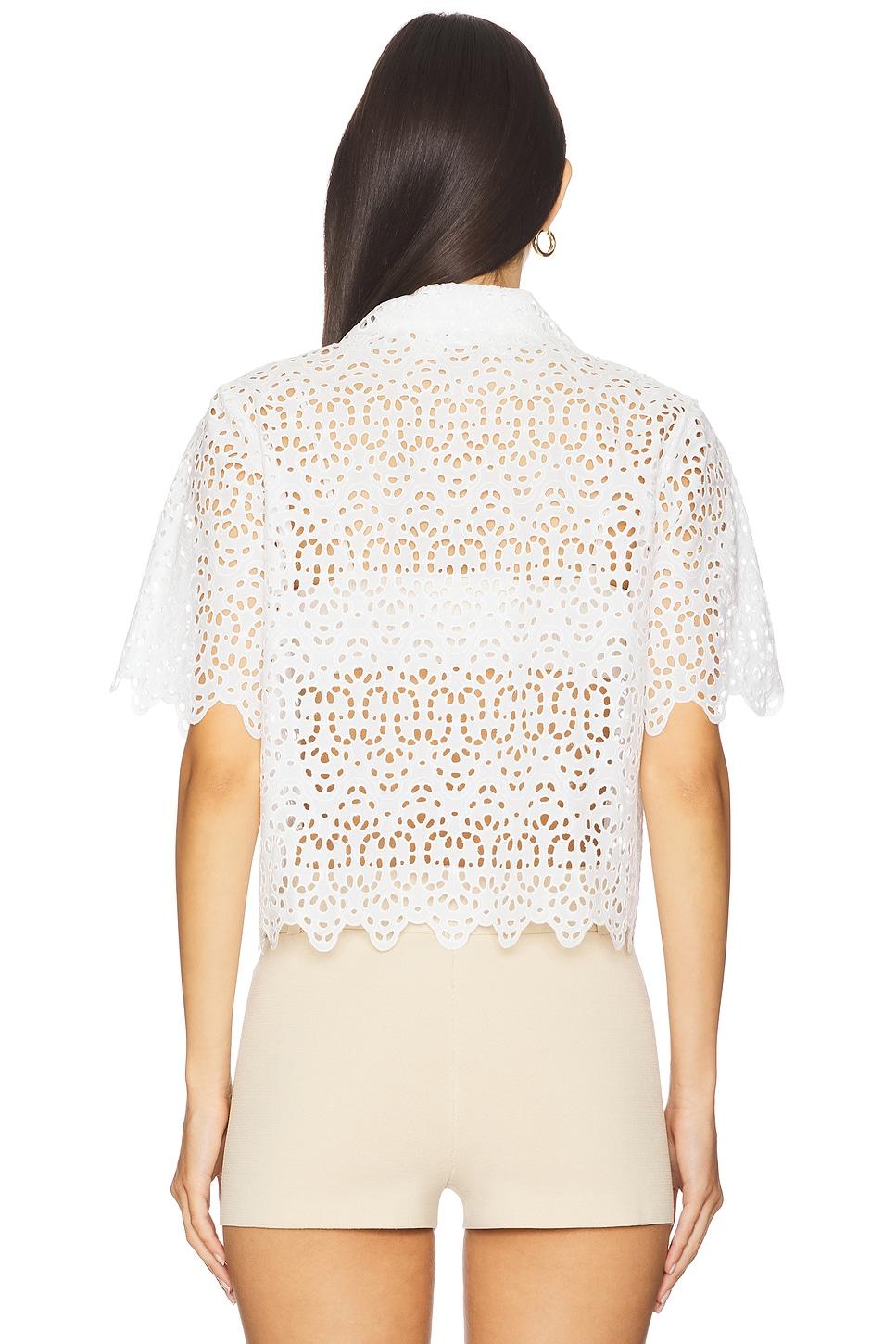 100% cotton. Dry clean only. Front button closure. Eyelet fabric with scallop hem detail. Garment is intentionally sheer, undergarments will show through.Please note undergarment not included. Made in China. Revolve Style No. FAME-WS262. Manufacturer Style No. WE25WSH007.