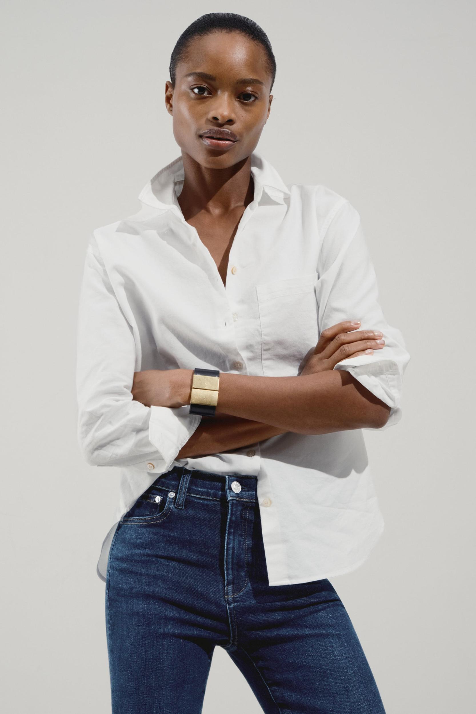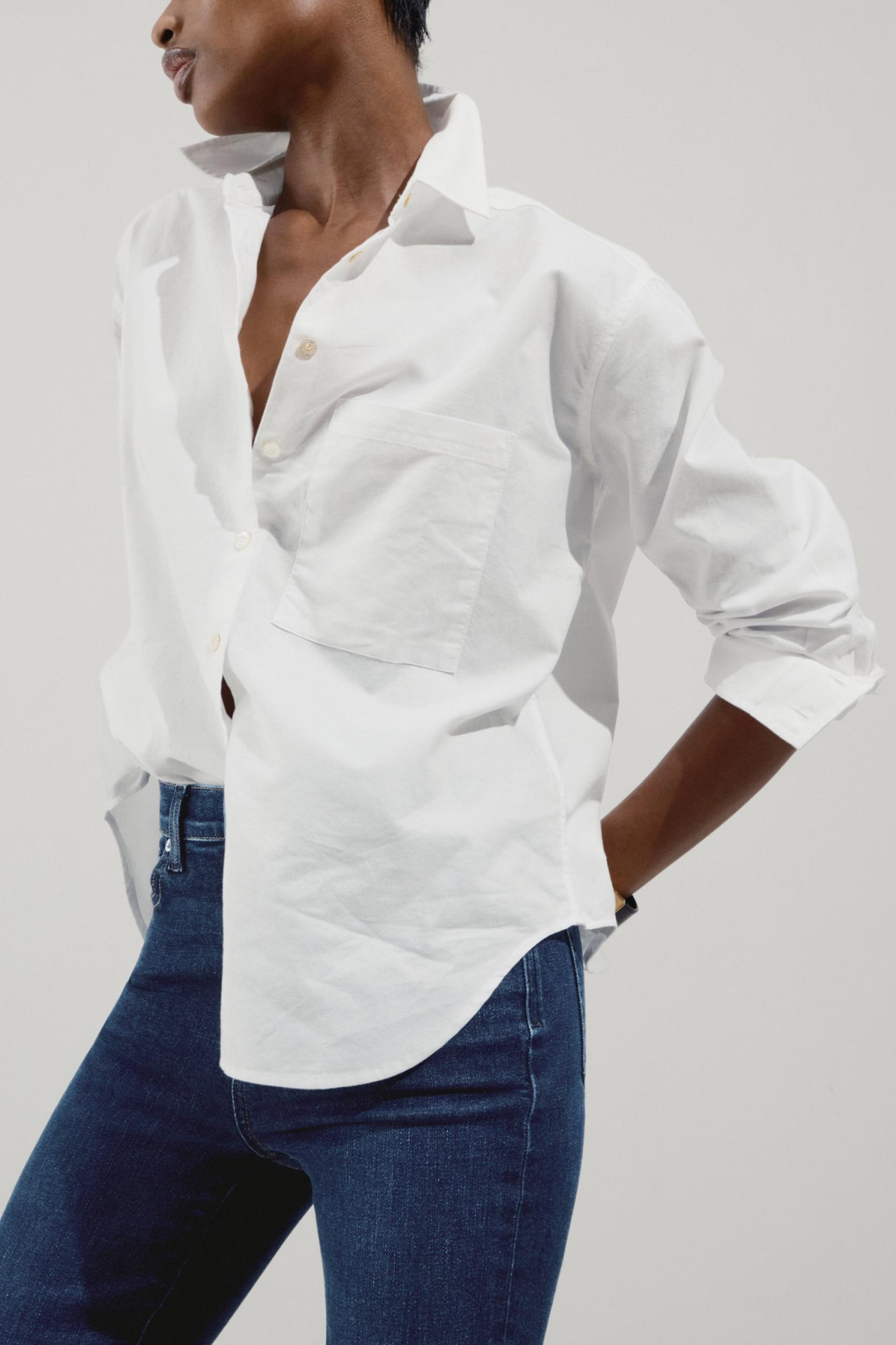 The quintessential button down shirt. The one you've been searching for forever. Falls straight on either side of the waist for an elegant, universally flattering cut. Holds its shape, washes well. Beloved by the chicest people you know.