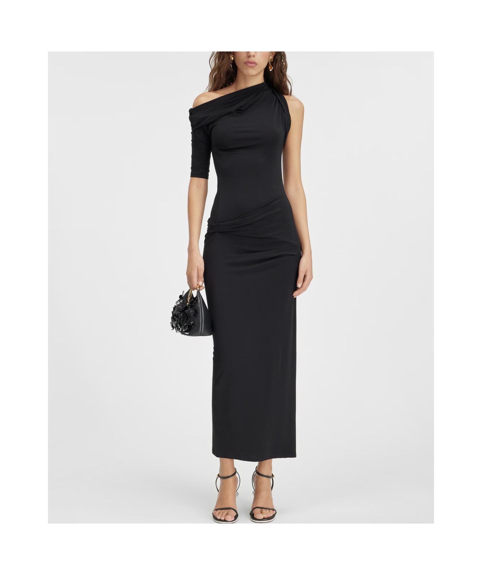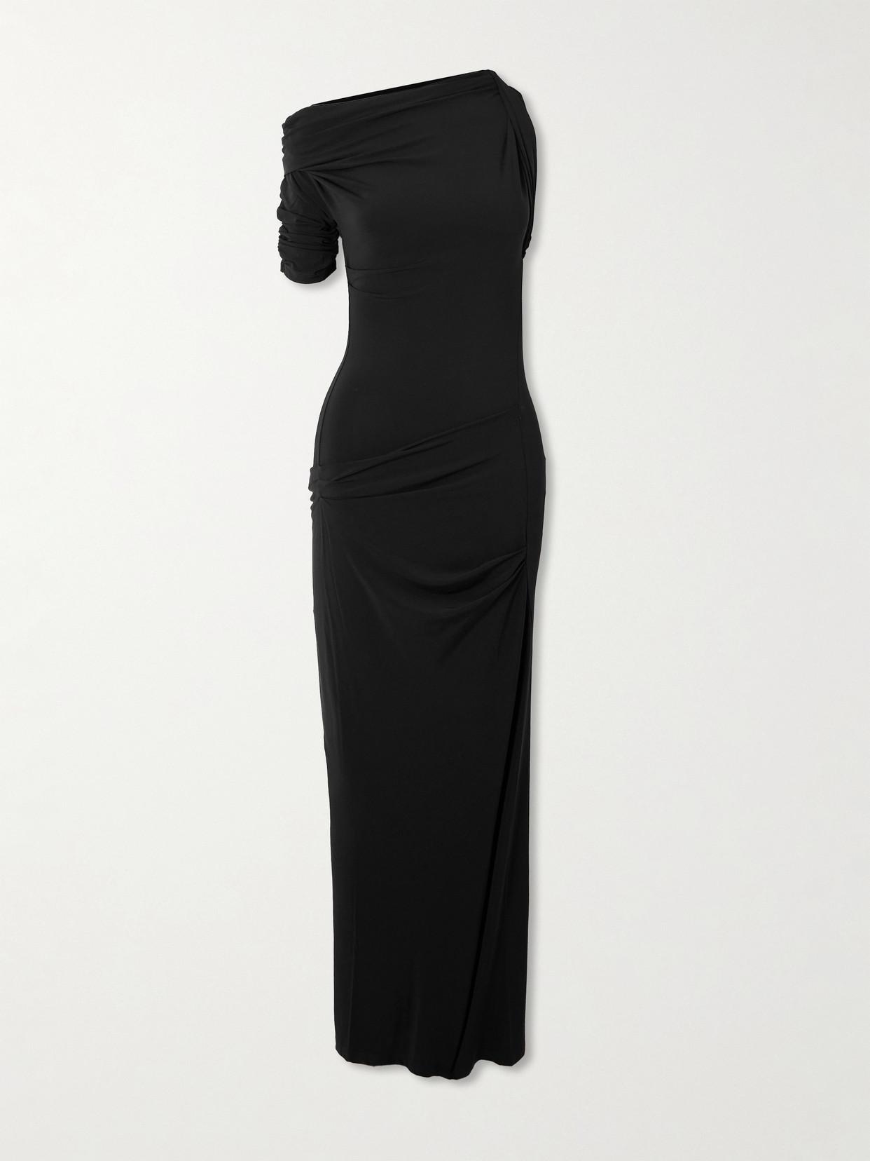 Shop Jacquemus Asymmetric Neck Twist Midi Dress With Ruched Detailing In Green from 800+ stores, starting at $443. Jacquemus' 'The Drapeado' dress is aptly named for its artful, asymmetric neckline that adds a sculptural element to the pared-back design. Made from figure-hugging jersey, it has a single sleeve and padded shoulder for dimension. Wear yours with dangling earrings and heels.- For Women.
