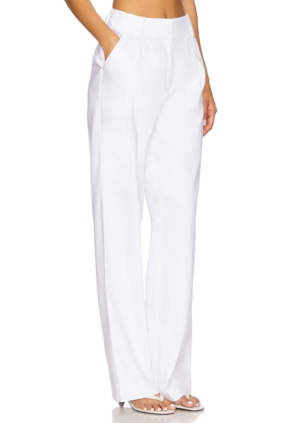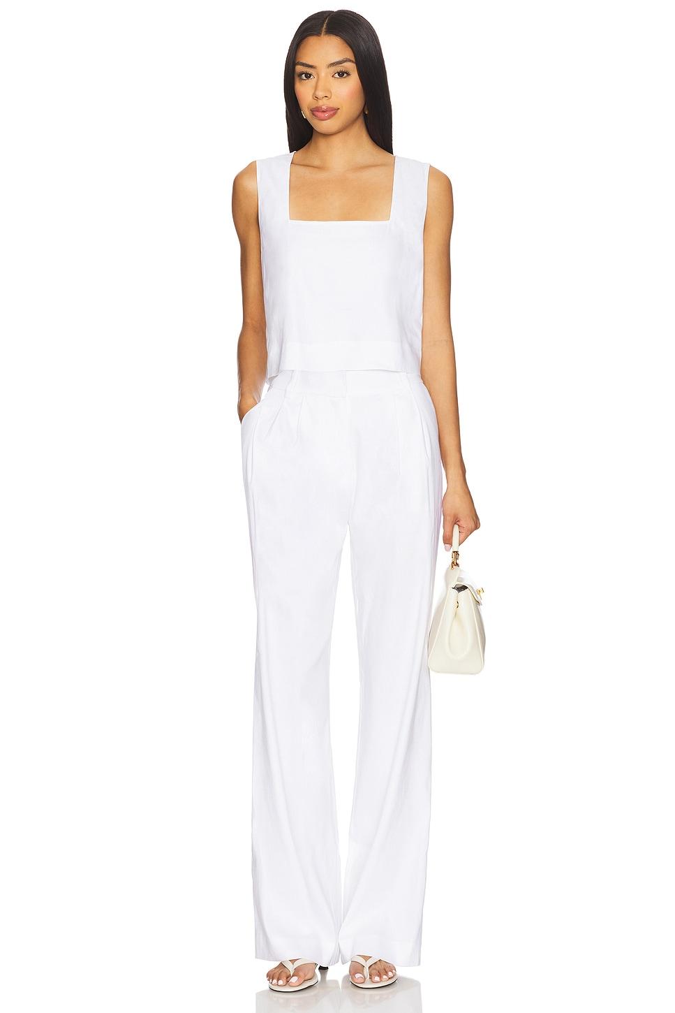 Self: 55% linen, 42% viscose, 3% elastaneLining: 100% cotton. Machine wash. Zip fly with double hook and bar closure. Side seam pockets. Back faux welt pockets. Midweight linen fabric. Item not sold as a set. 20" at the knee and 20" at the leg opening. Made in China. Revolve Style No. FAVR-WP62. Manufacturer Style No. FFSLFE8581.
