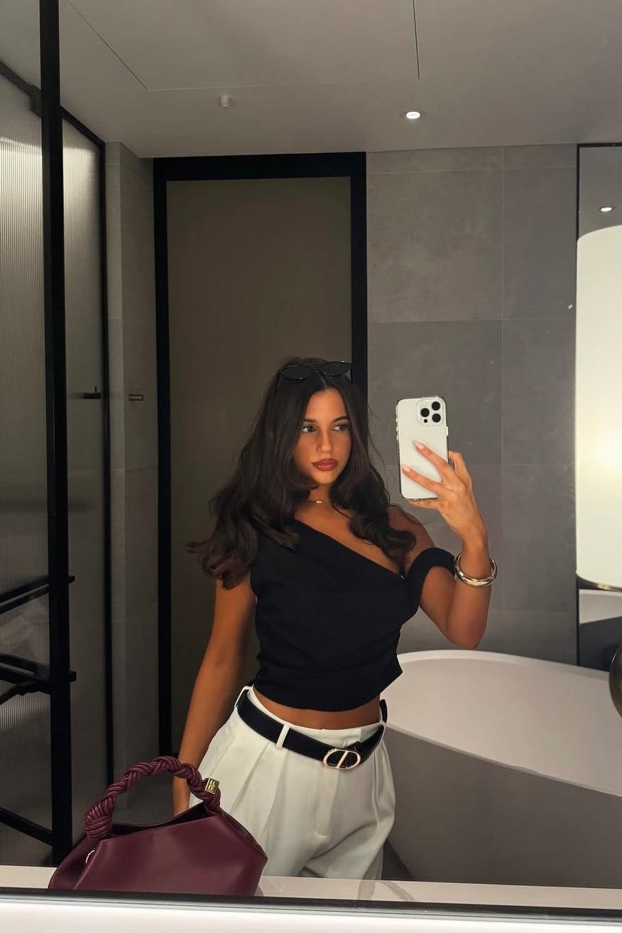 The Edit Tailored Off Shoulder Crop Top Black