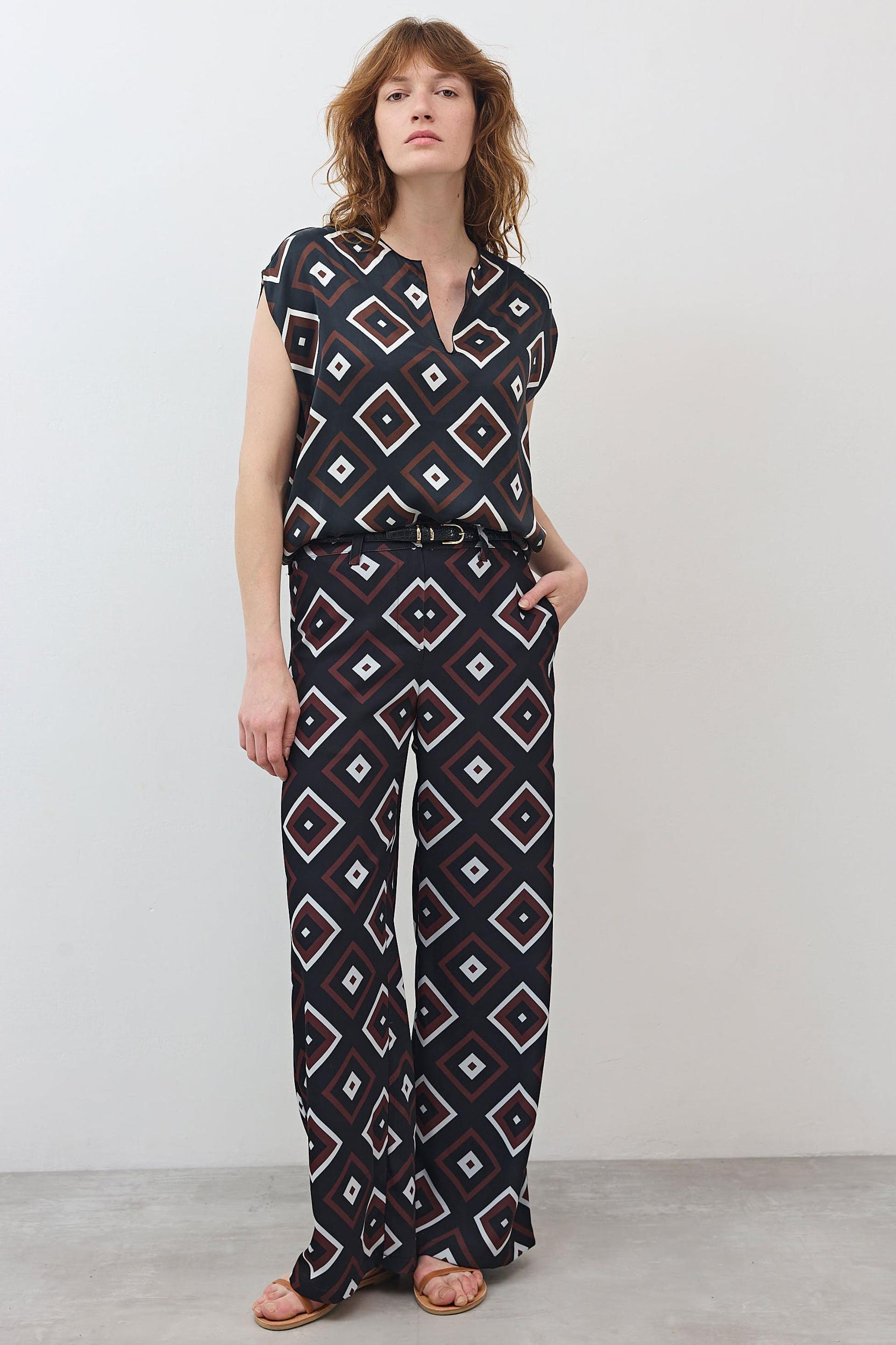 These trousers offer a sophisticated silhouette that is perfect for any dressy event or professional setting. Elevate your attire with its timeless style and exceptional comfort, making a polished statement with every step.