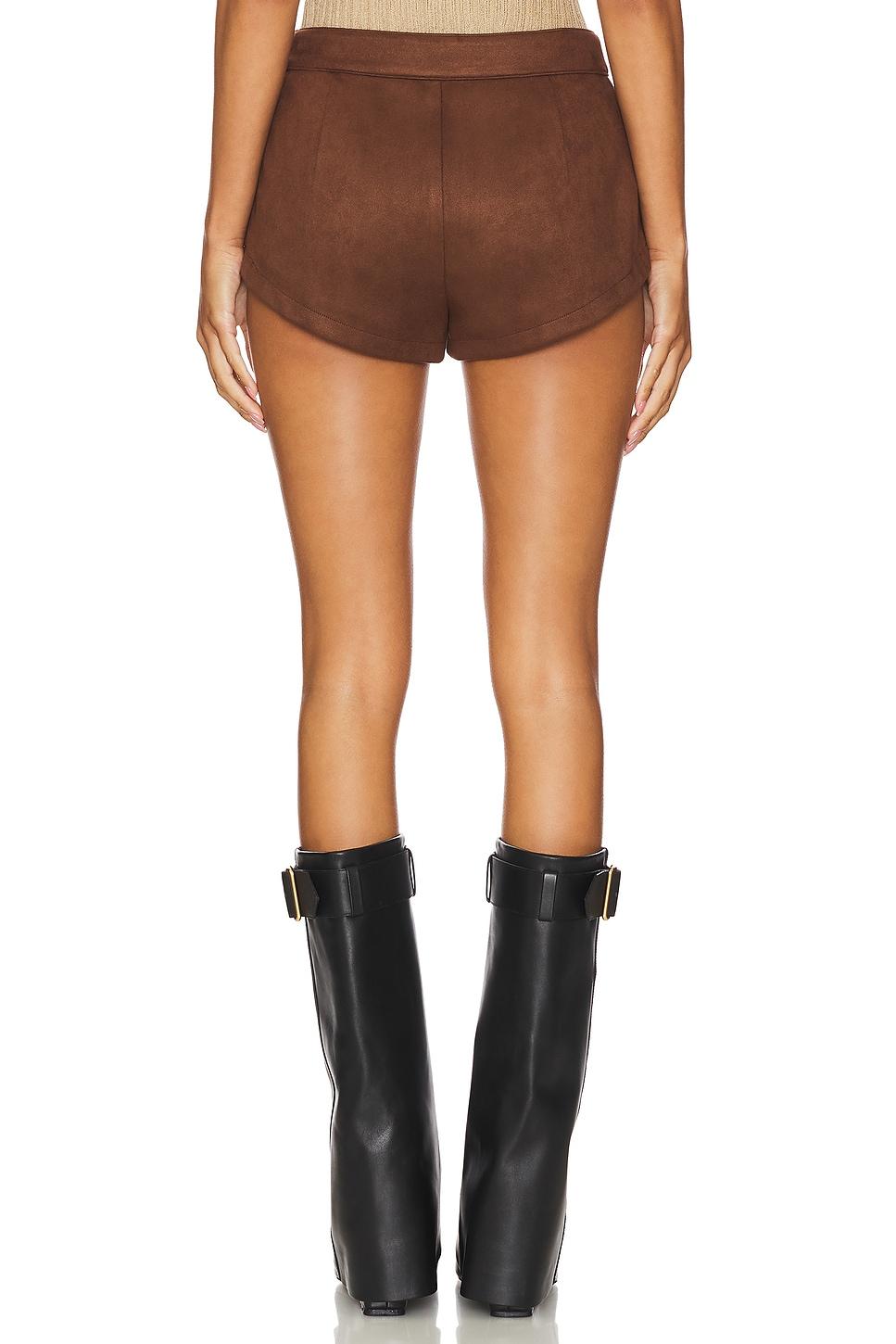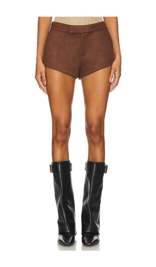 Premium Brown Washed Faux Leather Pleat Detail Shorts